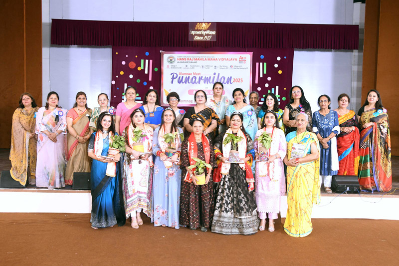 जालंधर (अरोड़ा) :- हंस राज महिला महाविद्यालय, जालंधर में प्राचार्या प्रो. डॉ. अजय सरीन के दिशा-निर्देशन अधीन पुनर्मिलन एलुमनाई मीट-2025 का आयोजन किया गया। इस अवसर पर मुख्यातिथि के रूप में डॉ. सीमा मरवाहा, डीन अकादमिक व विभागाध्यक्ष जूलॉजी विभाग उपस्थित रहे। इस अवसर पर एलुमनाई वेलफेयर एसोसिएशन प्रेसीडेंट किरणप्रीत कौर धामी व वाईस प्रैजीडैंट सरोजनी गौतम शारदा, रमनप्रीत ने भी उपस्थित रह समागम को शोभायमान किया। विशिष्ट अतिथि के रूप में मैडम सूजन मीनाक्षी स्याल, भारती गौड़ ने उपस्थित रह सभा को गौरवान्वित किया। कार्यक्रम का शुभारंभ संस्था परंपरानुसार ज्ञानात्मक ज्योति प्रज्जवलन कर डीएवी गान से किया गया। सर्वप्रथम एलुमनाई एसोसिएशन एडवाइजर बीनू गुप्ता ने सर्वगणमान्य अतिथियों का हार्दिक अभिनंदन किया व एचएमवी की गरिमा व गौरव का इतिहास बताते हुए कालेज प्रांगण में उनका स्वागत किया एवं कहा कि आज एचएमवी जिन बुलंदियों पर है, उसमें आप सबका योगदान विस्मरणीय है। इस उपरांत ग्रीन प्लांटर भेंट कर सब के प्रति विशिष्ट आभार व सुस्वागत किया।