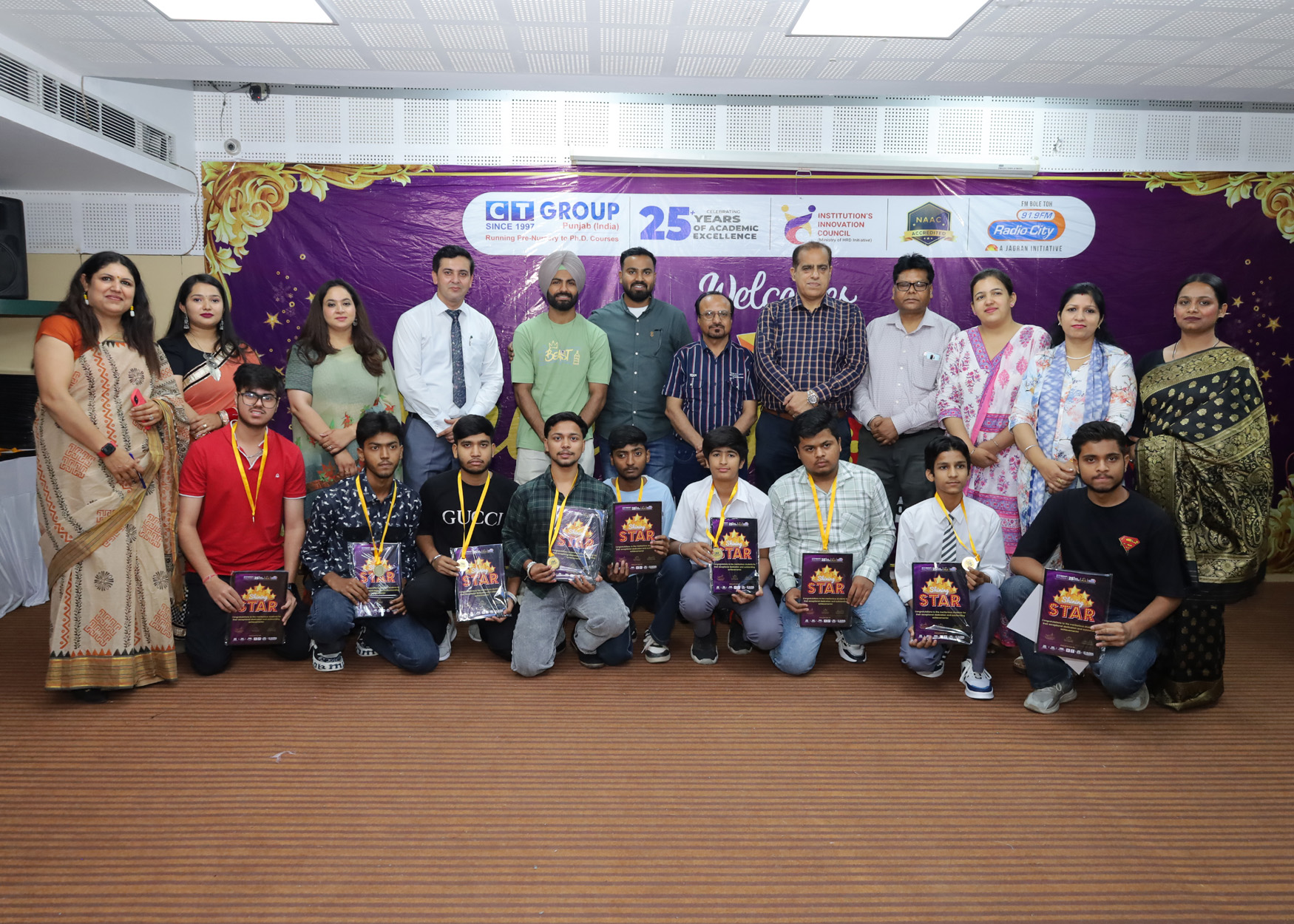 जालंधर (अरोड़ा) :- मकसूदान स्थित सी.टी. ग्रुप ऑफ इंस्टीट्यूशंस, नॉर्थ कैंपस द्वारा दो दिवसीय वार्षिक सम्मान समारोह ‘शाइनिंग स्टार्स’ का सफल आयोजन किया गया। इस समारोह में पंजाब के 70+ स्कूलों के 800+ मेधावी छात्रों की शानदार शैक्षणिक उपलब्धियों को सम्मानित किया गया। जालंधर, टांडा, होशियारपुर, मोगा, मुकेरियां, दसूहा, कपूरथला, अमृतसर और मानसा जैसे क्षेत्रों से छात्र इस समारोह में शामिल हुए। यह समारोह उत्कृष्टता, समर्पण और व्यक्तिगत सफलता का उत्सव था। कक्षा 12 के शानदार परिणामों के लिए छात्रों को शिक्षकों, स्कूल प्रमुखों, अभिभावकों और गणमान्य अतिथियों की उपस्थिति में सम्मानित किया गया।