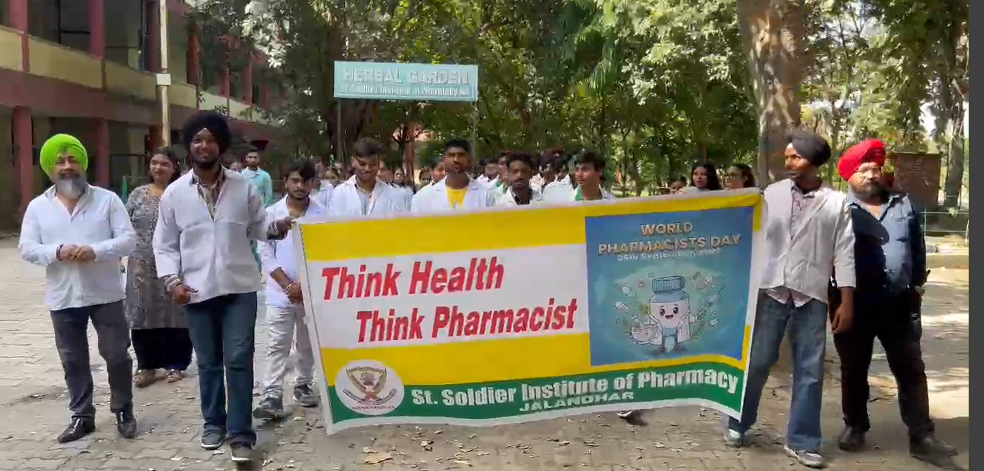 जालंधर (अजय छाबड़ा) :- सेंट सोल्जर इंस्टीट्यूट ऑफ फार्मेसी के छात्रों ने डॉ. अमरपाल सिंह के मार्गदर्शन में स्वास्थ्य सेवा में फार्मासिस्टों के महत्व पर प्रकाश डालते हुए एक जीवंत रैली और रंग-बिरंगी रंगोली, एवं अन्य प्रतियोगितायों का आयोजन करवा विश्व फार्मासिस्ट दिवस मनाया। इस कार्यक्रम में जन स्वास्थ्य और कल्याण सुनिश्चित करने में फार्मासिस्टों की महत्वपूर्ण भूमिका पर ज़ोर देते हुए भाषण भी दिए गए।
