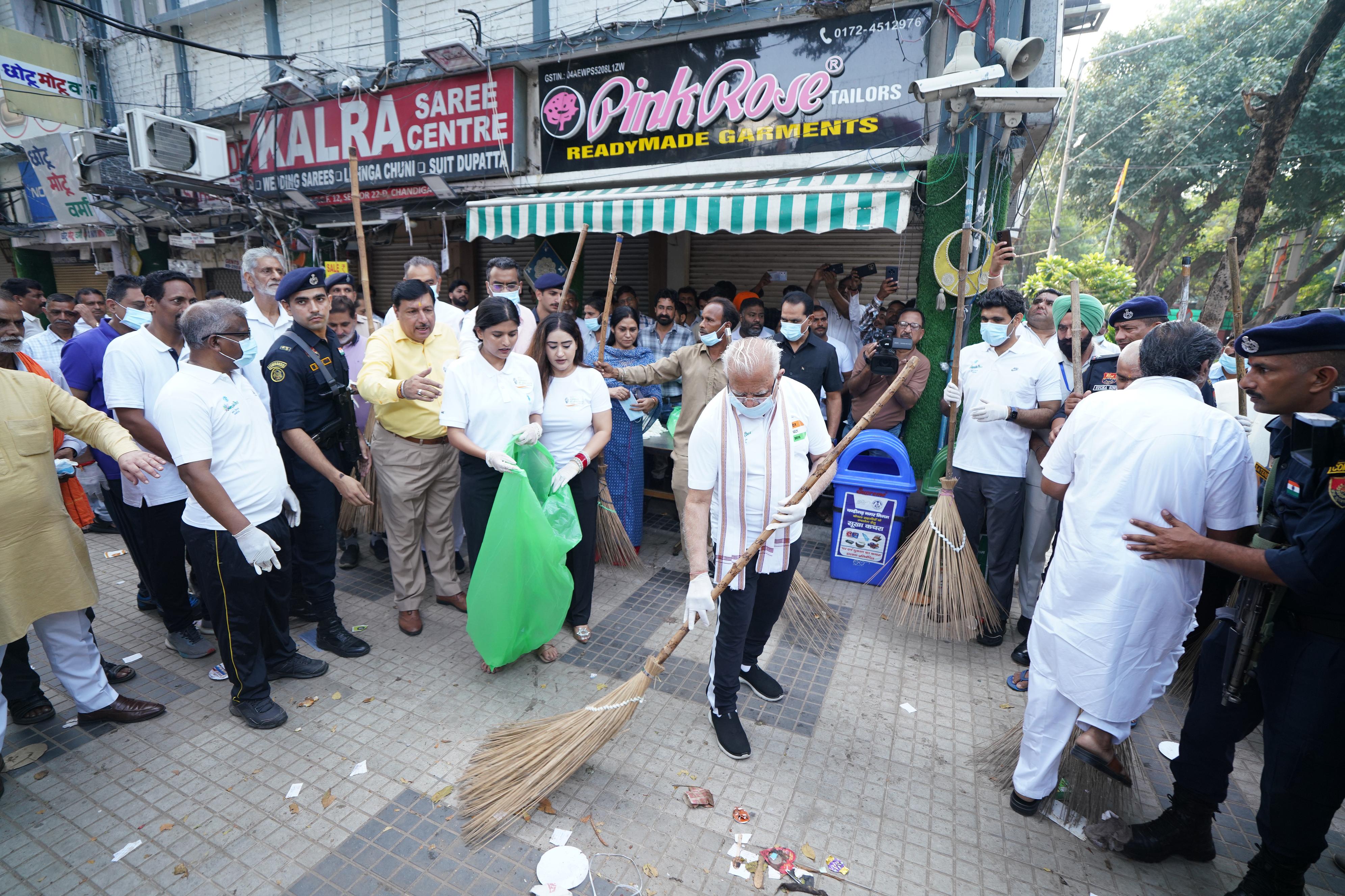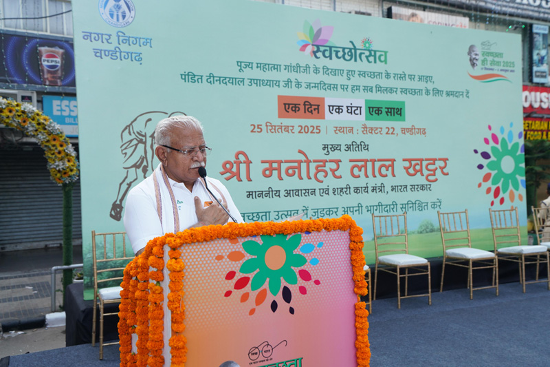 चंडीगढ़ (ब्यूरो) :- केंद्रीय आवास एवं शहरी कार्य मंत्री मनोहर लाल खट्टर ने आज चंडीगढ़ के सेक्टर 22 मार्केट में स्वच्छता ही सेवा – एक दिन, एक घंटा, एक साथ श्रमदान अभियान मे भाग लिया I इस कार्यक्रम में अधिकारियों, नागरिकों, सफाई मित्रों सहित स्वयंसेवकों ने उत्साहपूर्वक भाग लिया, जिससे स्वच्छ भारत के स्वप्न के प्रति सामूहिक प्रतिबद्धता दर्शाई गई। उस अवसर पर एक विशाल श्रमदान गतिविधि का आयोजन किया गया, जिसमें प्रतिभागियों ने अपने आस-पास के वातावरण की सफाई की। कार्यक्रम की शुरुआत एक सफाई कर्मचारी की बेटी को फलों की टोकरी भेंट करने के साथ हुई, जिसके बाद मुख्य अतिथि को सिग्नेचर वॉल तक ले जाया गया। पर्यावरण-अनुकूल प्रथाओं को बढ़ावा देने और एकल-उपयोग वाले प्लास्टिक के उपयोग को हतोत्साहित करने के लिए कपड़े के थैलों का वितरण अभियान भी चलाया गया।
