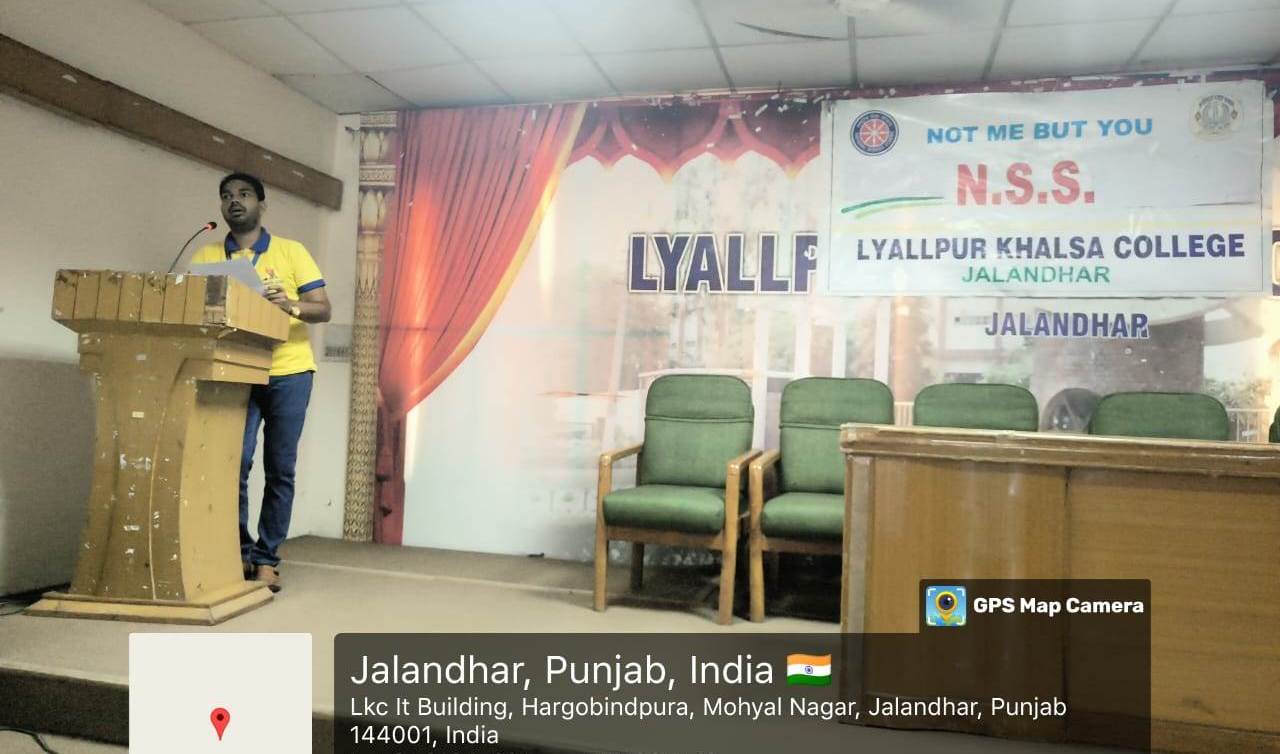 ਜਲੰਧਰ (ਅਰੋੜਾ) :- ਲਾਇਲਪੁਰ ਖਾਲਸਾ ਕਾਲਜ ਦੀ ਐਨ.ਐਸ.ਐਸ. ਇਕਾਈ ਨੇ ਹਮਸਫ਼ਰ ਯੂਥ ਕਲੱਬ ਐਨ.ਜੀ.ਓ ਅਤੇ ਮਾਈ ਭਾਰਤ ਕੇਂਦਰ ਜਲੰਧਰ ਦੇ ਸਹਿਯੋਗ ਨਾਲ ਇੱਕ ਜਾਗਰੂਕਤਾ ਸੈਮੀਨਾਰ ਦਾ ਆਯੋਜਨ ਕਰਕੇ ਕਾਲਜ ਕੈਂਪਸ ਵਿੱਚ ਐਨ.ਐਸ.ਐਸ. ਸਥਾਪਨਾ ਦਿਵਸ ਮਨਾਇਆ। ਪ੍ਰਿੰਸੀਪਲ ਡਾ. ਸੁਮਨ ਚੋਪੜਾ ਨੇ ਐਨਐਸਐਸ ਸਥਾਪਨਾ ਦਿਵਸ ‘ਤੇ ਇਕੱਠ ਨੂੰ ਵਧਾਈ ਦਿੱਤੀ ਅਤੇ ਵਲੰਟੀਅਰਾਂ ਨੂੰ ਸਮਾਜ ਭਲਾਈ ਗਤੀਵਿਧੀਆਂ ਵਿੱਚ ਹਿੱਸਾ ਲੈਣ ਅਤੇ ਰਾਸ਼ਟਰ ਨਿਰਮਾਣ ਵਿੱਚ ਯੋਗਦਾਨ ਪਾਉਣ ਲਈ ਉਤਸ਼ਾਹਿਤ ਕੀਤਾ। ਉਨ੍ਹਾਂ ਨੇ ਜਾਗਰੂਕਤਾ ਪ੍ਰੋਗਰਾਮਾਂ ਅਤੇ ਰੈਲੀਆਂ ਦਾ ਆਯੋਜਨ ਕਰਕੇ ਕਾਲਜ ਦੀ ਐਨ.ਐਸ.ਐਸ. ਇਕਾਈ ਦੇ ਨਿਰੰਤਰ ਯਤਨਾਂ ਦੀ ਸ਼ਲਾਘਾ ਕੀਤੀ। ਮੁੱਖ ਪ੍ਰੋਗਰਾਮ ਅਫ਼ਸਰ ਪ੍ਰੋ. ਸਤਪਾਲ ਸਿੰਘ ਨੇ ਨਵੇਂ ਵਲੰਟੀਅਰਾਂ ਨੂੰ ਐਨ.ਐਸ.ਐਸ. ਦੇ ਉਦੇਸ਼ਾਂ ਅਤੇ ਐਨ.ਐਸ.ਐਸ. ਵਲੰਟੀਅਰ ਦੀ ਭੂਮਿਕਾ ਬਾਰੇ ਜਾਣਕਾਰੀ ਦਿੱਤੀ। ਉਨ੍ਹਾਂ ਨੇ ਐਨ.ਐਸ.ਐਸ. ਦੁਆਰਾ ਵਿਅਕਤੀ ਦੀ ਸ਼ਖਸੀਅਤ ਨੂੰ ਬਿਹਤਰ ਬਣਾਉਣ ਲਈ ਪ੍ਰਦਾਨ ਕੀਤੇ ਜਾਣ ਵਾਲੇ ਵੱਖ-ਵੱਖ ਮੌਕਿਆਂ ਬਾਰੇ ਵੀ ਦੱਸਿਆ।