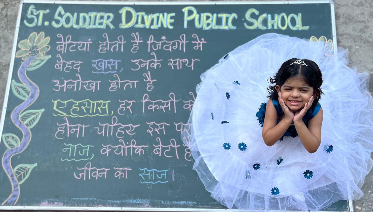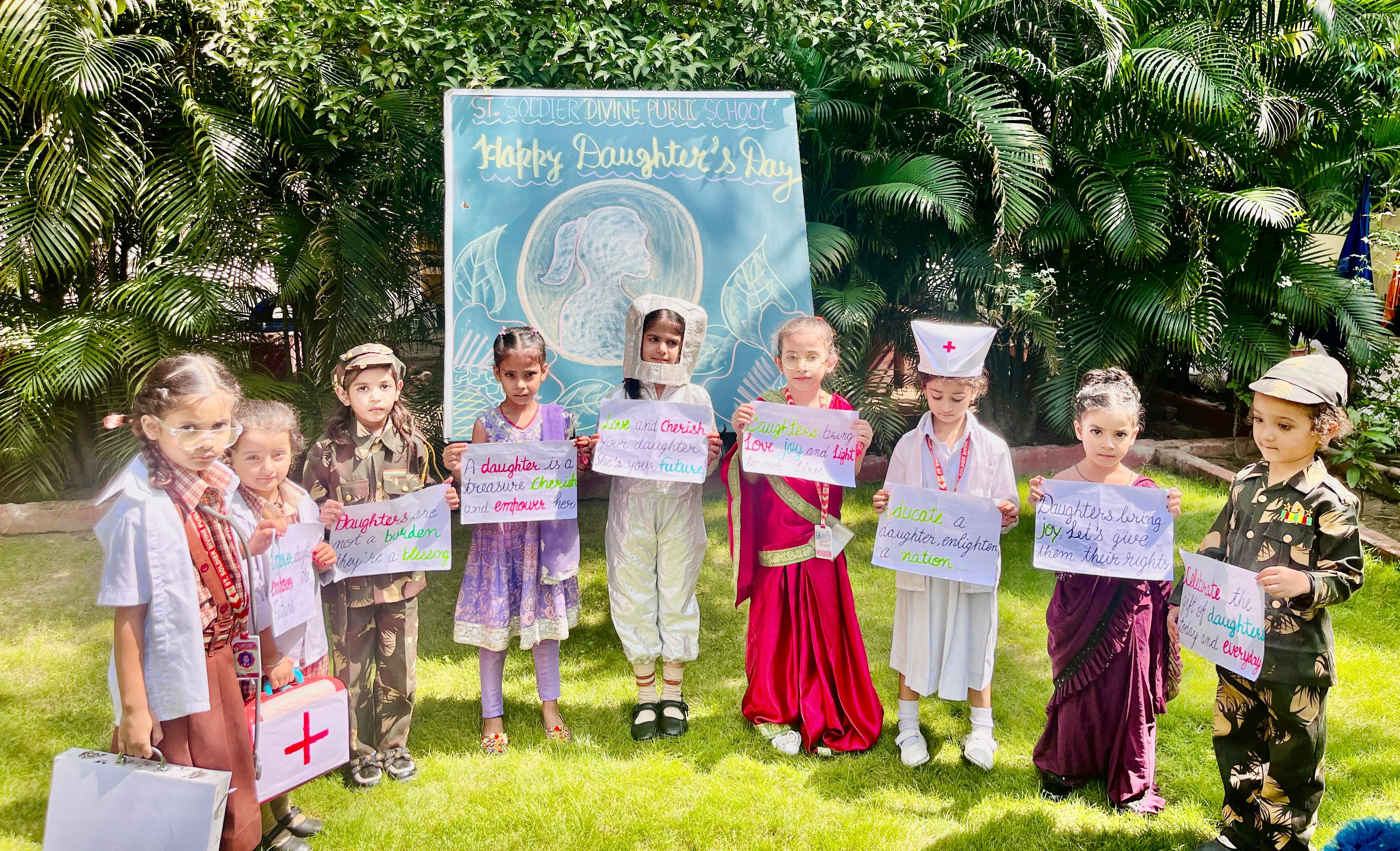 जालंधर (अजय छाबड़ा) :- सेंट सोल्जर डिवाइन पब्लिक स्कूल, अर्जुन नगर की किंडरगार्टन विंग की छात्राओं ने बेटी दिवस बड़े उत्साह के साथ मनाया। स्कूल की प्रिंसिपल और अन्य स्टाफ सदस्यों ने इस कार्यक्रम का नेतृत्व किया। छात्राएँ सुंदर परिधानों में स्कूल परिसर में आईं। सीनियर कक्षाओं की छात्राओं ने सभी को इस दिवस के महत्व के बारे में बताया।