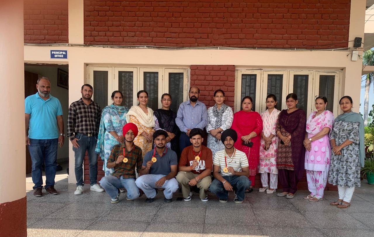 जालंधर (अरोड़ा) :- डी. आर. वी. डी. ए. वी. शताब्दी कॉलेजिएट सीनियर सेकेंडरी स्कूल फिल्लौर ने जालंधर में हो रहे जिला स्तरीय खेलों में नेशनल स्टाइल कबड्डी में प्रथम स्थान प्राप्त कर स्वर्ण पदक जीता। कबड्डी के खेल में ध्रुव, अर्शप्रीत, गुलशन और आयुष ने बहुत अच्छा प्रदर्शन किया। कक्षा बारहवीं (कॉमर्स) के छात्र ध्रुव का राज्य स्तर पर नेशनल स्टाइल कबड्डी के लिए चयन हुआ, जो स्कूल के लिए बहुत गर्व की बात है। इस अवसर पर प्रिंसिपल सुरिंदर कुमार मिढ़ा ने अपनी खुशी व्यक्त की और छात्रों को बधाई दी। उन्होंने कहा कि पढ़ाई के साथ-साथ खेल भी छात्रों के सर्वांगीण विकास के लिए बहुत महत्वपूर्ण हैं। इस अवसर पर प्रो. परवीन कुमारी (शारीरिक शिक्षा विभाग) और सभी स्टाफ सदस्यों ने पूरी टीम की प्रशंसा की और उन्हें और भी बेहतर प्रदर्शन करने के लिए प्रेरित किया।