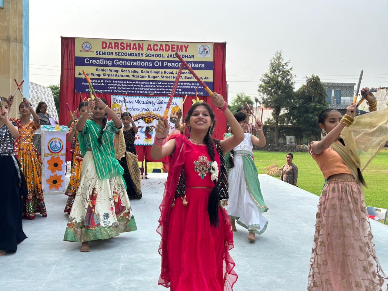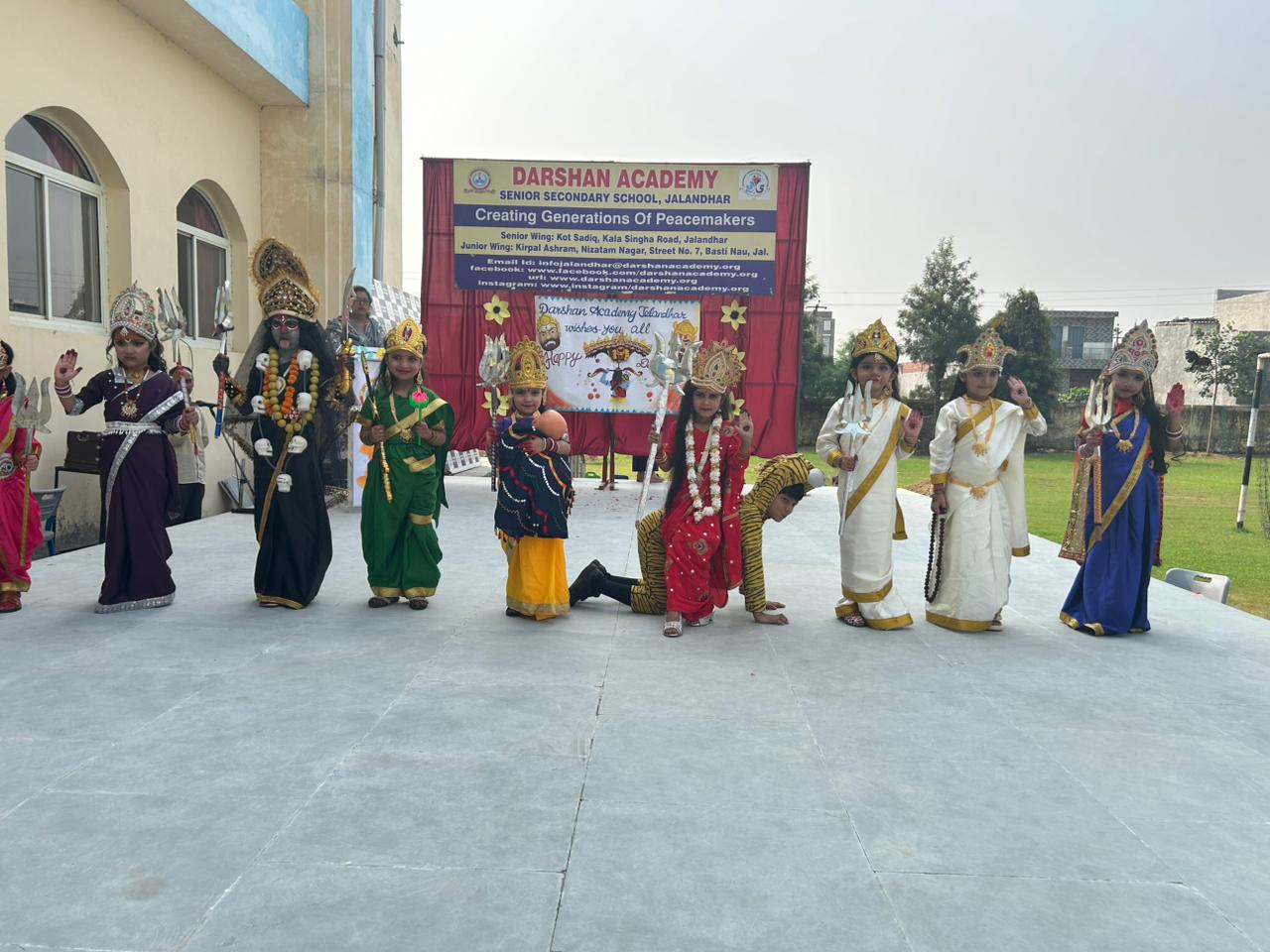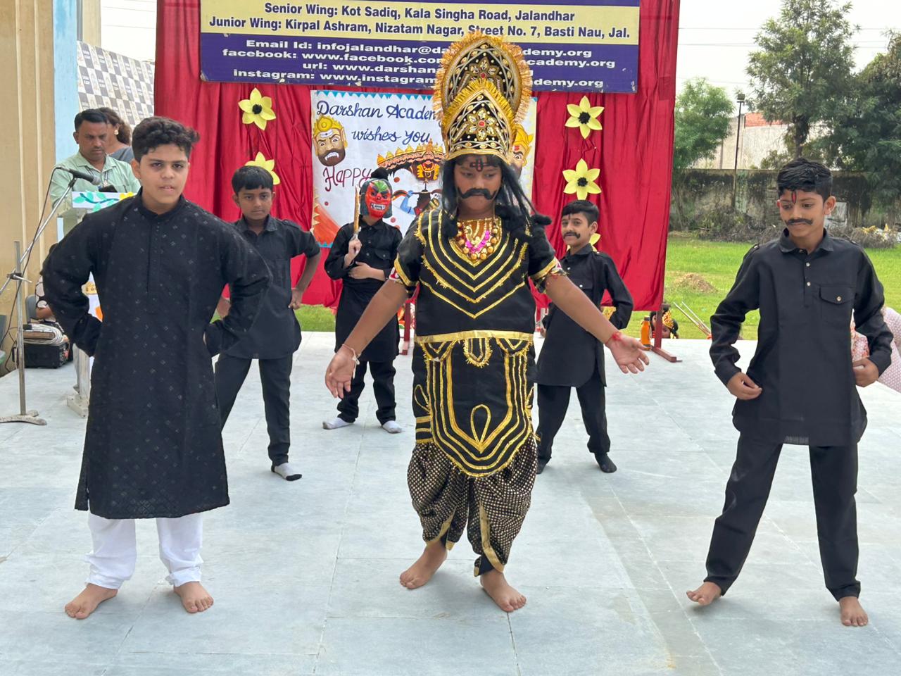 जालंधर (कुलविंदर) :- दर्शन अकैडमी, जालंधर में दशहरा पर्व बड़े ही धूमधाम और सांस्कृतिक उल्लास के साथ मनाया गया। इस अवसर पर विद्यालय परिसर भक्ति, रंगों और उत्साह से सराबोर हो गया।कार्यक्रम की शुरुआत छात्रा द्वारा हिंदी में दिए गए प्रेरणादायक भाषण से हुई, जिसमें उसने दशहरा के ऐतिहासिक और नैतिक महत्व को उजागर किया। इसके पश्चात विद्यार्थियों ने रामायण के विभिन्न प्रसंगों पर आधारित मनमोहक नाट्य प्रस्तुतियाँ दीं — जैसे सीता स्वयंवर, धनुष भंग, मारीच वध, सीता हरण, राम-हनुमान मिलन, राम-रावण युद्ध और रावण वध को दर्शाया। इन प्रस्तुतियों में बच्चों ने पारंपरिक वेशभूषा धारण कर पात्रों को जीवंत कर दिया, जिससे दर्शक भावविभोर हो उठे।