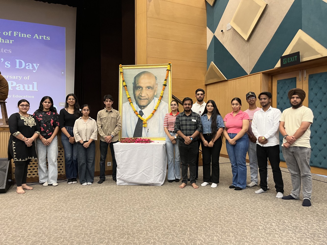 जालंधर (अरोड़ा) :- एपीजे कॉलेज ऑफ फाइन आर्ट्स, जालंधर ने अपने संस्थापक अध्यक्ष, डॉ. सत्य पॉल जी, जो एक दूरदर्शी शिक्षाविद्, परोपकारी, उद्योगपति और देशभक्त थे, के 106 वर्ष पूरे होने पर, उत्कृष्टता के 50 गौरवशाली वर्षों का श्रद्धापूर्वक स्मरण किया। उनके आदर्श आज भी पीढ़ियों को प्रेरित करते हैं। इस भव्य समारोह की शुरुआत डॉ. सत्य पॉल जी को पुष्पांजलि अर्पित करने के साथ हुई, जिसके बाद उनके पसंदीदा मीरा बाई भजनों की भावपूर्ण प्रस्तुति हुई, जिसने पूरे वातावरण को भक्ति और श्रद्धा से भर दिया। डॉ. नीरजा ढींगरा (प्राचार्य, एसीएफए) ने अपनी भावपूर्ण श्रद्धांजलि अर्पित की और कहा, हमारा कॉलेज निरंतर उन्नति और चमक रहा है, हमारे आदरणीय संस्थापक अध्यक्ष, सच्चे कर्मयोगी, डॉ. सत्य पॉल जी की समृद्ध विरासत से शक्ति और प्रेरणा प्राप्त कर रहा है, जिनकी दूरदर्शिता और मूल्य हर उपलब्धि के पीछे मार्गदर्शक शक्ति बने हुए हैं। डॉ. ढींगरा ने श्रीमती सुषमा पॉल बर्लिया (अध्यक्ष, एपीजे एजुकेशन; एपीजे सत्या एंड सर्व्न ग्रुप; और कुलाधिपति, एपीजे सत्या विश्वविद्यालय) का प्रेरणादायक संदेश भी साझा किया। सुषमा पॉल बर्लिया ने अपने संदेश में डॉ. सत्या पॉल जी के असाधारण जीवन पर प्रकाश डाला और उन्हें एक ऐसे व्यक्ति के रूप में वर्णित किया जो साधारण पृष्ठभूमि से उठकर भौतिक सीमाओं से परे ऊंचाइयों तक पहुंचे। उनका जीवन सत्य के प्रति अटूट प्रेम, अथक परिश्रम और मानवीय क्षमता में अटूट विश्वास से प्रेरित था। एक सच्चे दूरदर्शी के रूप में, उन्होंने अनगिनत युवा मस्तिष्कों के जीवन और चरित्र को आकार देने के लिए समर्पित 26 शैक्षणिक संस्थानों की स्थापना की।