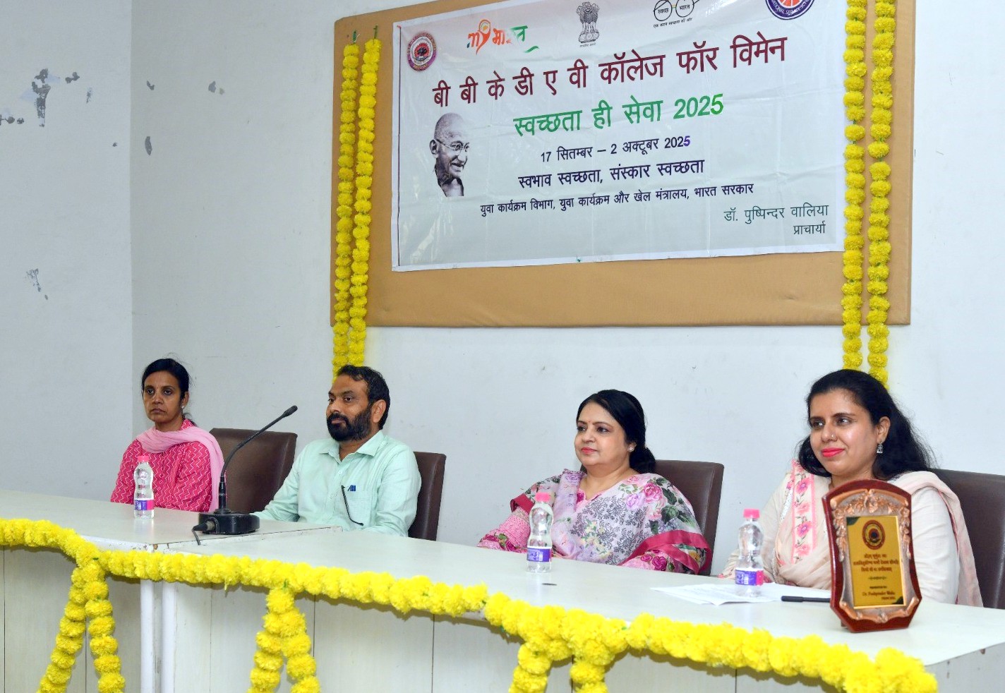 अमृतसर (प्रदीप) :- बी बी के डी ए वी कॉलेज फॉर विमेन में 15 दिवसीय स्वच्छता ही सेवा अभियान का सफलतापूर्वक समापन किया गया। इस कार्यक्रम में कॉलेज की एनएसएस इकाई द्वारा संचालित विभिन्न पहलों के माध्यम से स्वच्छता, स्थिरता और नागरिक उत्तरदायित्व के प्रति प्रतिबद्धता पर प्रकाश डाला गया। अपने संबोधन में, प्राचार्या डॉ. पुष्पिंदर वालिया ने इस बात पर ज़ोर दिया कि शिक्षा का मुख्य उद्देश्य सामुदायिक सेवा में निहित है। उन्होंने कहा कि यदि शिक्षा व्यक्तियों को समाज में सकारात्मक बदलाव लाने के लिए प्रेरित नहीं करती है, तो उसका कोई मूल्य नहीं है। उन्होंने छात्राओं से दूसरों की ज़रूरतों के प्रति संवेदनशील होने, दु:खों को कम करने की दिशा में काम करने और सामाजिक उत्थान में सार्थक योगदान देने का आग्रह किया। उन्होंने आगे कहा कि ये आदर्श आर्य समाज के सिद्धांतों में गहराई से निहित हैं, जिन्हें संस्थान अपनी विभिन्न पहलों के माध्यम से कायम रखता है। मुख्य अतिथि, डॉ. बलबीर सिंह, एनएसएस समन्वयक, जी.एन.डी.यू ने आज की तेज़ी से आगे बढ़ती, एआई-चालित दुनिया में एनएसएस के बढ़ते महत्व पर प्रकाश डाला, जहाँ मानवीय संपर्क कम होता