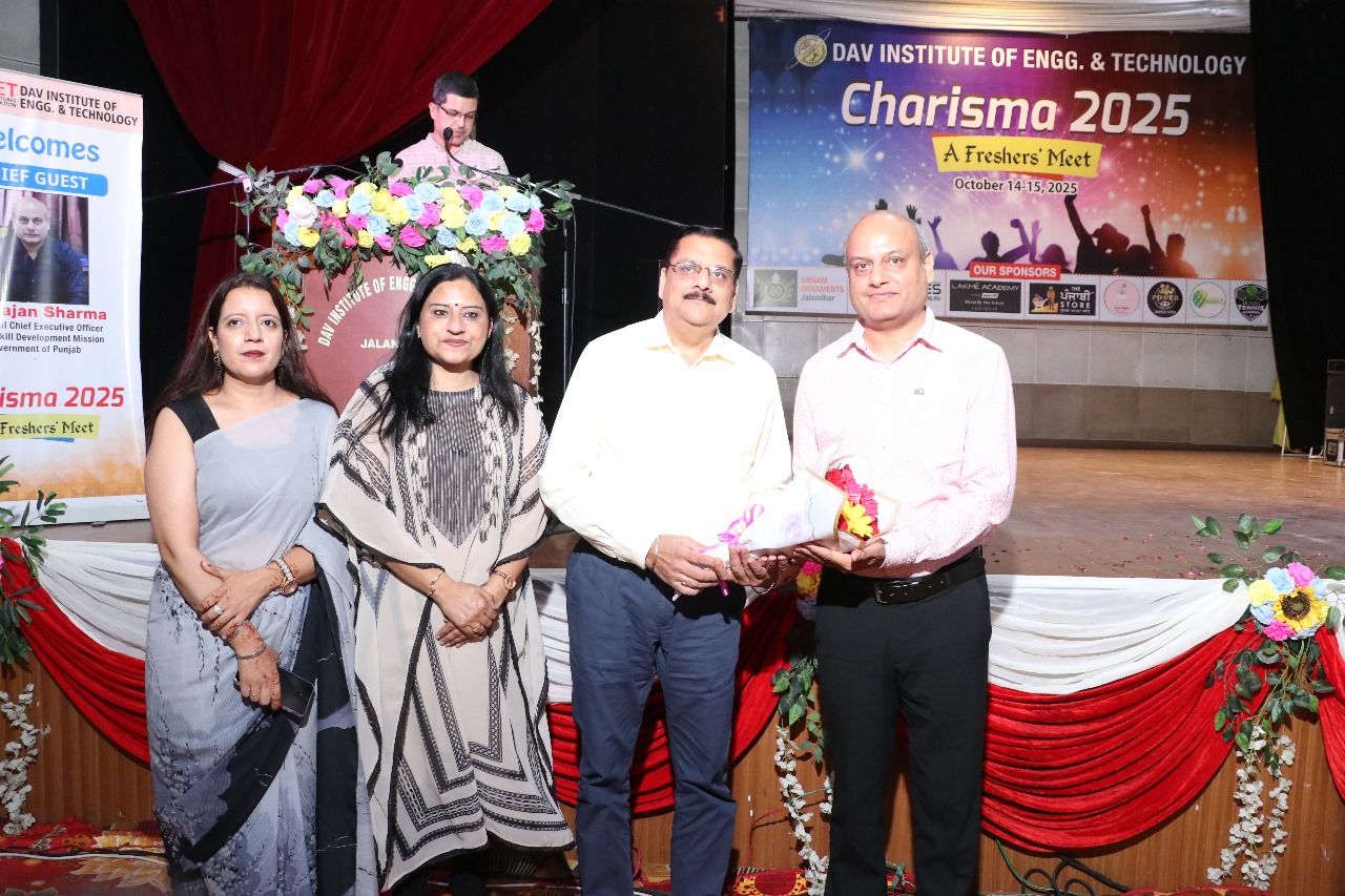 जालंधर/अरोड़ा – डीएवी इंस्टीट्यूट ऑफ इंजीनियरिंग एंड टेक्नोलॉजी, जालंधर ने 14-15 अक्टूबर, 2025 को अपने प्रथम वर्ष के छात्रों के लिए एक शानदार फ्रेशर्स पार्टी, CHARISMA 2k25 का आयोजन किया। CHARISMA छात्रों को अपनी प्रतिभा, रचनात्मकता और एकजुटता की सच्ची भावना प्रदर्शित करने का एक मंच प्रदान करता है। CHARISMA एक ऐसा मंच है जहाँ नई प्रतिभाओं को निखारा जाता है।