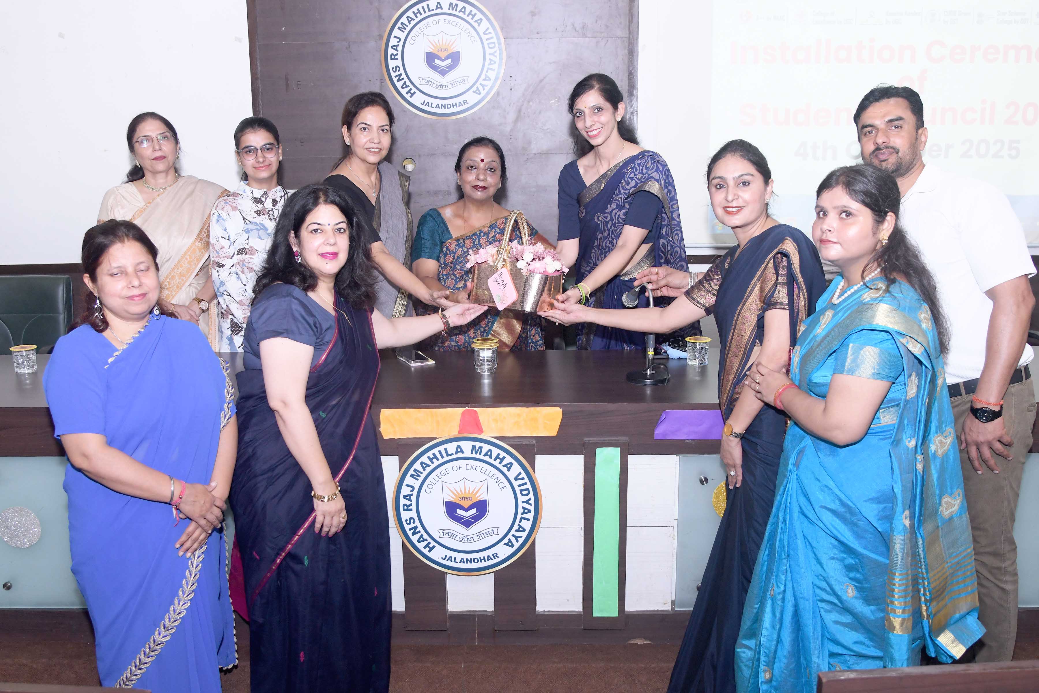जालंधर (अरोड़ा) :- हंस राज महिला महाविद्यालय, जालंधर में प्राचार्या प्रो. डॉ. अजय सरीन के कुशल मार्गदर्शन में स्टूडेंट कौंसिल की इंस्टालेशन सेरेमनी का आयोजन किया गया। समारोह की शुरुआत डीएवी गान से हुई, जिसके बाद स्टूडेंट कौंसिल की डीन डॉ. उर्वशी मिश्रा के नेतृत्व में स्टूडेंट कौंसिल के फैकल्टी सदस्यों ने प्राचार्या डॉ. सरीन का स्वागत किया। प्राचार्या डॉ. अजय सरीन, डीन अकादमिक डॉ. सीमा मरवाहा और डीन यूथ वैलफेयर डॉ. नवरूप ने मुख्य अतिथि पूर्व हेड गर्ल साक्षी वैद्य का स्वागत किया। प्राचार्या डॉ. अजय सरीन ने स्टूडेंट कौंसिल के नए सदस्यों को संबोधित किया और टीम के गठन को एक महत्वपूर्ण क्षण बताया। उन्होंने उन्हें हार्दिक बधाई दी और उन्हें अपनी भूमिका को दूरदर्शिता और जोश के साथ निभाने के लिए प्रेरित किया। प्राचार्या डॉ. सरीन ने पूर्व हेड गर्ल की कॉलेज में योगदान की भी सराहना की और कहा कि साक्षी ने अपना रोल बाखूबी निभाया।