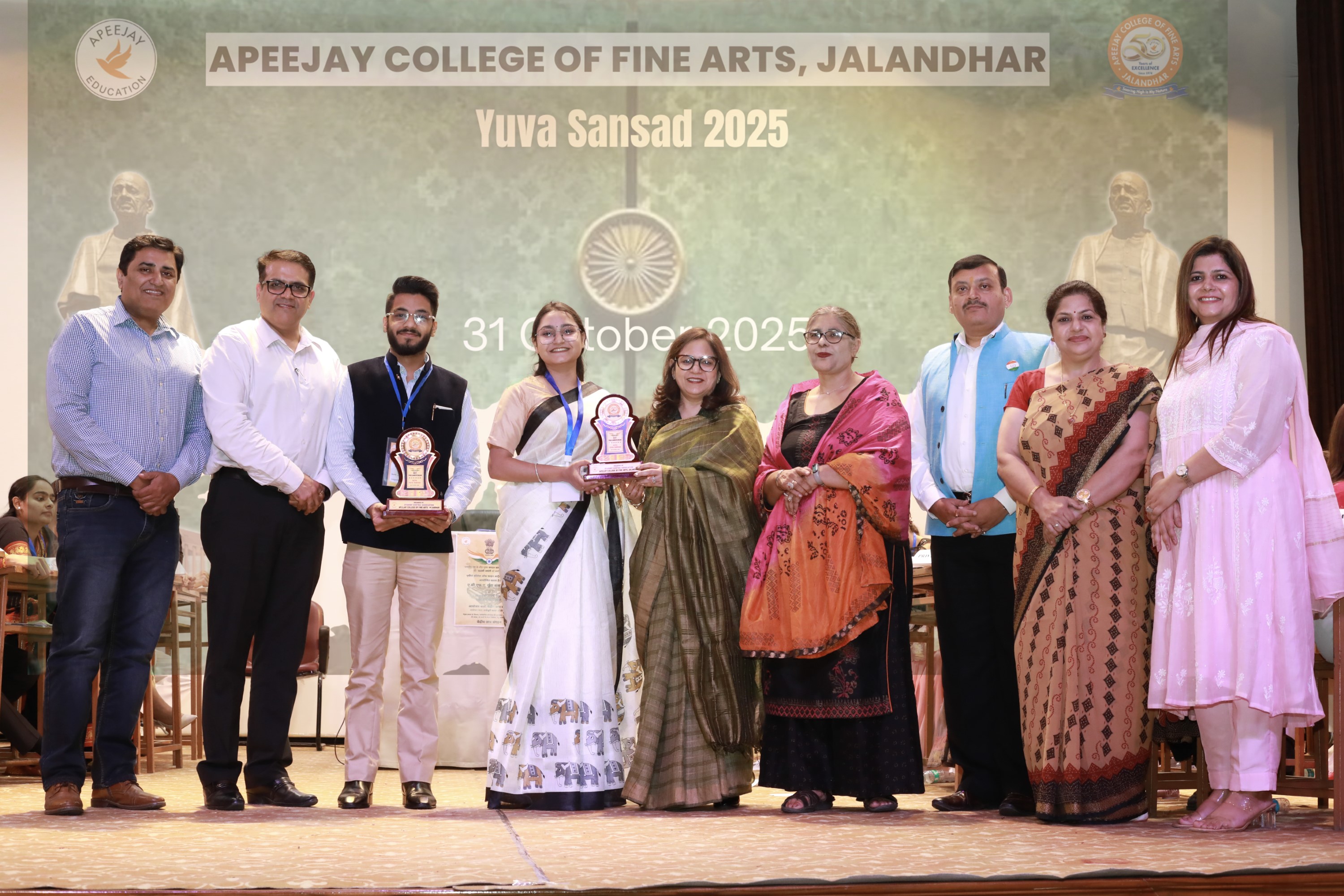 जालंधर (अरोड़ा) :- भारत के लौह पुरुष सरदार वल्लभभाई पटेल की जयंती और राष्ट्रीय एकता दिवस के उपलक्ष्य में, एपीजे कॉलेज ऑफ फाइन आर्ट्स, जालंधर में केंद्रीय छात्र संगठन द्वारा युवा संसद 2025″ का एक अनोखा एवं प्रगतिशील विचारों से युक्त लोक सभा के प्रश्न काल के सत्र का आयोजन किया गया। यह एक युवा संसद थी, जिसने छात्रों को जीवंत भारतीय लोक सभा की संसदीय कार्यवाही में भाग लेने के लिए एक मंच प्रदान किया। कार्यक्रम की शुरुआत संचालक सुश्री पलक द्वारा गर्मजोशी से स्वागत के साथ हुई, जिससे उत्साह और बौद्धिक जुड़ाव का माहौल बना। युवा संसद की अवधारणा को एक ऐसे मंच के रूप में खूबसूरती से प्रस्तुत किया गया, जहाँ युवा मस्तिष्क एक वास्तविक संसद की कार्यप्रणाली का अनुकरण करते हैं – राष्ट्रीय महत्व के मुद्दों पर बहस और विचार- विमर्श करते हैं। इस पहल के माध्यम से, छात्रों ने लोकतांत्रिक प्रक्रिया का प्रत्यक्ष अनुभव प्राप्त किया, सरकार और विपक्ष के कामकाज को समझा, साथ ही रचनात्मक संवाद, नेतृत्व और टीम वर्क की कला भी सीखी। हेड बॉय अक्षत और हेड गर्ल युविका ने प्राचार्या डॉ. नीरजा ढींगरा का पुष्पगुच्छ से स्वागत किया और उनके निरंतर प्रोत्साहन और दूरदर्शी नेतृत्व के लिए आभार व्यक्त किया। लोक सभा के अध्यक्ष तथा संसद सत्र के वक्ता रूप में इतिहास विभाग के अध्यक्ष, और स्कूल ऑफ सोशल साइंसेज एवं ह्यूमैनिटी के डीन, डॉ. विश्व बंधु वर्मा थे। कार्यक्रम के निर्णायक की भूमिका डॉ. जगमोहन मागो, डॉ. सुप्रीत तलवार और डॉ. मुनीश गुप्ता ने निभाई।