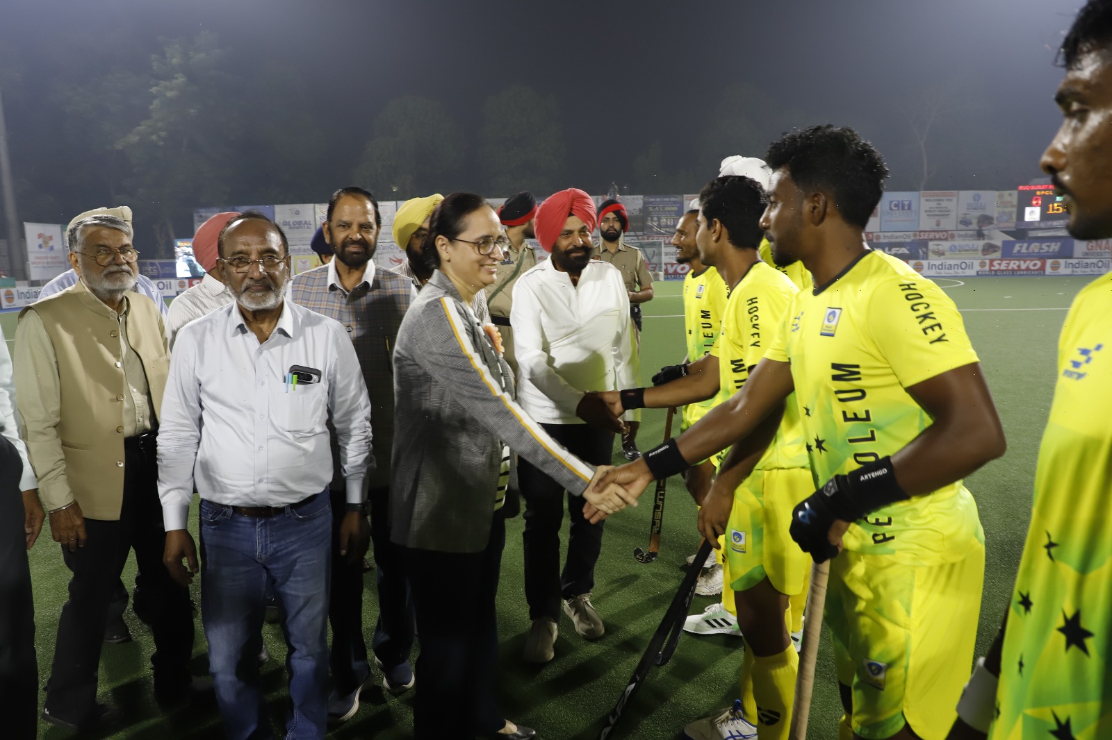 जालंधर (अरोड़ा) :- 42वें इंडियन ऑयल सर्वो सुरजीत हॉकी टूर्नामेंट का खिताबी मुकाबला इंडियन ऑयल मुंबई और इंडियन रेलवे दिल्ली की टीमों के बीच ओलंपियन सुरजीत हॉकी स्टेडियम, जालंधर में खेला जाएगा। आज शाम खेले गए सेमीफाइनल मैचों में, इंडियन रेलवे दिल्ली ने इंडियन नेवी मुंबई को 2-1 के अंतर से और इंडियन ऑयल मुंबई ने भारत पेट्रोलियम मुंबई को 2-1 के अंतर से हराकर फाइनल में जगह बनाई। इंडियन रेलवे दिल्ली की टीम पाँचवीं बार फाइनल में पहुँची है, जबकि इंडियन ऑयल मुंबई 14वीं बार फाइनल में पहुँची है। फाइनल मैच के मुख्य अतिथि, पंजाब के वित्त मंत्री, हरपाल सिंह चीमा, टीमों को पुरस्कार वितरित करेंगे। विजेता टीम को विजेता ट्रॉफी के साथ 5.51 लाख रुपये का नकद पुरस्कार (गखल ब्रदर्स यूएसए द्वारा प्रायोजित) दिया जाएगा और उपविजेता टीम को ट्रॉफी के साथ 2.51 लाख रुपये का नकद पुरस्कार दिया जाएगा। टूर्नामेंट के सर्वश्रेष्ठ खिलाड़ी को 1 लाख रुपये का नकद पुरस्कार (टुट ब्रदर्स द्वारा प्रायोजित) दिया जाएगा।