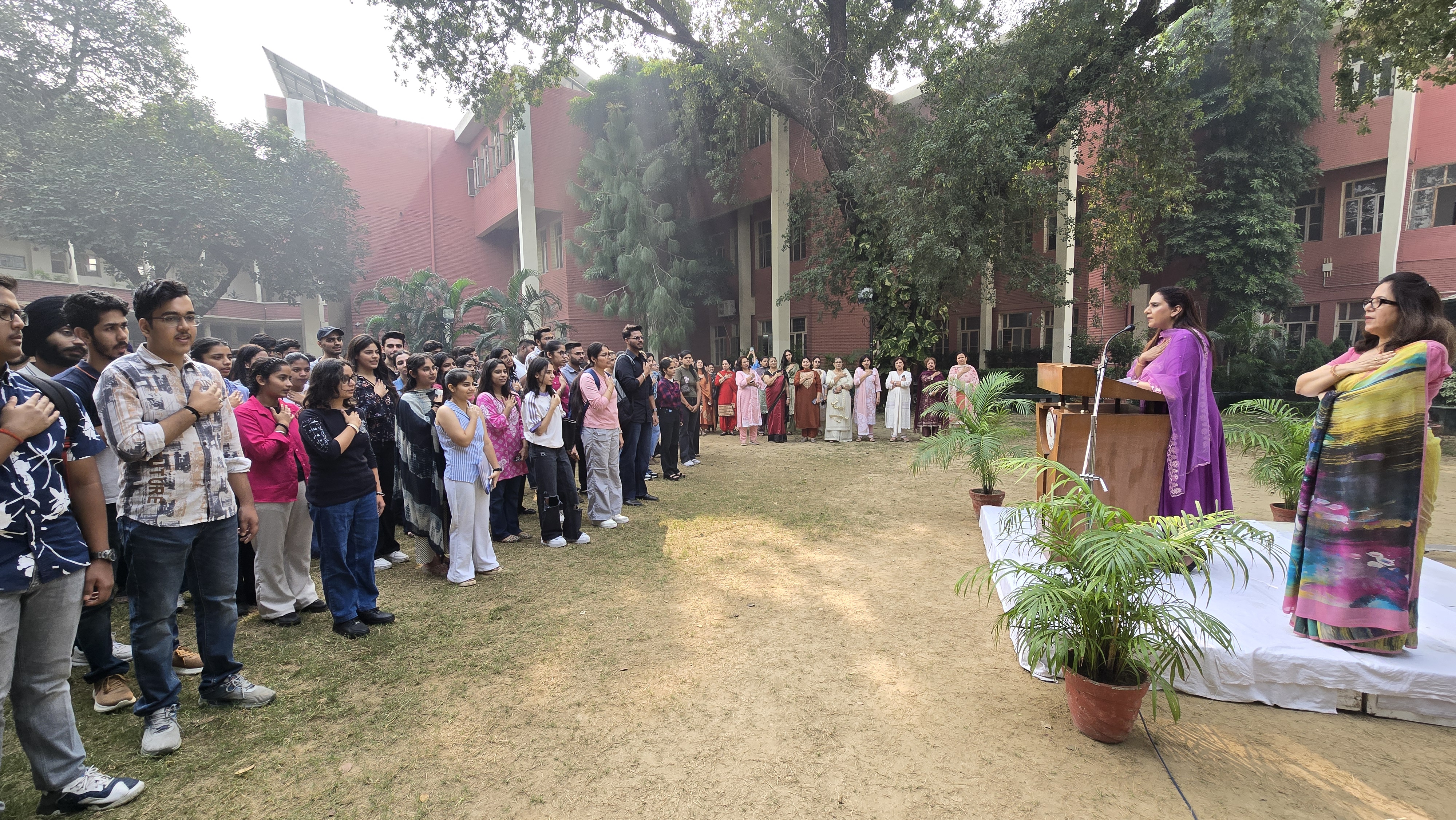 सुषमा पॉल बर्लिया ने अपने संदेश में सभी विद्यार्थियों एवं प्राध्यापकवृंद को यह शपथ दिलाई कि हमें अपनी रोजमर्रा की जिंदगी में कम से कम पांच लोगों के चेहरे पर मुस्कुराहट लाने की कोशिश करनी है, पांच लोगों का आभार व्यक्त करना है, और कम से कम एक व्यक्ति की मदद जरूर करनी है और अपने अतीत से शिक्षा लेते हुए अपने सुखद भविष्य के निर्माण में दिन-रात मेहनत करते हुए न केवल अपने विकास की राह का निर्माण करना है बल्कि दूसरों के विकास में भी अपना योगदान देना है। डॉ ढींगरा ने इस कार्यक्रम की अपार सफलता के लिए डॉ अमिता मिश्रा एवं डॉ मोनिका आनंद के प्रयासों की भरपूर सराहना की। मैडम रजनी कुमार के सफल मंच-संचालन ने कार्यक्रम की शोभा को चार चांद लगा दिए।