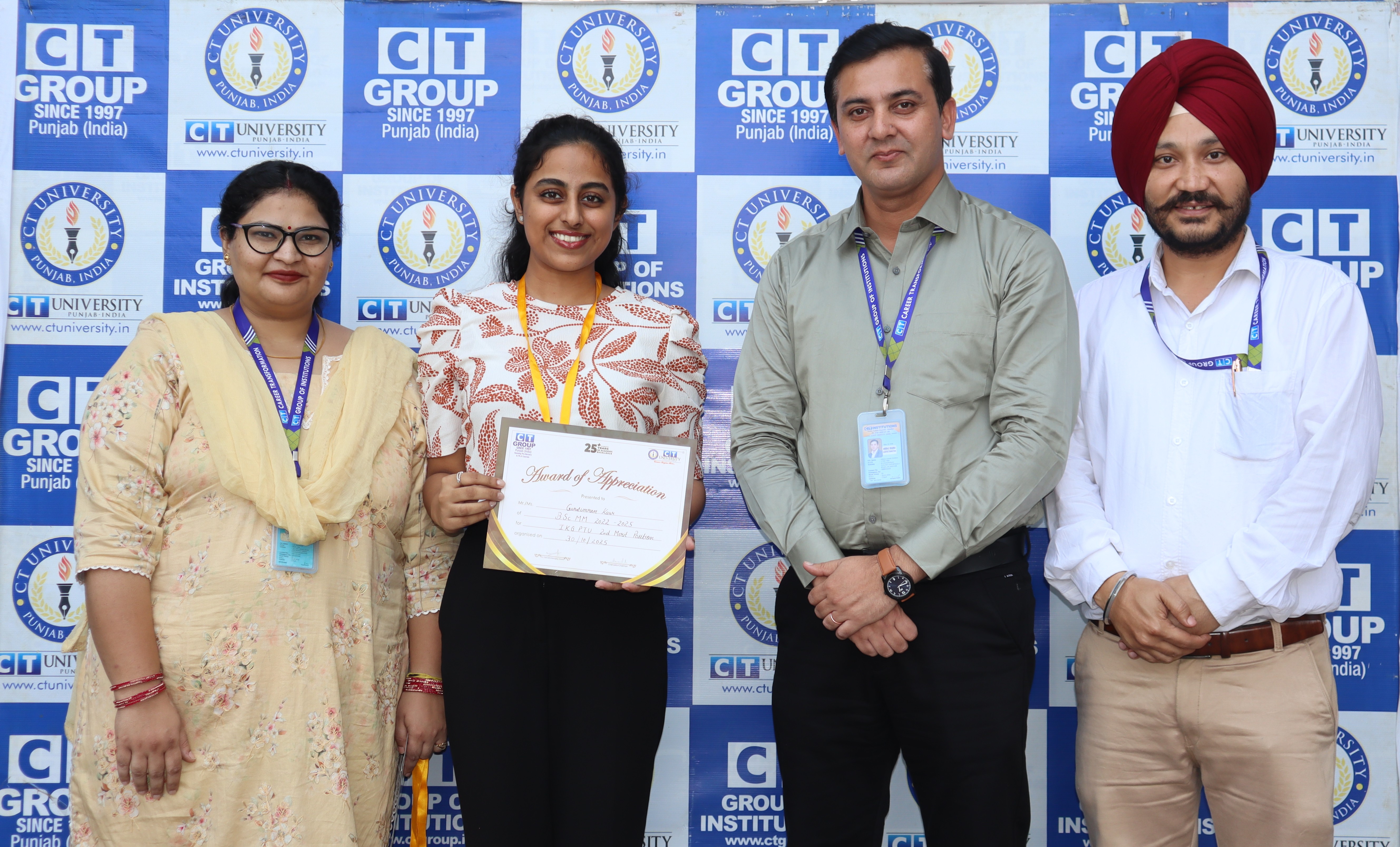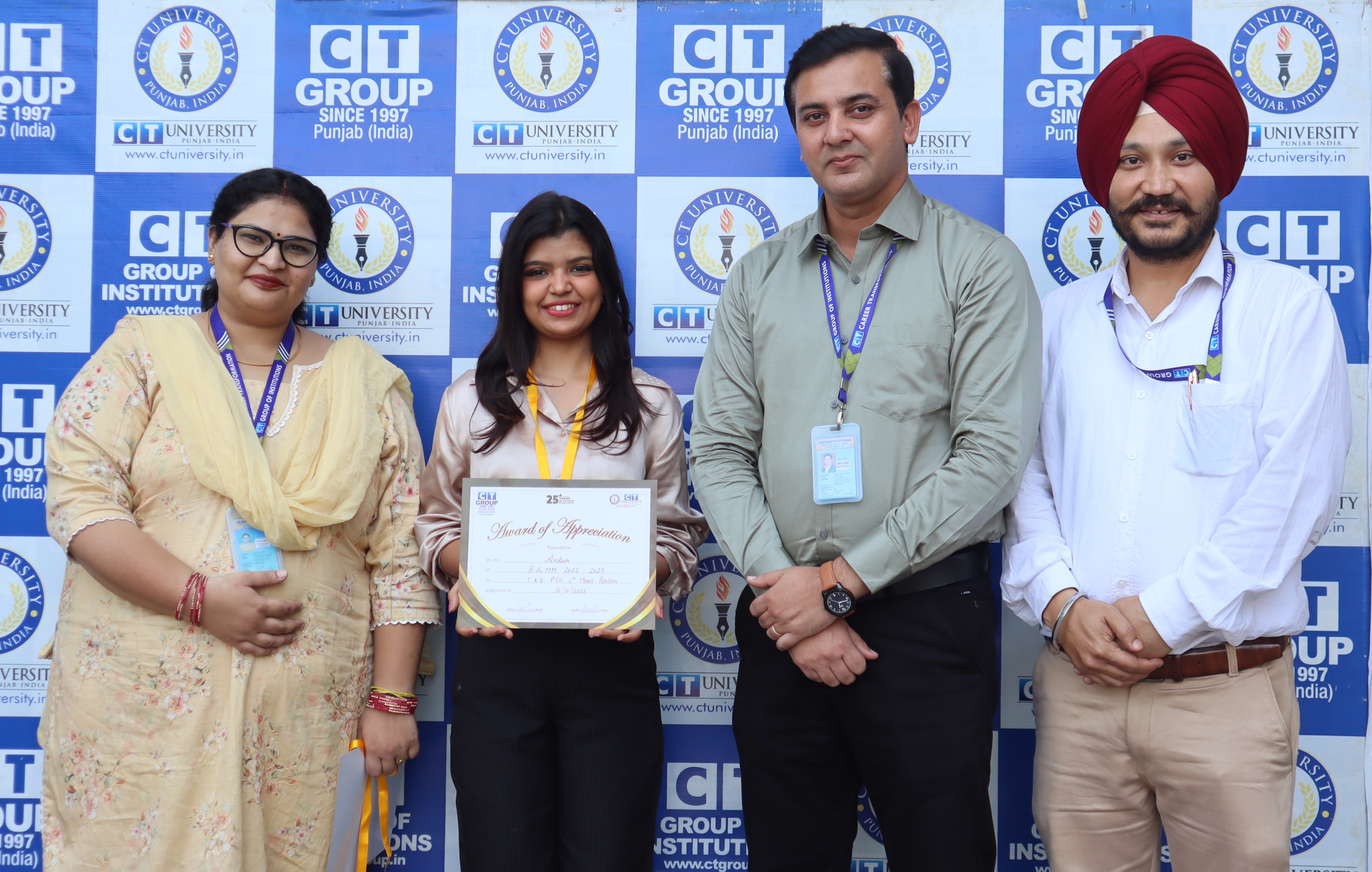 बीएचएमसीटी (4 वर्ष) में श्वेता कुमारी पुत्री सुभाष चंद्र ने 9.03 सीजीपीए के साथ दूसरा स्थान प्राप्त कर कैंपस का मान बढ़ाया। वहीं बी.टेक सीएसई में प्रियंका शर्मा पुत्री राज कुमार शर्मा ने 9.33 सीजीपीए के साथ नौवां स्थान हासिल किया। संस्थान के प्रबंधन ने इन उपलब्धियों पर गर्व व्यक्त करते हुए छात्रों को उनकी लगन, अनुशासन और दृढ़ संकल्प के लिए बधाई दी। प्रबंधन ने कहा कि यह निरंतर सफलता सीटी ग्रुप के उस विजन का परिणाम है, जिसमें हर छात्र के प्रतिभा संवर्धन और शैक्षणिक उत्कृष्टता पर जोर दिया जाता है। सीटी ग्रुप नॉर्थ कैंपस के निदेशक डॉ. अनुराग शर्मा ने कहा, “हमारे मेरिट होल्डर छात्रों ने यह साबित किया है कि सही मार्गदर्शन, कड़ी मेहनत और समर्पण से सफलता निश्चित होती है। वे अपने साथियों के लिए प्रेरणा स्तंभ हैं।” इन उपलब्धियों ने उच्च शिक्षा के क्षेत्र में सीटी ग्रुप की श्रेष्ठता को एक बार फिर सिद्ध किया है और इसका मिशन है—ज्ञान, आत्मविश्वास और मूल्यों से परिपूर्ण ऐसे युवा तैयार करना, जो भविष्य का नेतृत्व करें।
