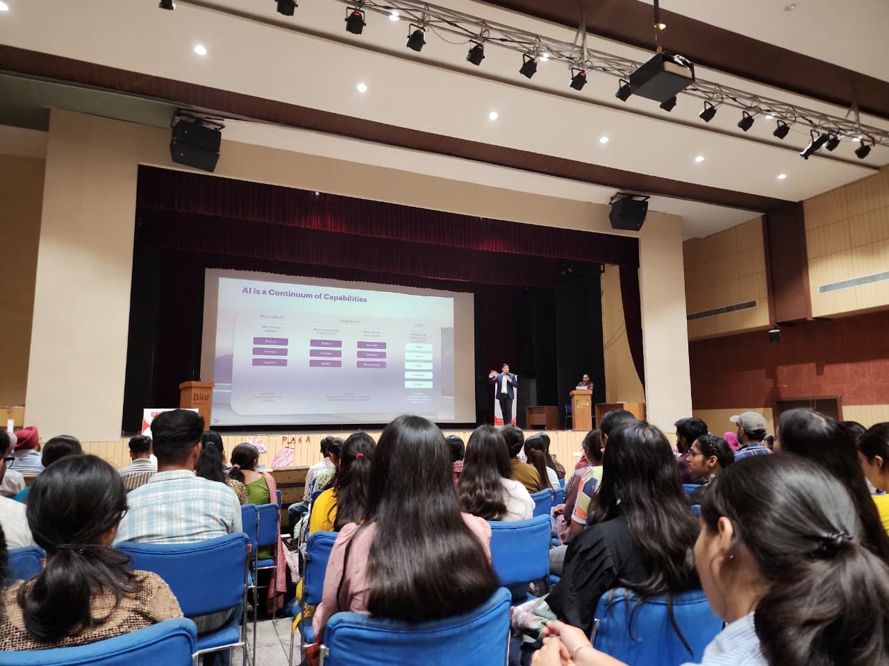डी.ए.वी. यूनिवर्सिटी के वाईस चांसलर प्रो. (डॉ.) मनोज कुमार ने कहा, “डी.ए.वी. यूनिवर्सिटी भविष्य के नवोन्मेषकों को तैयार करने के लिए प्रतिबद्ध है, जो आर्टिफिशियल इंटेलिजेंस की शक्ति का उपयोग कर टिकाऊ और स्मार्ट समाधान विकसित कर सकें। इस प्रकार के विशेषज्ञ सत्र अकादमिक जगत और उद्योग जगत के बीच एक सेतु का कार्य करते हैं, जिससे विद्यार्थी भविष्य की चुनौतियों के लिए सक्षम बनते हैं।” रजिस्ट्रार प्रो. (डॉ.) एस. के. अरोड़ा ने कहा, “इस प्रकार के कार्यक्रम विद्यार्थियों में नई सोच और नवाचार की भावना को प्रोत्साहित करते हैं। वे न केवल सैद्धांतिक ज्ञान प्राप्त करते हैं, बल्कि व्यावहारिक दृष्टिकोण से भी यह समझते हैं कि ए.आई. भविष्य के उद्योगों को कैसे आकार दे रही है।” डॉ. अरविंद महिंद्रू, एसोसिएट प्रोफेसर एवं कोऑर्डिनेटर, विभाग कंप्यूटर साइंस एंड एप्लिकेशंस, ने संकाय सदस्यों के साथ मिलकर वरुण सरीन को विश्वविद्यालय की ओर से स्मृति-चिह्न भेंट कर सम्मानित किया। यह कार्यक्रम अत्यंत सफल एवं प्रेरणादायी सिद्ध हुआ, जिसने विद्यार्थियों में नवाचार, अनुसंधान एवं उद्यमिता के प्रति उत्साह एवं रुचि को बढ़ावा दिया तथा उन्हें आर्टिफिशियल इंटेलिजेंस के क्षेत्र में असीम संभावनाओं की खोज हेतु प्रेरित किया।