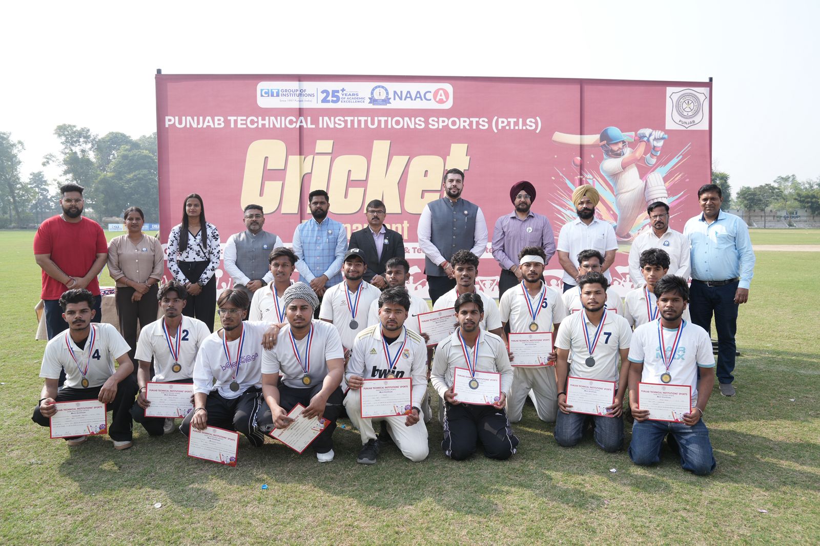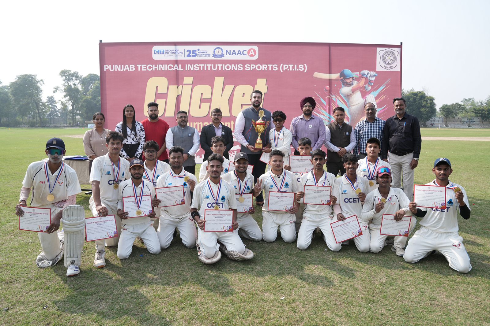 जालंधर (अरोड़ा) :- सी. टी. ग्रुप ऑफ इंस्टीट्यूशंस, शाहपुर कैंपस ने पी. टी. आई. एस. अंतर-महाविद्यालय क्रिकेट टूर्नामेंट 2025 की सफलतापूर्वक मेजबानी की, जिसमें खेल भावना, टीम वर्क और युवा ऊर्जा के जीवंत प्रदर्शन में नौ कॉलेज टीमें एकजुट हुई। टूर्नामेंट में कई प्रतिस्पर्धी मैच शामिल थे, जिनमें रोमांचक सेमीफाइनल, एक तीसरे स्थान का मैच और एक ग्रैंड फाइनल शामिल था। उद्घाटन और समापन समारोह में सीटी ग्रुप के उपाध्यक्ष हरप्रीत सिंह चन्नी, सीटी ग्रुप ऑफ इंस्टीट्यूशंस के निदेशक कैंपस डॉ. शिव कुमार, निदेशक (अकादमिक संचालन) डॉ. संग्राम सिंह, छात्र कल्याण विभाग के डीन डॉ. अर्जन सिंह और सीटी पॉलिटेक्निक शाहपुर के प्राचार्य मनीष ढींगरा ने भाग लिया। उनकी प्रेरक उपस्थिति ने प्रतिभागियों को अपना सर्वश्रेष्ठ प्रदर्शन देने के लिए प्रेरित किया। इस प्रतियोगिता में मेहर चंद जालंधर ने जी. पी. सी. फिरोजपुर को हराया, सी. सी. ई. टी. चंडीगढ़ ने साई पॉली बाधानी को हराया, सी. टी. पॉलिटेक्निक शाहपुर ने जी. पी. सी. बटाला को हराया और जी. पी. सी. लुधियाना ने जी. पी. सी. जालंधर को हराया।