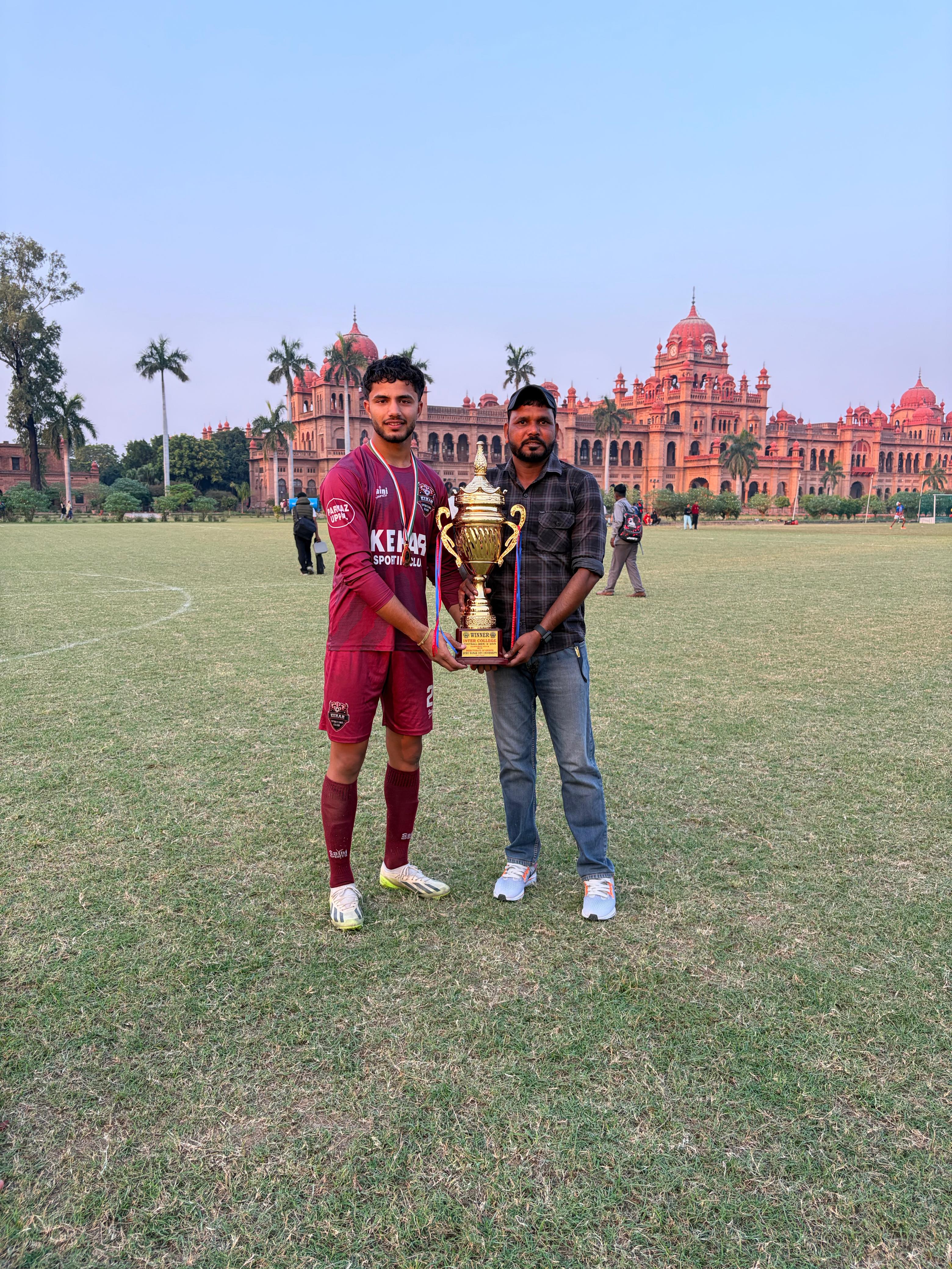 - मैच का सर्वश्रेष्ठ खिलाड़ी: शिवम ठाकुर शारीरिक शिक्षा विभाग के विभागाध्यक्ष डॉ. मनु सूद ने जीएनडीयू अंतर-कॉलेज फुटबॉल टूर्नामेंट में डी.ए.वी. कॉलेज जालंधर फुटबॉल टीम की शानदार जीत पर बधाई दी। उन्होंने कहा, “टीम के जुनून, टीम वर्क और दृढ़ता ने रंग दिखाया है और मुझे हर खिलाड़ी पर गर्व है। मैं कोचिंग स्टाफ हरशरणजीत और मोनू मसीह के प्रयासों की भी सराहना करता हूँ जिन्होंने टीम को यह सफलता दिलाने में अथक परिश्रम किया। यह जीत निश्चित रूप से हमारे छात्रों को अपने-अपने क्षेत्रों में उत्कृष्टता प्राप्त करने के लिए प्रेरित और प्रोत्साहित करेगी।” उन्होंने यह भी बताया कि इस वर्ष टीम की यह दूसरी बड़ी उपलब्धि है क्योंकि इससे पहले केहर स्पोर्टिंग क्लब के बैनर तले खेल रही कॉलेज टीम ने पंजाब फुटबॉल लीग टियर-2 चैंपियनशिप भी जीती थी। प्राचार्य डॉ. कुॅंवर राजीव ने भी टीम, कोचों और कर्मचारियों को उनकी कड़ी मेहनत और समर्पण से संस्थान का नाम रोशन करने के लिए बधाई दी।