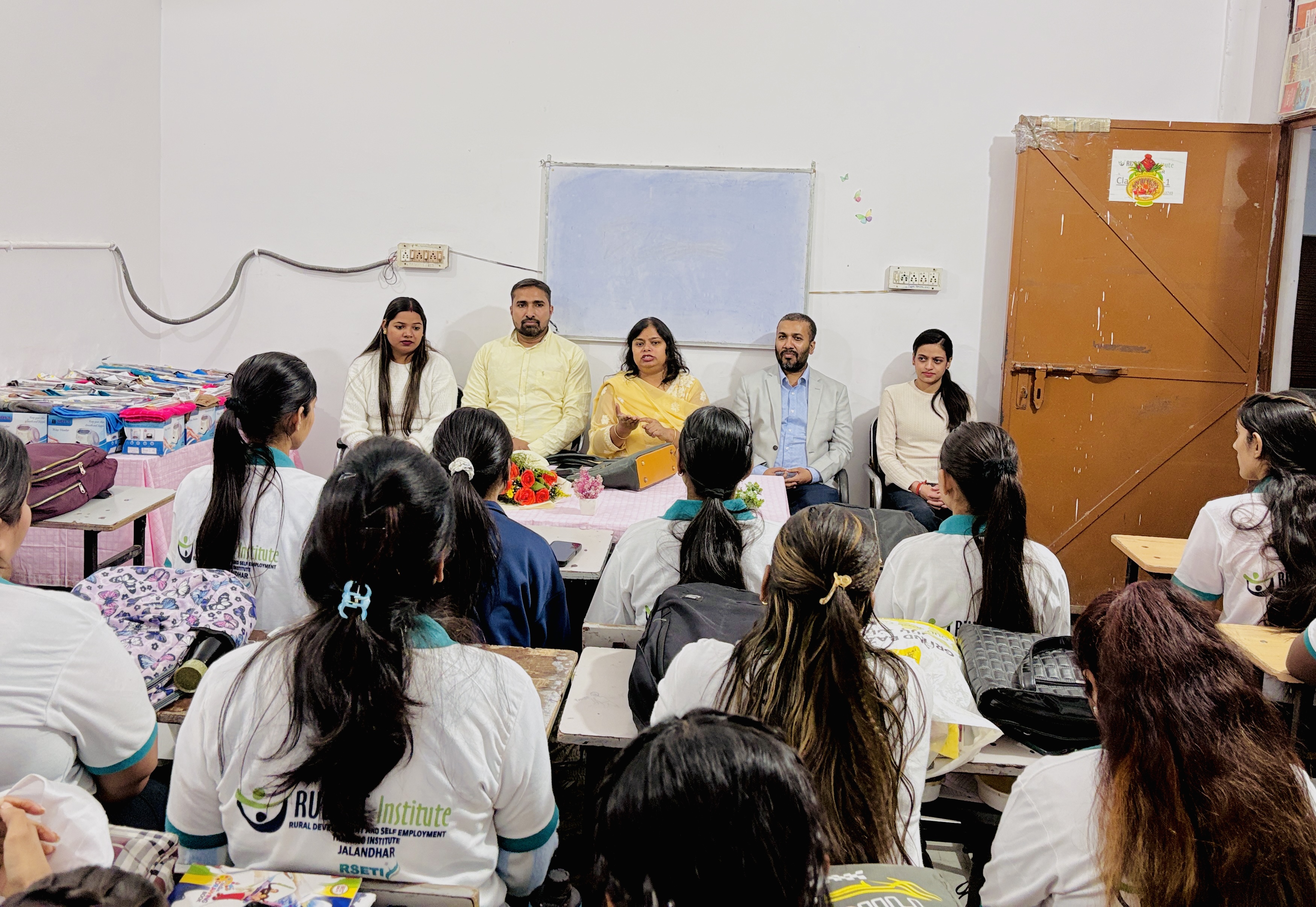 जालंधर (अरोड़ा) :- स्वरोजगार के माध्यम से युवाओं को आत्मनिर्भर बनाने के उद्देश्य से ग्रामीण विकास एवं स्वरोजगार प्रशिक्षण संस्थान (रुडसैट) द्वारा ब्यूटी पार्लर मैनेजमेंट कोर्स का समापन समारोह आयोजित किया गया। जिसमें 31 शिक्षार्थियों को प्रमाण पत्र प्रदान किए गए। समारोह में नाबार्ड की जिला विकास प्रबंधक श्रीमती सविता सिंह ने मुख्य अतिथि के रूप में शिरकत की। रूडसेट इंस्टीट्यूट जालंधर के निदेशक संजीव कुमार चौहान ने मुख्य अतिथि का स्वागत करते हुए कहा यहा पर स्वरोजगार के फ्री कोर्स करवाएं जा रहे हैं। वर्तमान बैच पूरा करने वाले शिक्षार्थियों को केनरा बैंक के DDM नाबार्ड सविता सिंह ने प्रमाण पत्र बांटे। खास बात यह है कि रूडसेट इंस्टीट्यूट मे जो विद्यार्थि ट्रेनिंग लेते हैं, उन्हें रहने के साथ साथ खाने – पीने की फ्री सुविधा दी जाती है।