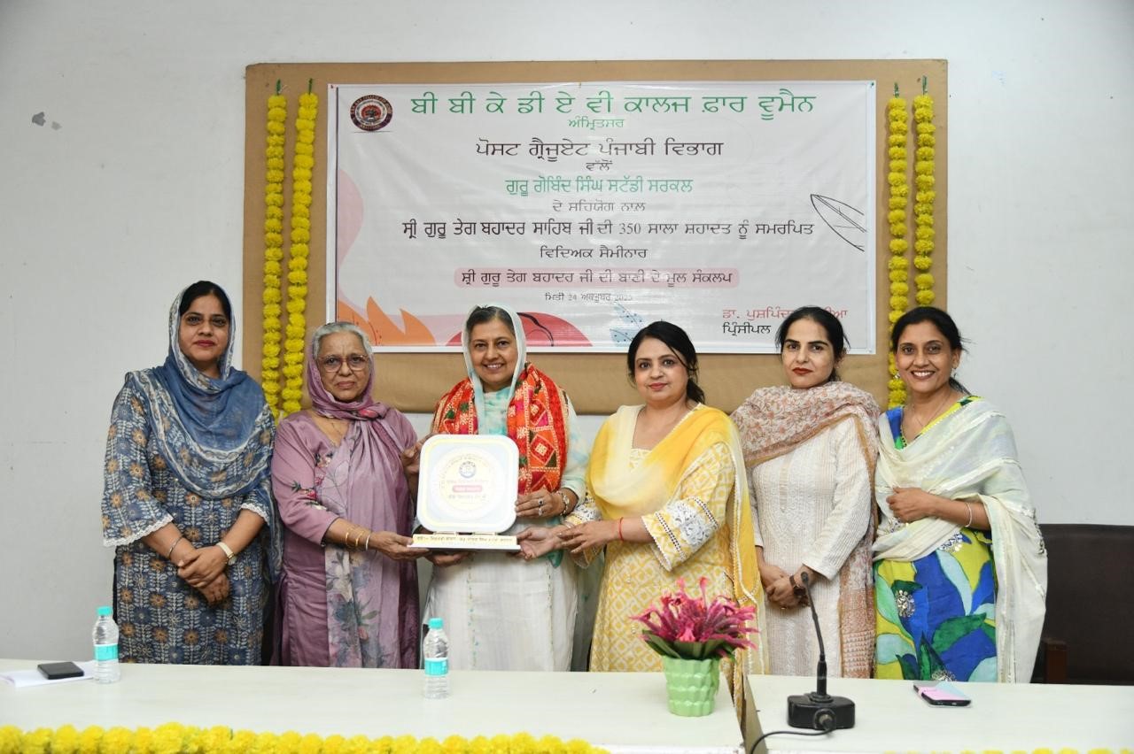 बी.बी.के डी.ए.वी कॉलेज फॉर विमेन में श्री गुरु तेग बहादुर जी की 350वीं शहादत जयंती को समर्पित विशेष संगोष्ठी का आयोजन