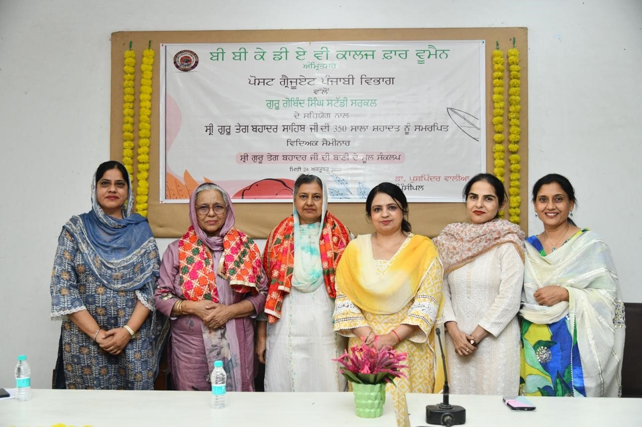 बी.बी.के डी.ए.वी कॉलेज फॉर विमेन में श्री गुरु तेग बहादुर जी की 350वीं शहादत जयंती को समर्पित विशेष संगोष्ठी का आयोजन