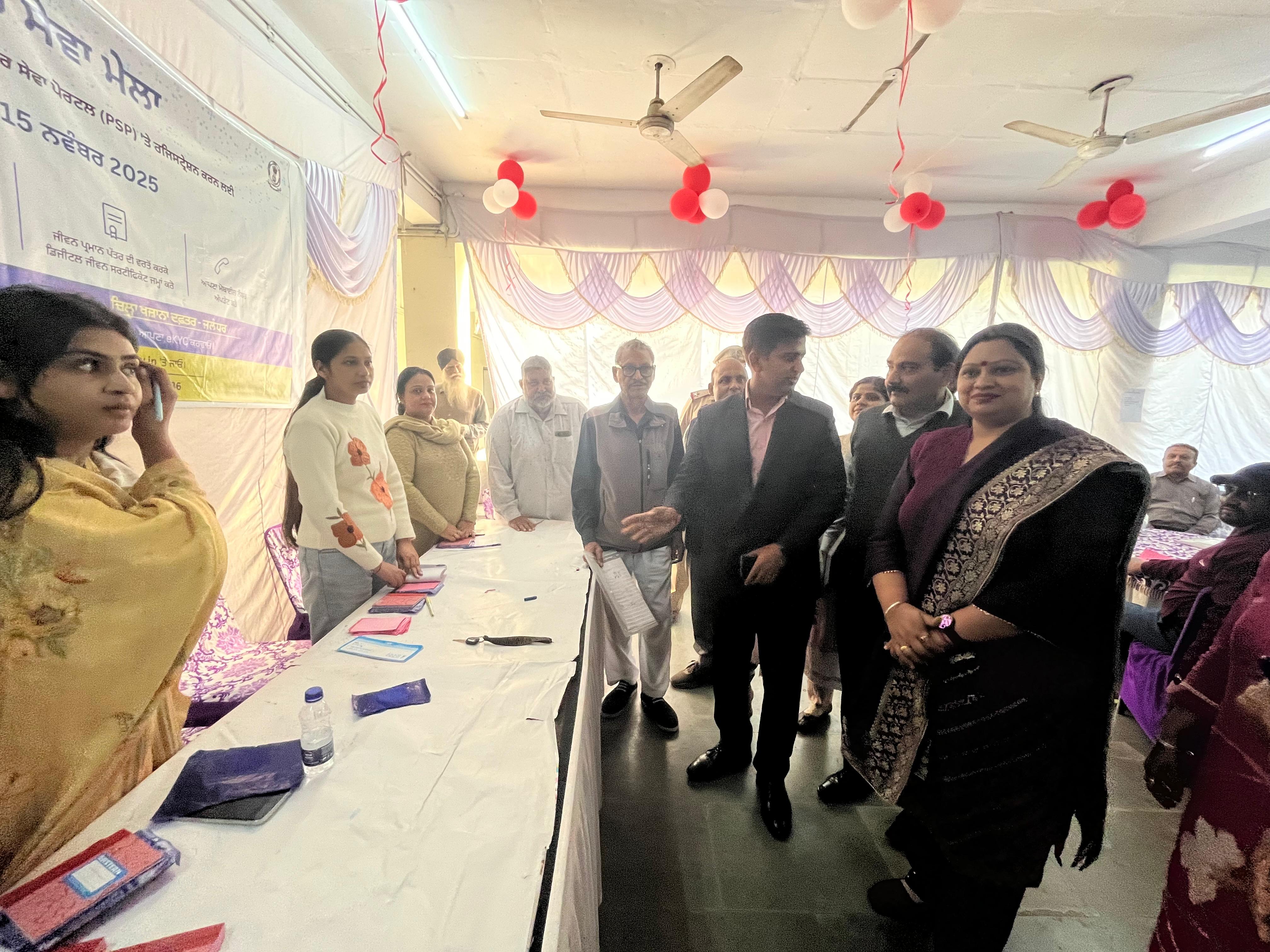 जालंधर (अरोड़ा) :- डिप्टी कमिश्नर डा. हिमांशु अग्रवाल ने आज राज्य सरकार के पेंशनभोगियों को पेंशनर सेवा पोर्टल का अधिक से अधिक उपयोग करने का आह्वान किया, जो पंजाब सरकार द्वारा पेंशन से संबंधित मुद्दों के शीघ्र एवं सुविधाजनक निपटारे के लिए शुरू की गई एक डिजिटल पहल है। उन्होंने यह अपील जालंधर के जिला खजाना दफ्तर में लगाए गए पेंशनर सेवा मेले का दौरा करते हुए की। इस दौरान डा. अग्रवाल ने कहा कि यह पोर्टल पेंशनभोगियों के अनुभव को और भी आसान बनाने के लिए तैयार किया गया है, जिससे वे घर बैठे एक क्लिक से अपने पेंशन खातों से संबंधित विभिन्न सेवाओं का लाभ ले सकें। यह प्लेटफॉर्म पेंशनभोगियों को सरकारी कार्यालयों या बैंकों में जाने की आवश्यकता को समाप्त करता है तथा जानकारी एवं अपडेट्स के लिए एक विश्वसनीय एवं पारदर्शी प्रणाली प्रदान करता है।