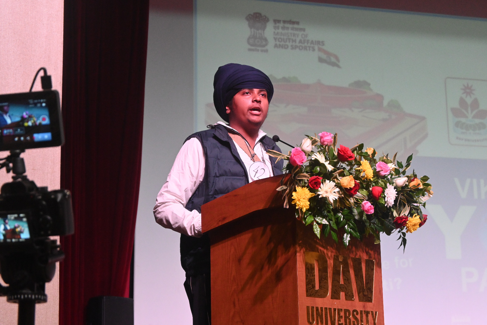 जालंधर (अरोड़ा) :- डी.ए.वी. विश्वविद्यालय, जालंधर ने नेशनल सर्विस स्कीम के सहयोग से ज़िला स्तरीय युवा संसद 2026 का आयोजन किया। इस कार्यक्रम ने 18 से 25 वर्ष आयु वर्ग के युवाओं को “विकसित भारत” विषय पर चर्चा और विचार-विमर्श का महत्वपूर्ण मंच प्रदान किया। ज़िले के 140 से अधिक विद्यार्थियों ने भाग लिया, जिससे युवाओं में संवाद, नेतृत्व और सामाजिक मुद्दों के प्रति बढ़ती रुचि स्पष्ट दिखाई दी। कार्यक्रम की शुरुआत डी.ए.वी. विश्वविद्यालय के रजिस्ट्रार, डॉ. एस. के. अरोड़ा के स्वागत भाषण से हुई। उन्होंने कहा, “युवा संसद केवल एक गतिविधि नहीं है, बल्कि यह ज़िम्मेदार नागरिक तैयार करने का एक सशक्त माध्यम है। डी.ए.वी. विश्वविद्यालय हमेशा युवाओं में संस्कार, आत्मविश्वास और सेवा की भावना विकसित करने के लिए प्रतिबद्ध है।” मुख्य अतिथि राजन गुप्ता, पूर्व आईपीएस अधिकारी और डी.ए.वी. विश्वविद्यालय के एक्सेक्यूटिव डायरेक्टर, ने अपने संबोधन में कहा, “युवाओं के पास देश के भविष्य को दिशा देने की सबसे बड़ी शक्ति है। ऐसे मंच युवाओं को संवाद, तर्क, विचार-विमर्श और लोकतांत्रिक भागीदारी जैसी महत्वपूर्ण क्षमताएँ सिखाते हैं— जो भारत को आगे बढ़ाने के लिए आवश्यक हैं।”