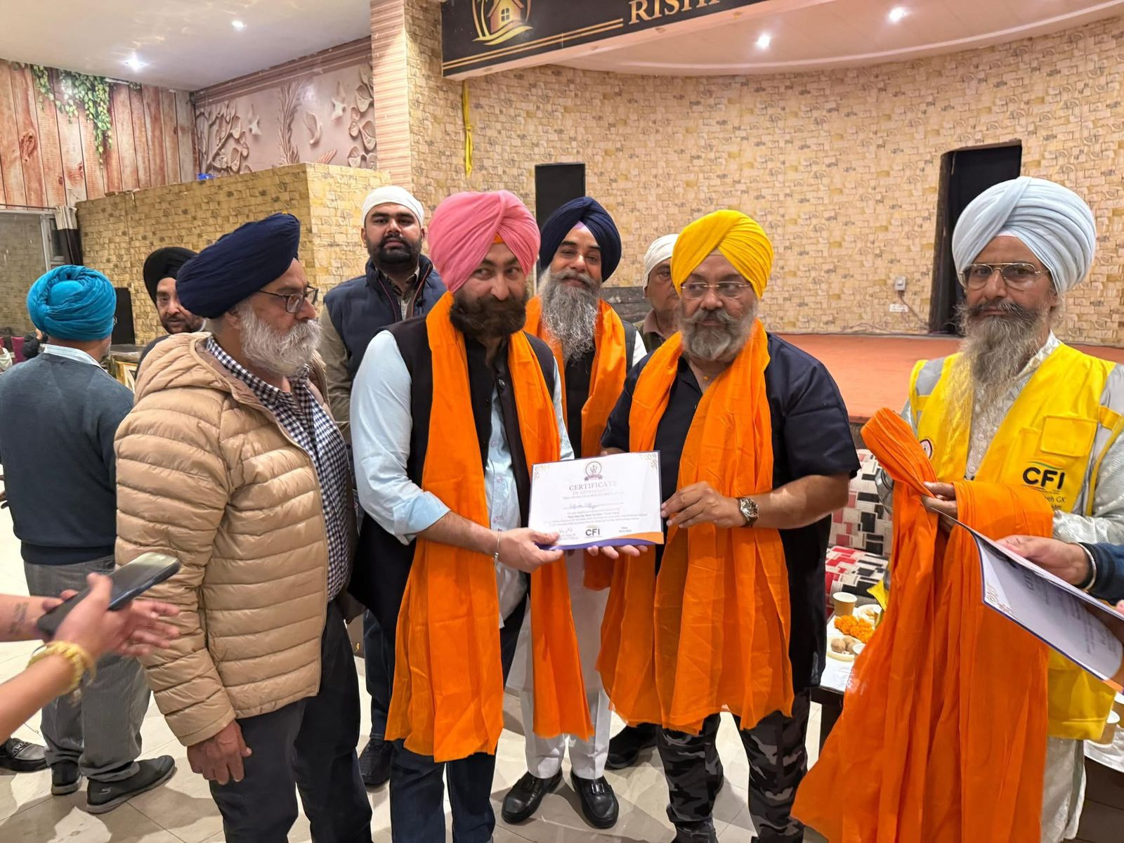 ਜੱਥੇਦਾਰ ਮਨਜੀਤ ਸਿੰਘ ਜੀ.ਕੇ. ਨੂੰ ਸਿਰੋਪਾਓ ਪਾ ਕੇ ਸਨਮਾਨਿਤ ਕਰਦੇ ਬਲਜਿੰਦਰ ਸਿੰਘ ਸੋਬਤੀ,ਸ਼੍ਰੋਮਣੀ ਅਕਾਲੀ ਦਲ ਦੇ ਜਨਰਲ ਸਕੱਤਰ ਤੇ ਹਲਕਾ ਇੰਚਾਰਜ ਯਾਦਵਿੰਦਰ ਸਿੰਘ ਯਾਦੂ , ਸੁਖਵਿੰਦਰ ਕੌਰ ਆਦਿ ਨੇ ਜੈਕਾਰਿਆਂ ਨਾਲ ਵੱਡੀ ਗਿਣਤੀ ‘ਚ ਸੰਗਤ ਨਾਲ ਮਿਲਕੇ ਭਰਵਾਂ ਸਵਾਗਤ ਕੀਤਾ। ਦਿੱਲੀ ਤੋਂ ਆਈਆਂ ਸਾਰੀਆਂ ਸੰਗਤਾਂ ਨੂੰ ‘ਜੀ ਆਇਆ ਨੂੰ” ਆਖਿਆ।
