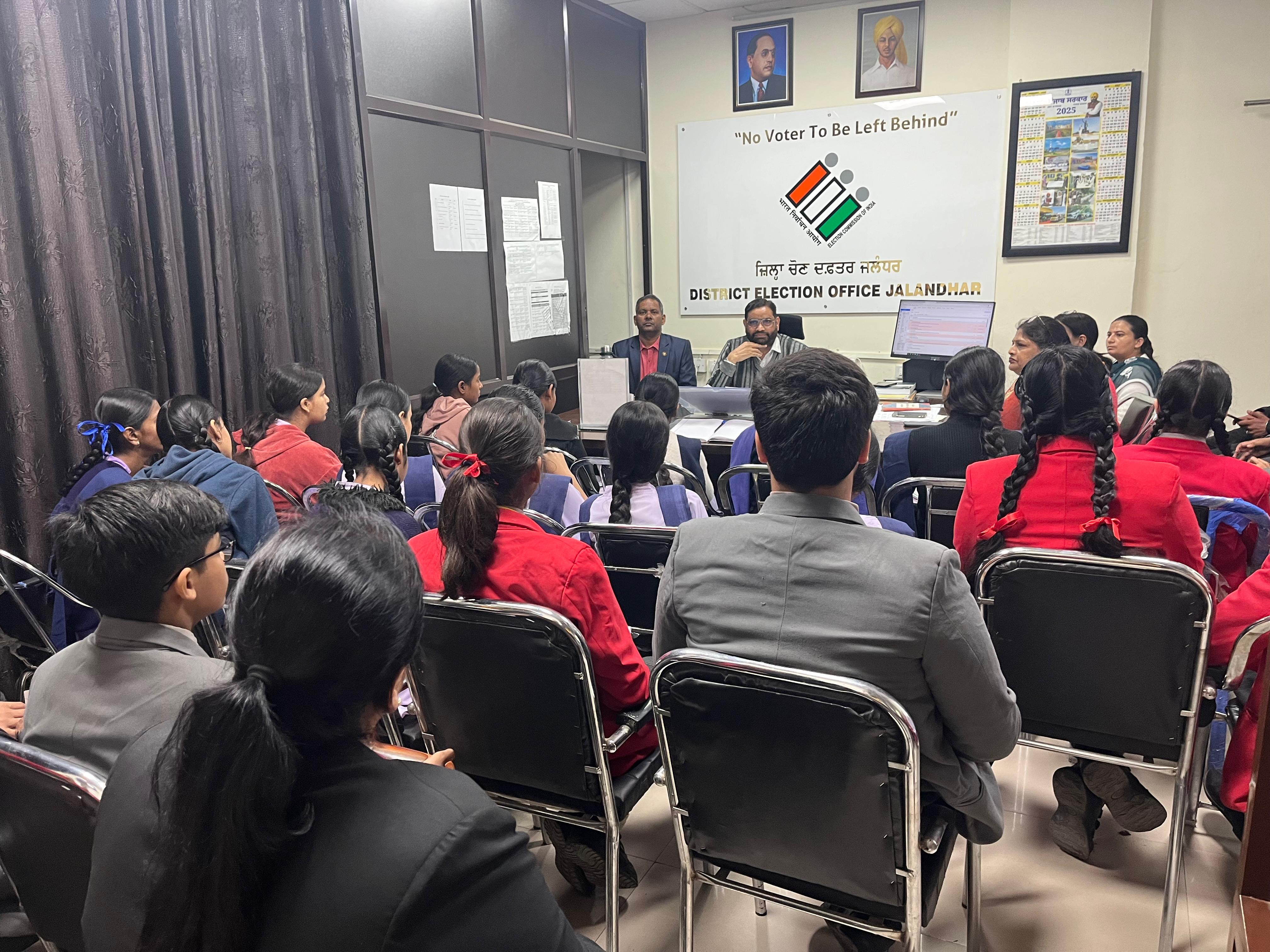 जालंधर (अरोड़ा) :- जिला प्रशासन की अनूठी पहल ‘चेतना शैक्षिक टूर’ के तहत सरकारी सीनियर सेकेंडरी स्मार्ट स्कूल सोफी पिंड और डिपस स्कूल अर्बन एस्टेट, जालंधर के छात्र-छात्राओं को जिला चुनाव कार्यालय का भ्रमण करवाया गया। इस टूर के दौरान छात्रों को चुनाव प्रक्रिया की विस्तृत जानकारी देने के साथ-साथ लोकतंत्र को मजबूत करने में युवाओं की महत्वपूर्ण भूमिका के प्रति जागरूक किया गया। चुनाव तहसीलदार सुखदेव सिंह ने छात्रों को वोटर रजिस्ट्रेशन के लिए प्रयोग होने वाले विभिन्न फॉर्मों की जानकारी दी।