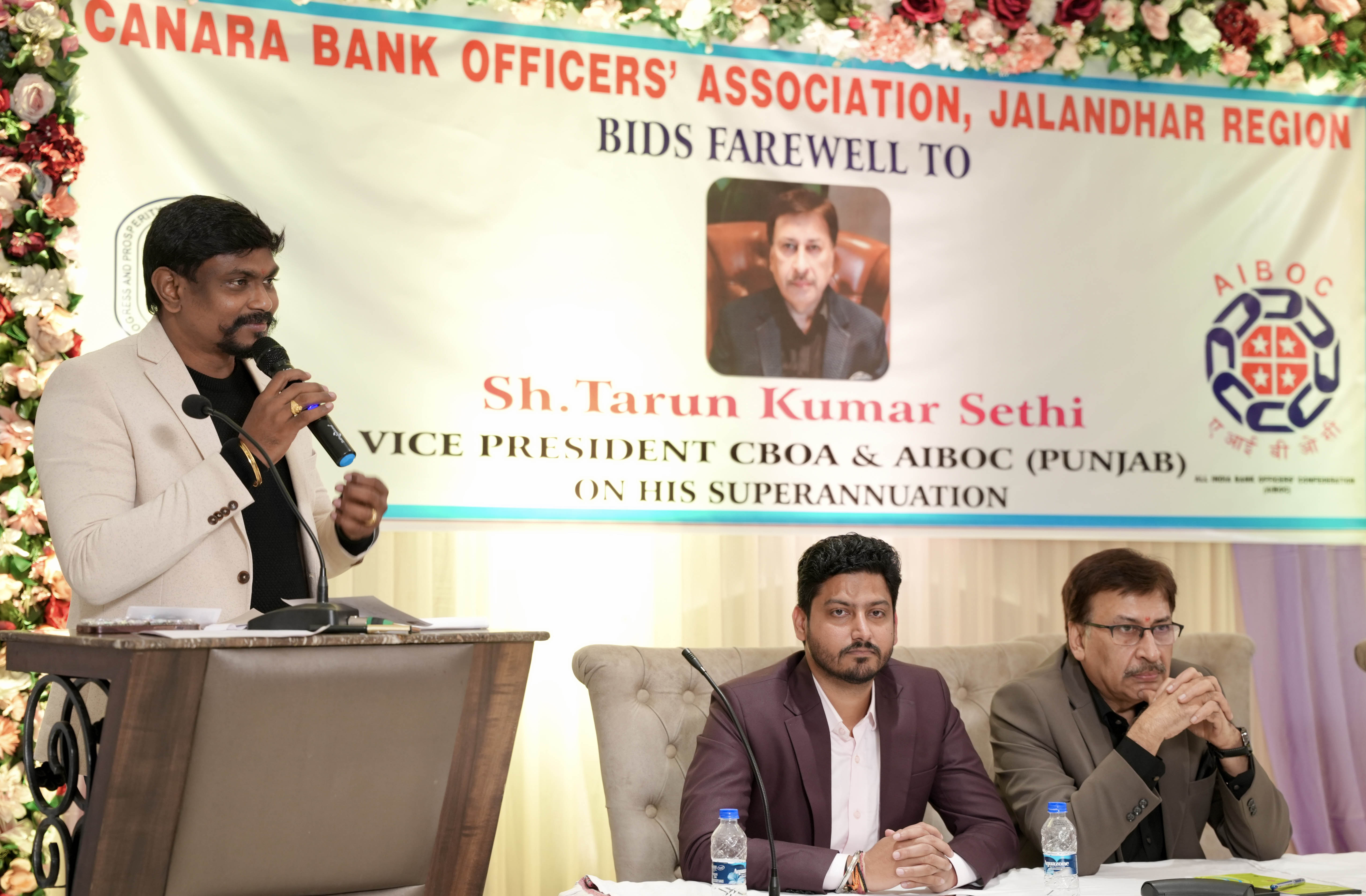 मुख्य अतिथि के. रवि कुमार ने बताया कि तरुण कुमार सेठी ने न केवल बैंक अधिकारियों के हितों के लिए दिन रात एक किया बल्कि समाज सेवा कार्यों में जोर शोर से भाग लिया।उनकी मेहनत, ईमानदारी और समर्पण ने न केवल बैंक को ऊंचाइयों तक पहुँचाया है, बल्कि हम सभी को प्रेरित भी किया है। उन्होंने हमेशा अपने कार्य में अनुशासन और ग्राहकों के प्रति संवेदनशीलता को प्राथमिकता दी। तरुण कुमार सेठी ने आयोजक सी.बी.ओ.ए. जालंधर और उपस्थित सभी लोगों का आभार व्यक्त करते हुए कहा कि आज वह जो कुछ भी हासिल कर पाए हैं, उसमें उनकी पत्नी बबीता सेठी और उनके परिवार का अहम योगदान और भगवान का पूरा आशीर्वाद है। तरुण जी ने भिन- भिन ब्रांचो में बिताए हुए पलों के बारे में अपनी यादगिरी सांझे करते हुए बताया उनका सफ़र बहुत ही सुहाना रहा. उन्होंने बताया रूडसेट संस्था जालंधर में बतौर डायरेक्टर उन्हें सेवाए निभाने का मौका मिला वह उनकी सर्विस का सबसे सुहाना सफर था क्योंकि वहाँ पर मध्य वर्ग के बच्चों को बिल्कुल मुफ्त कोर्स कराए जाते हैं। इन कोर्सों के माध्यम से बच्चों को आत्मनिर्भर बनाने का जो प्रयास हुआ, उसमें योगदान देकर मुझे अपार आनंद प्राप्त हुआ। यह सेवा मेरे लिए केवल एक जिम्मेदारी नहीं थी, बल्कि समाज के भविष्य को संवारने का अवसर था। जब मैंने युवाओं को नई दिशा में आगे बढ़ते देखा, तो मुझे बहुत संतोष और खुशी मिली।इसलिए, मेरा यह सफर बैंकिंग सेवा से आगे बढ़कर समाज की सेवा का एक उज्ज्वल अध्याय बन गया। समीर लांबा ने तरुण सेठी जी की जीवन यात्रा पर एक वीडियो पेश करके अपनी भावनाएं व्यक्त की, यह कार्यक्रम का एक भावुक क्षण था। अंत में समीर लांबा ने समस्त सी.बी.ओ.ए. परिवार की तरफ़ से तरुण कुमार सेठी के अच्छे स्वास्थ्य, खुशहाल जीवन और नए अनुभवों की कामना करते हुए हार्दिक शुभकामनाएँ दी।