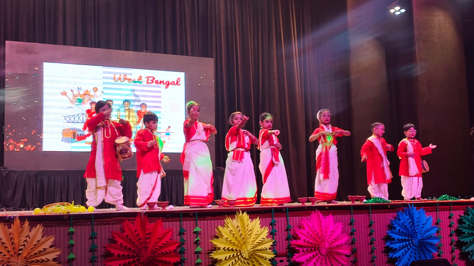 जालंधर (अरोड़ा) :- 13 दिसंबर को आयोजित वार्षिक समारोह “भारत का उत्सव” में प्री-प्राइमरी (नर्सरी, यूकेजी, एलकेजी, कक्षा 1 और कक्षा 2) के छोटे कलाकारों ने अपनी मनमोहक प्रस्तुतियों से दर्शकों को आकर्षित कर लिया। विषय के अनुरूप, बच्चों ने विभिन्न भारतीय राज्यों की संस्कृति, व्यंजन, नृत्य, संगीत, धर्म और परंपराओं को जीवंत ढंग से प्रदर्शित किया। कार्यक्रम की शुरुआत गणपति की स्तुति और शिव पूजा से हुई। नर्सरी के बच्चों ने अतिथियों का स्वागत करने के लिए एक सुंदर स्वागत गीत प्रस्तुत किया। यूकेजी के छात्रों ने “इनक्रेडिबल इंडिया” पर नृत्य किया, जिसमें विभिन्न राज्यों की विशेषताओं—खान-पान, नृत्य, गीत और धार्मिक परंपराओं—के बारे में तथ्य साझा किए गए।