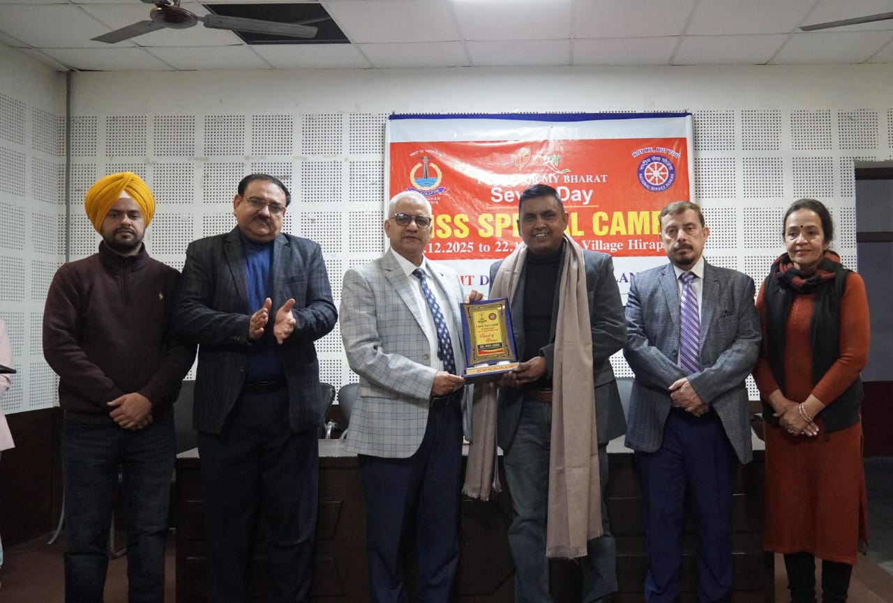 जालंधर (अरोड़ा) :- डी.ए.वी. कॉलेज, जालंधर की एनएसएस इकाई ने हीरापुर गांव में 16 दिसंबर, 2025 से 22 दिसंबर, 2025 तक आयोजित होने वाले सात दिवसीय एनएसएस विशेष शिविर का बड़े उत्साह और उमंग के साथ उद्घाटन किया। उद्घाटन सत्र 16 दिसंबर, 2025 को पंजाब युवा सेवा विभाग के सहायक निदेशक रवि दारा की गरिमामय उपस्थिति में आयोजित किया गया, जिन्होंने मुख्य अतिथि के रूप में इस अवसर की शोभा बढ़ाई। कार्यक्रम का शुभारंभ डी.ए.वी. गान की भावपूर्ण प्रस्तुति के साथ हुआ। मुख्य अतिथि का प्राचार्य डॉ. राजेश कुमार, वरिष्ठ उप-प्राचार्य प्रो. कुॅंवर राजीव और उप प्राचार्या प्रो. सोनिका दानिया, रजिस्ट्रार प्रो. अशोक कपूर और एनएसएस प्रभारी डॉ. साहिब सिंह ने हार्दिक स्वागत किया। स्नेह और सम्मान के प्रतीक के रूप में मुख्य अतिथि को कृतज्ञता का प्रतीक भेंट किया गया।