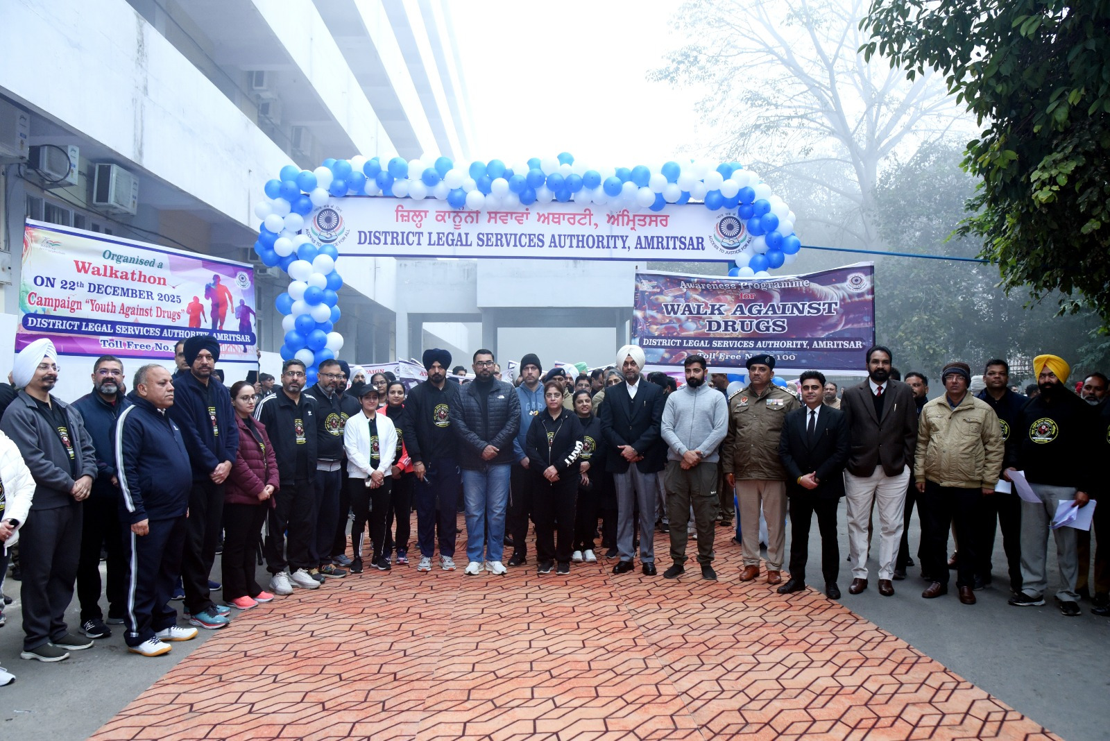 ਮਾਨਯੋਗ ਨਿਆਂ ਮੂਰਤੀ ਅਸ਼ਵਨੀ ਕੁਮਾਰ ਮਿਸ਼ਰਾ, ਜੱਜ, ਪੰਜਾਬ ਅਤੇ ਹਰਿਆਣਾ ਹਾਈ ਕੋਰਟ ਅਤੇ ਐਗਜ਼ਿਕਿਊਟਿਵ ਚੇਅਰਮੈਨ, ਪੰਜਾਬ ਸਟੇਟ ਲੀਗਲ ਸਰਵਿਸਿਜ਼ ਅਥਾਰਟੀ, ਐਸ.ਏ.ਐਸ. ਨਗਰ (ਮੋਹਾਲੀ) ਦੀ ਅਗਵਾਈ ਹੇਠ ਅਤੇ ਪੰਜਾਬ ਸਟੇਟ ਲੀਗਲ ਸਰਵਿਸਿਜ਼ ਅਥਾਰਟੀ, ਐਸ.ਏ.ਐਸ. ਨਗਰ (ਮੋਹਾਲੀ) ਦੇ ਲਰਨੇਡ ਮੈਂਬਰ ਸਕੱਤਰ ਦੀ ਰਹਿਨੁਮਾਈ ਅਤੇ ਸ਼੍ਰੀਮਤੀ ਜਤਿੰਦਰ ਕੌਰ, ਲਰਨੇਡ ਡਿਸਟ੍ਰਿਕਟ ਅਤੇ ਸੈਸ਼ਨਜ਼ ਜੱਜ-ਕਮ-ਚੇਅਰਪਰਸਨ, ਡਿਸਟ੍ਰਿਕਟ ਲੀਗਲ ਸਰਵਿਸਿਜ਼ ਅਥਾਰਟੀ, ਅੰਮ੍ਰਿਤਸਰ ਦੀ ਦੇਖਰੇਖ ਹੇਠ, ਡਿਸਟ੍ਰਿਕਟ ਲੀਗਲ ਸਰਵਿਸਿਜ਼ ਅਥਾਰਟੀ (ਡੀਐਲਐਸਏ), ਅੰਮ੍ਰਿਤਸਰ ਵੱਲੋਂ ਨਸ਼ਾ ਵਿਰੋਧੀ ਮੁਹਿੰਮ ਦੇ ਤਹਿਤ ਅੱਜ “ਯੂਥ ਅਗੈਂਸਟ ਡਰੱਗਸ” ਦੇ ਬੈਨਰ ਹੇਠ ਇੱਕ ਵਾਕਾਥਾਨ ਦਾ ਸਫਲਤਾਪੂਰਵਕ ਆਯੋਜਨ ਕੀਤਾ ਗਿਆ। ਇਸ ਦਾ ਮੁੱਖ ਉਦੇਸ਼ ਨਸ਼ਿਆਂ ਦੀ ਵੱਧ ਰਹੀ ਸਮੱਸਿਆ ਦੇ ਖਿਲਾਫ਼ ਜਾਗਰੂਕਤਾ ਫੈਲਾਉਣਾ ਅਤੇ ਨੌਜਵਾਨਾਂ ਤੇ ਆਮ ਜਨਤਾ ਨੂੰ ਇਸ ਦੇ ਭਿਆਨਕ ਪ੍ਰਭਾਵਾਂ ਬਾਰੇ ਸੰਵੇਦਨਸ਼ੀਲ ਬਣਾਉਣਾ ਸੀ।