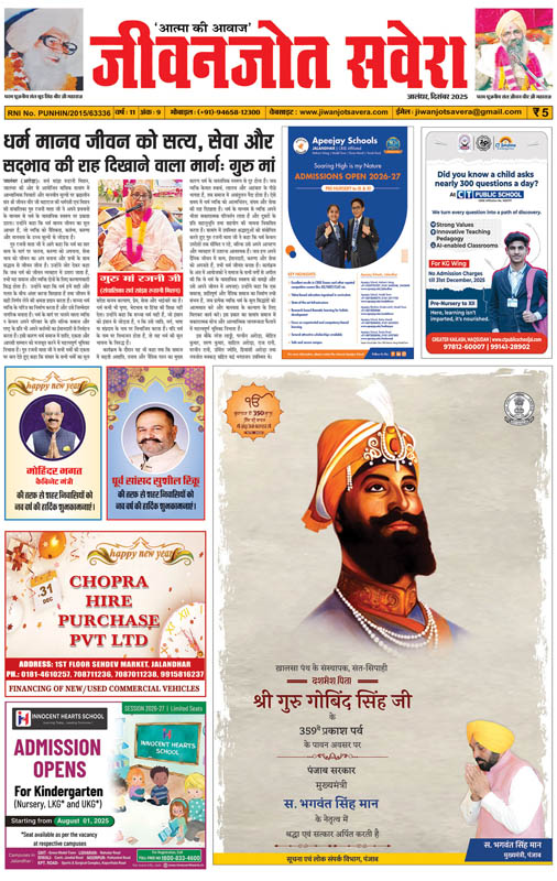 “जीवनजोत सवेरा” समाचार पत्र का नया अंक January 6, 2026 Share Facebook Related Articles “जीवनजोत सवेरा” समाचार पत्र का नया अंक December 1, 2025 “जीवनजोत सवेरा” समाचार पत्र का नया अंक November 9, 2025 “जीवनजोत सवेरा” समाचार पत्र का नया अंक August 20, 2025 “जीवनजोत सवेरा” समाचार पत्र का नया अंक June 18, 2025 जीवनजोत सवेरा समाचार पत्र का नया अंक January 3, 2025 Share Facebook
