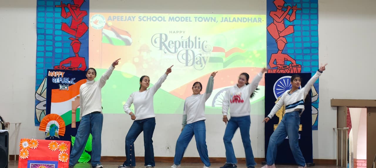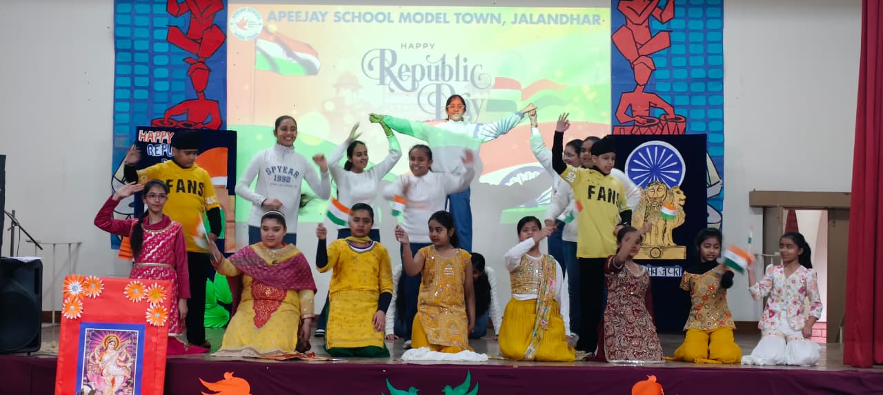 जालंधर (अरोड़ा) :- एपीजे स्कूल, मॉडल टाउन में गणतंत्र दिवस का आयोजन अत्यंत हर्षोल्लास और देशभक्ति की भावना के साथ किया गया। इस अवसर पर पूरा विद्यालय परिसर राष्ट्रीय गौरव और उत्साह से ओत-प्रोत दिखाई दिया। कार्यक्रम का शुभारंभ प्रातःकालीन सभा से हुआ, जिसमें गणतंत्र दिवस के महत्व के विषय में बताया गया।समारोह की शुरुआत विद्यालय के प्रधानाचार्य डॉ. राजेश कुमार चंदेल द्वारा तिरंगा लहराया गया जैसे ही तिरंगा आकाश में लहराया, पूरा वातावरण देशभक्ति की भावना से गूंज उठा। विद्यार्थियों ने देशभक्ति के गीतों एवं प्रेरणादायक भाषणों के माध्यम से राष्ट्र को नमन किया तथा नागरिक कर्तव्यों और संवैधानिक मूल्यों के प्रति जागरूकता का संदेश दिया।