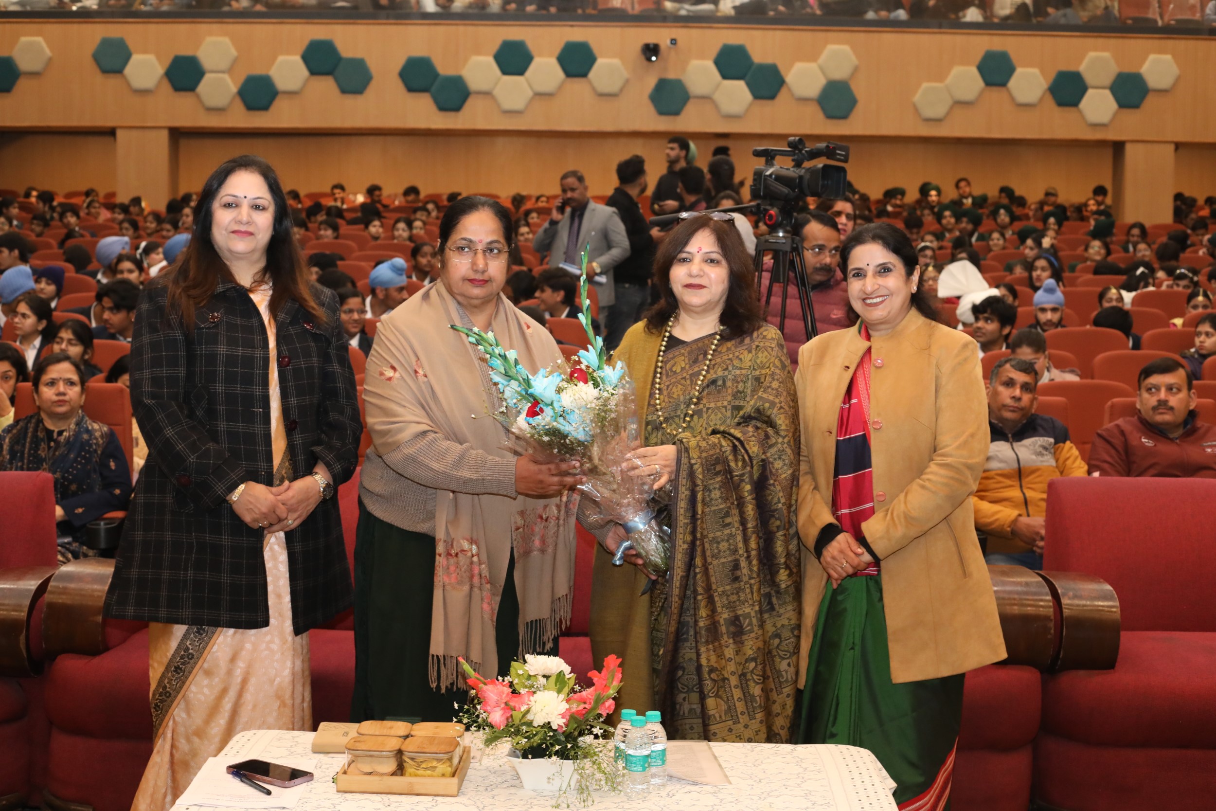 मैडम गुरिंदरजीत कौर का अभिनंदन करते हुए उन्होंने कहा जिस तरह जालंधर के शिक्षातंत्र को अद्यातन तकनीक से लैस कर सुचारू रूप से चलाने के लिए आप अपना महत्वपूर्ण योगदान दे रही है वह वास्तव में श्लाघा योग्य है। कॉलेज की 50 वर्ष की विकास यात्रा पर आधारित सॉरिंग हाइ इज़ माई नेचर थीम पर आधारित। वीडियो दिखलाई गई। परफोर्मिंग आर्ट्स विभाग की छात्रा समर्था द्वारा शिव स्तुति की भावप्रवण प्रस्तुति ने सभी को आत्म विभोर कर दिया। डिजाइन विभाग से मैडम रजनी कुमार ने कॉलेज की उपलब्धियों से सभी को परिचित करवाया। डॉ सुचरिता शर्मा ने इस अवसर पर अपने विचार व्यक्त करते हुए कहा कि मैंने जिंदगी के 41 वर्ष एपीजे कॉलेज में बिताते हुए श्रीमती सुषमा पाल बर्लिया के निर्देशन में निरंतर यहां से बहुत कुछ सीखते हुए न केवल अपने जीवन के ध्येय को प्राप्त किया है बल्कि निरंतर काम करते रहने के जुनून को भी अपने जीवन का लक्ष्य बनाया है। मैडम गुरिंदरजीत कौर ने विद्यार्थियों को संबोधित करते हुए कहा कि यह मेरा सौभाग्य है कि मुझे प्रतिभाशाली विद्यार्थियों से रूबरू होने का सुनहरी अवसर प्राप्त हुआ और जिस तरह से कॉलेज ने अपनी विरासत को संभाल कर एवं सहेज कर रखा है वह वास्तव में सराहनीय है उन्होंने कहा शिक्षा का मूल उद्देश्य सत्यम शिवम् सुंदरम के संगम से एक अच्छे मानव का निर्माण करना है। उन्होंने कहा कि आज प्राइवेट एवं सरकारी स्कूल में पढ़ने वाले बच्चों में बहुत बड़ा फासला आ रहा है जिसको पाटने की बहुत जरूरत है अगर हम विद्यार्थियों को अच्छे संस्कार देंगे तो निश्चित रूप से वे इस फासले को मिटा पर एक अच्छे समाज की नींव डाल सकते है। टैक फैस्ट में भाग लेने वाले सभी विद्यार्थियों को उन्होंने बधाई दी।