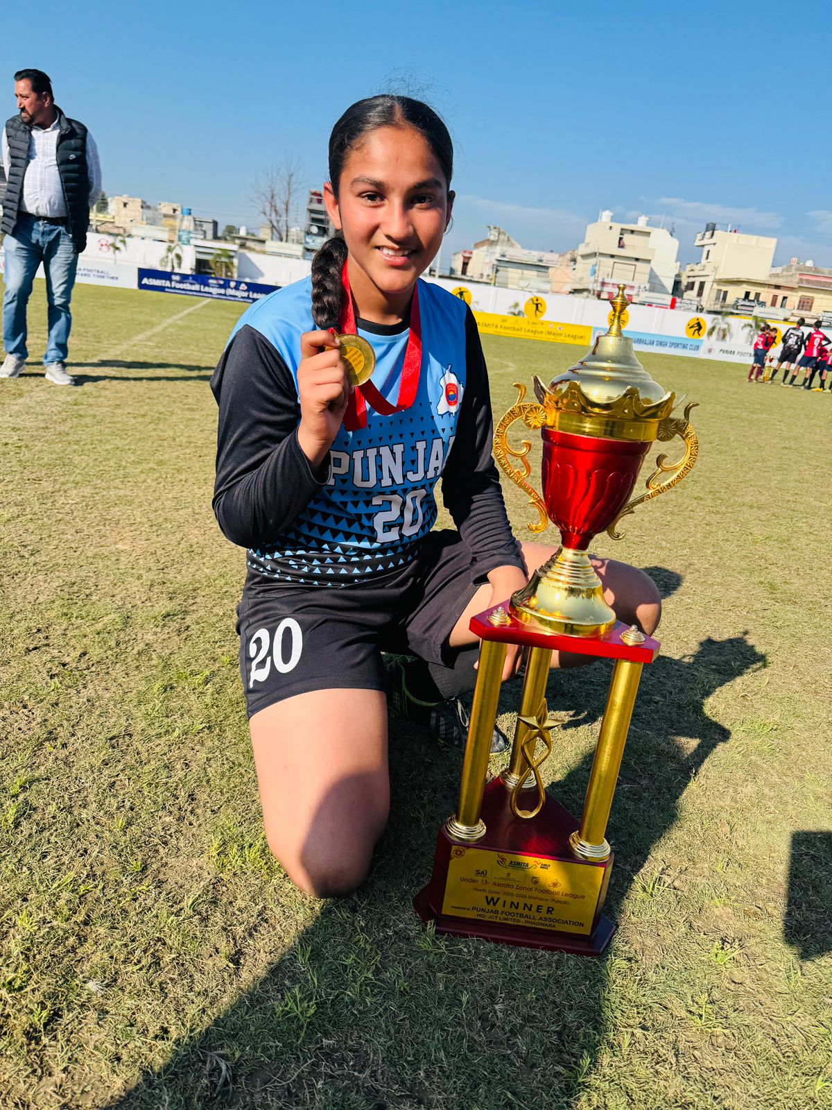 जालंधर (अजय छाबड़ा) :- छठी कक्षा की छात्रा सिमरनप्रीत की शानदार उपलब्धि ने सेंट सोल्जर ग्रुप का नाम रोशन किया, जिसने ऑल इंडिया फुटबॉल फेडरेशन (ए.आइ.एफ.एफ.) और पंजाब फुटबॉल एसोसिएशन (पी.एफ.ए) के तत्वावधान में आयोजित सभी फुटबॉल मैचों में जीत हासिल करके असाधारण प्रतिभा और खेल भावना का प्रदर्शन किया है, और इस तरह इन प्रतिष्ठित टूर्नामेंट में पहला स्थान हासिल किया है। सिमरनप्रीत का यह शानदार प्रदर्शन न केवल उसके व्यक्तिगत समर्पण, अनुशासन और कड़ी मेहनत को दर्शाता है, बल्कि शैक्षणिक विकास के साथ-साथ खेल में उत्कृष्टता को बढ़ावा देने के लिए संस्थान की निरंतर प्रतिबद्धता को भी दर्शाता है।