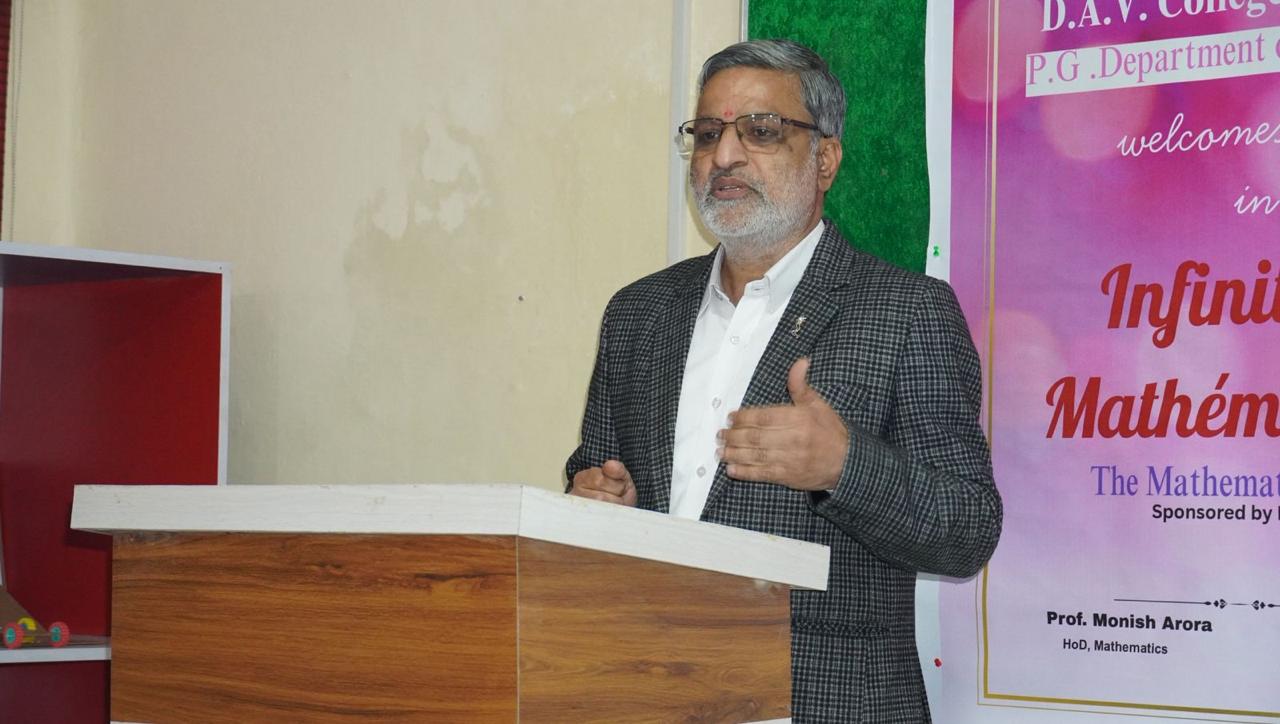 जालंधर (अरोड़ा) :- स्नातकोत्तर गणित विभाग ने डीबीटी स्टार कॉलेज योजना के तहत स्थापित अपनी महत्वाकांक्षी परियोजना “इनफिनिटम मैथेमेटिक – गणित गैलरी” का गर्वपूर्वक प्रदर्शन किया। कार्यक्रम का शुभारंभ मुख्य अतिथि प्राचार्य डॉ. अनूप कुमार के औपचारिक स्वागत के साथ हुआ, जिसके बाद डी.ए.वी. गान प्रस्तुत किया गया। विभागाध्यक्ष प्रोफेसर मोनिश अरोड़ा ने डॉ. अनूप कुमार का हार्दिक स्वागत किया। अपने स्वागत भाषण में, प्रोफेसर अरोड़ा ने गणित गैलरी की परिकल्पना और उद्देश्यों का गहन परिचय दिया और इस प्रेरणादायक पहल को संभव बनाने के लिए डीबीटी (भारत सरकार) के प्रति हार्दिक आभार व्यक्त किया। प्राचार्य डॉ. अनूप कुमार ने अपने संबोधन में अनुभवात्मक शिक्षा के महत्व पर बल दिया और वास्तविक जीवन की समस्याओं को हल करने में गणित के व्यावहारिक अनुप्रयोगों पर प्रकाश डाला।