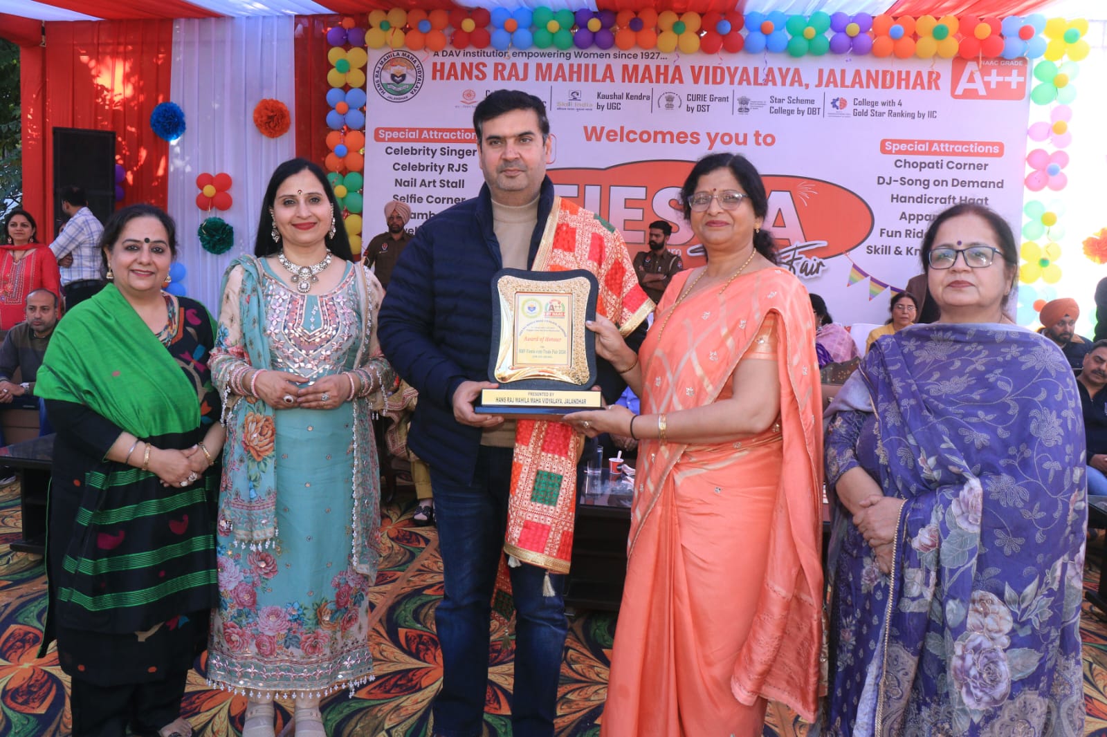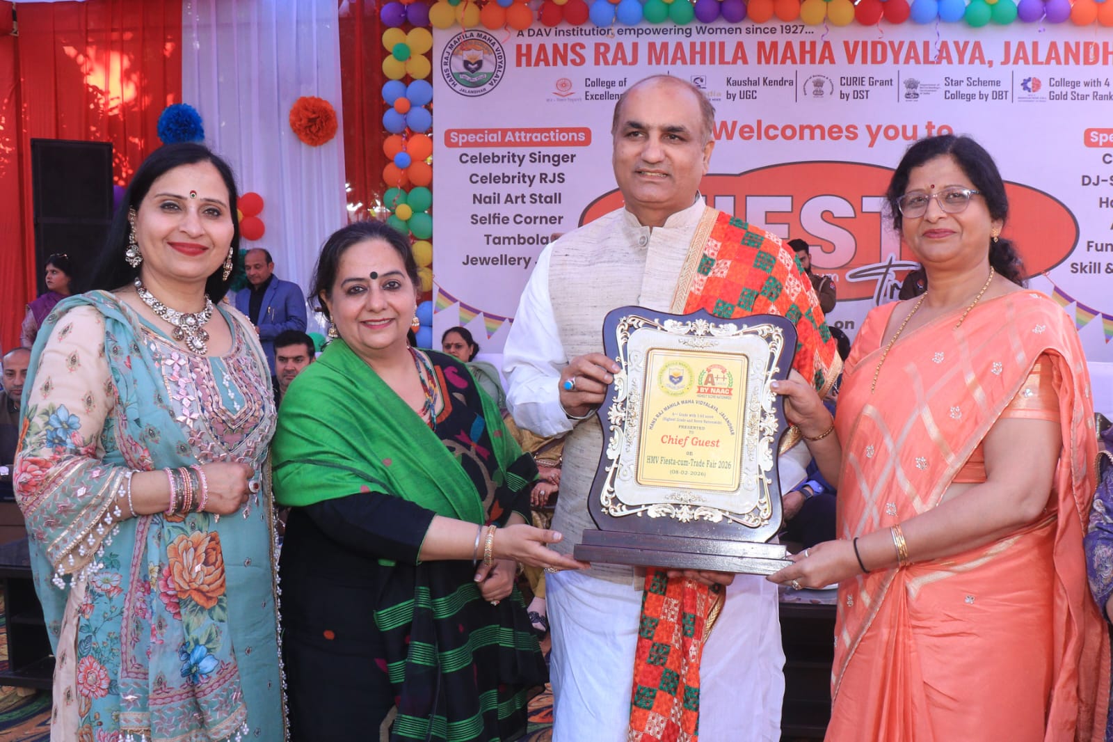 जालंधर (अरोड़ा) :- हंसराज महिला महाविद्यालय में प्राचार्या डॉ. एकता खोसला के सुयोग्य दिशा-निर्देशन अधीन फिएस्टा -2026 का सफलतापूर्वक आयोजन किया गया। इन्द्रधनुषी रंगों से सजे स्टालों, गीत-संगीत की मधुर ध्वनियों, सुंदर परिधानों से सजी मॉडल छात्राओं के फैशन शो से सुसज्जित इस भव्य उत्सव का शुभारंभ मुख्यातिथि प्रिंसिपल डीएवी कॉलेज डॉ. अनूप वत्स, नेशनल कोआर्डिनेटर डीएवीसीएमसी नई दिल्ली, जस्टिस (रिटा.) एन.के. सूद, उपप्रधान डीएवीसीएमसी नई दिल्ली, कुंदन लाल अग्रवाल, डॉ. सुषमा चावला, सुरजीत लाल के द्वारा ज्योति प्रजवलन के साथ हुआ। प्राचार्या डॉ. एकता खोसला ने प्लांटर व उपहार भेंट कर गणमान्य अतिथियों का अभिनंदन किया। उन्होंने अपने स्वागत भाषण में फिएस्टा-2026 को प्रधानमंत्री के 2047 में विकसित भारत के स्वप्न को साकार करने की दिशा मे एक महत्वपूर्ण कदम बताया। उन्होंने कहा कि फिएस्टा-2026 में अधिकतर स्टाल छात्राओं द्वारा लगाए गए हैं जिसके द्वारा नव उद्यमी छात्राओं को प्रतियोगिता के इस युग में अपनी प्रतिभा दिखाने व व्यापार के कौशल विकास में सहायता मिलेगी। यहां छात्राओं के शिक्षा के साथ नैतिकता, संस्कारों व मूल्यों के विकास पर बराबर बल दिया जाता है। आर्यरत्न पदमश्री डॉ. पूनम सूरी, प्रधान, डीएवीसीएमसी नई दिल्ली के नारी सशक्तिकरण के आदर्श के लिए संस्था वचनबद्ध है। मुख्यातिथि प्रिं. अनूप वत्स ने एचएमवी की विशिष्ट पहचान की मुक्तकंठ से सराहना करते हुए इस उत्सव को विकसित भारत के आदर्श की तरफ एक मील पत्थर बताया। उन्होंने कहा कि निश्चय ही यह संस्था भविष्य में नए आयाम स्थापित करेगी।