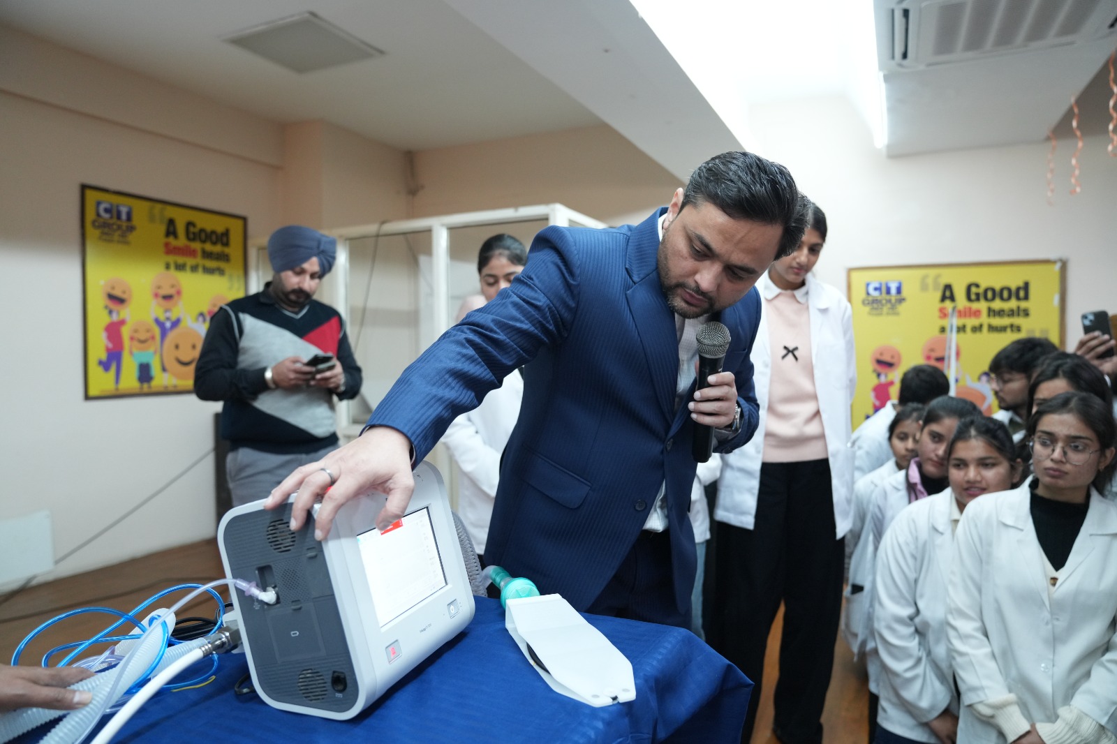जालंधर (अरोड़ा) :- सीटी इंस्टीट्यूट ऑफ हायर स्टडीज़ के फिज़ियोथेरेपी विभाग द्वारा वेंटिलेटर प्रबंधन विषय पर एक विशेषज्ञ-नेतृत्वित क्लिनिकल डेमोंस्ट्रेशन का आयोजन किया गया। इस शैक्षणिक सत्र का उद्देश्य छात्रों को क्रिटिकल केयर से जुड़ी व्यावहारिक जानकारी और वास्तविक चिकित्सीय अनुभव प्रदान करना था। इस सत्र का नेतृत्व फोर्टिस हॉस्पिटल, जालंधर के इमरजेंसी मेडिसिन विभाग के कंसल्टेंट एवं विभागाध्यक्ष डॉ. मनदीप सिंह ने किया। डॉ. मनदीप सिंह के पास एमबीबीएस, डिप्लोमा इन इमरजेंसी मेडिसिन, रॉयल कॉलेज ऑफ इमरजेंसी मेडिसिन की सदस्यता तथा एविएशन मेडिसिन में फेलोशिप जैसी प्रतिष्ठित योग्यताएँ हैं। अपने व्यापक क्लिनिकल अनुभव के आधार पर उन्होंने वेंटिलेटर प्रबंधन तकनीकों और आपातकालीन प्रतिक्रिया प्रक्रियाओं पर गहन एवं व्यावहारिक जानकारी साझा की।