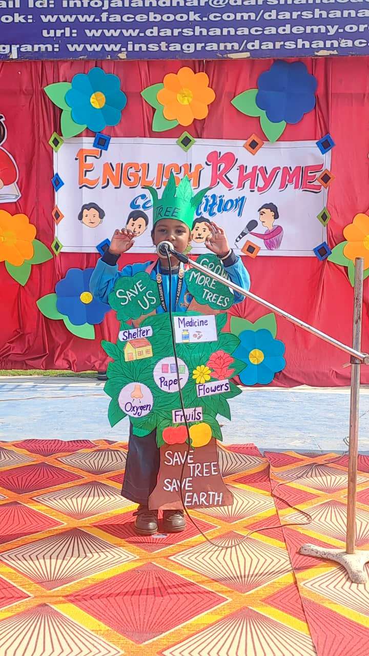 जालंधर (कुलविंदर) :- दर्शन अकादमी जालंधर में नर्सरी से यूकेजी कक्षाओं के विद्यार्थियों के लिए अंग्रेज़ी कविता प्रतियोगिता का आयोजन किया गया। इस अवसर पर नन्हे-मुन्ने विद्यार्थियों ने पूरे आत्मविश्वास और उत्साह के
