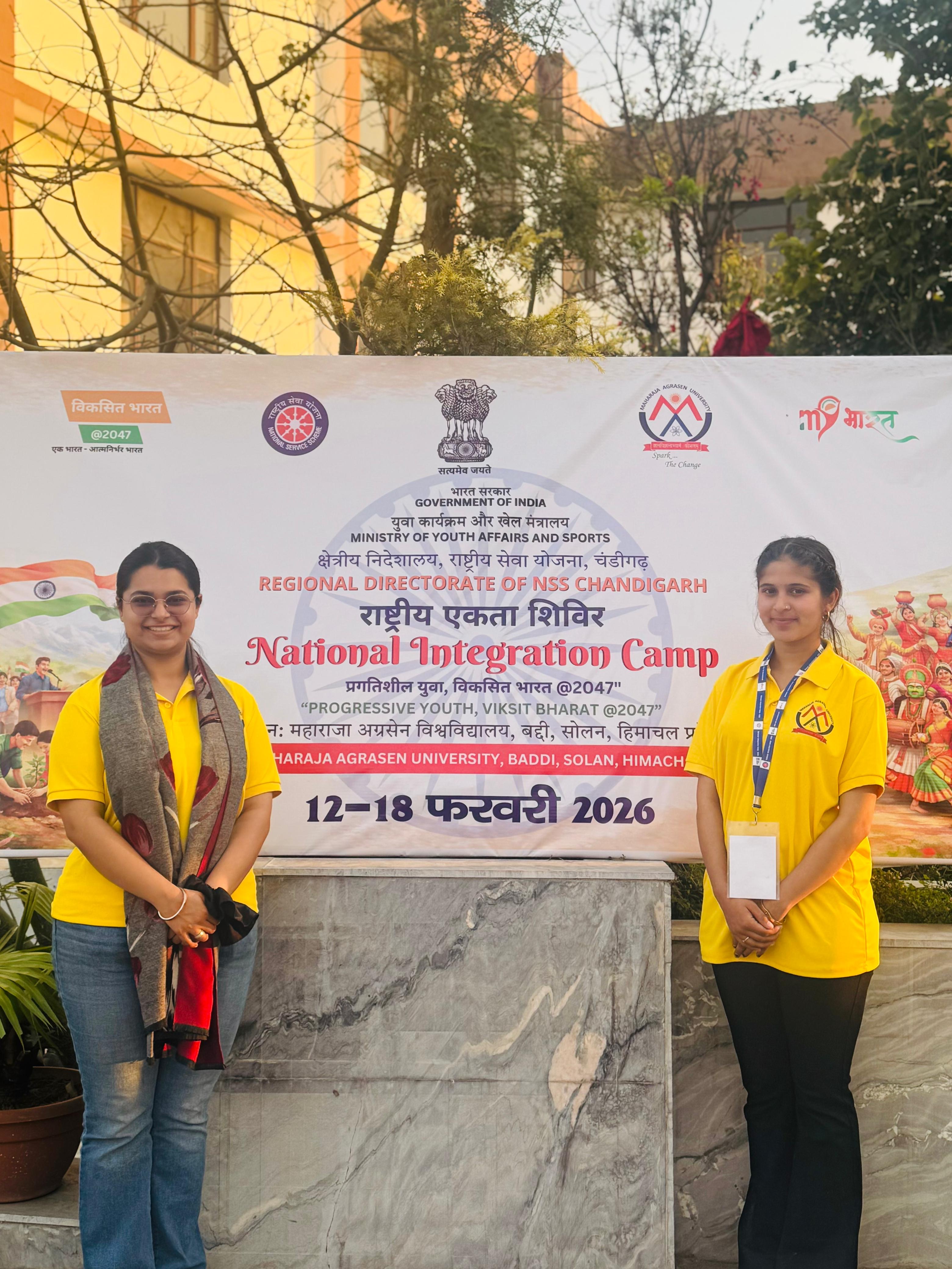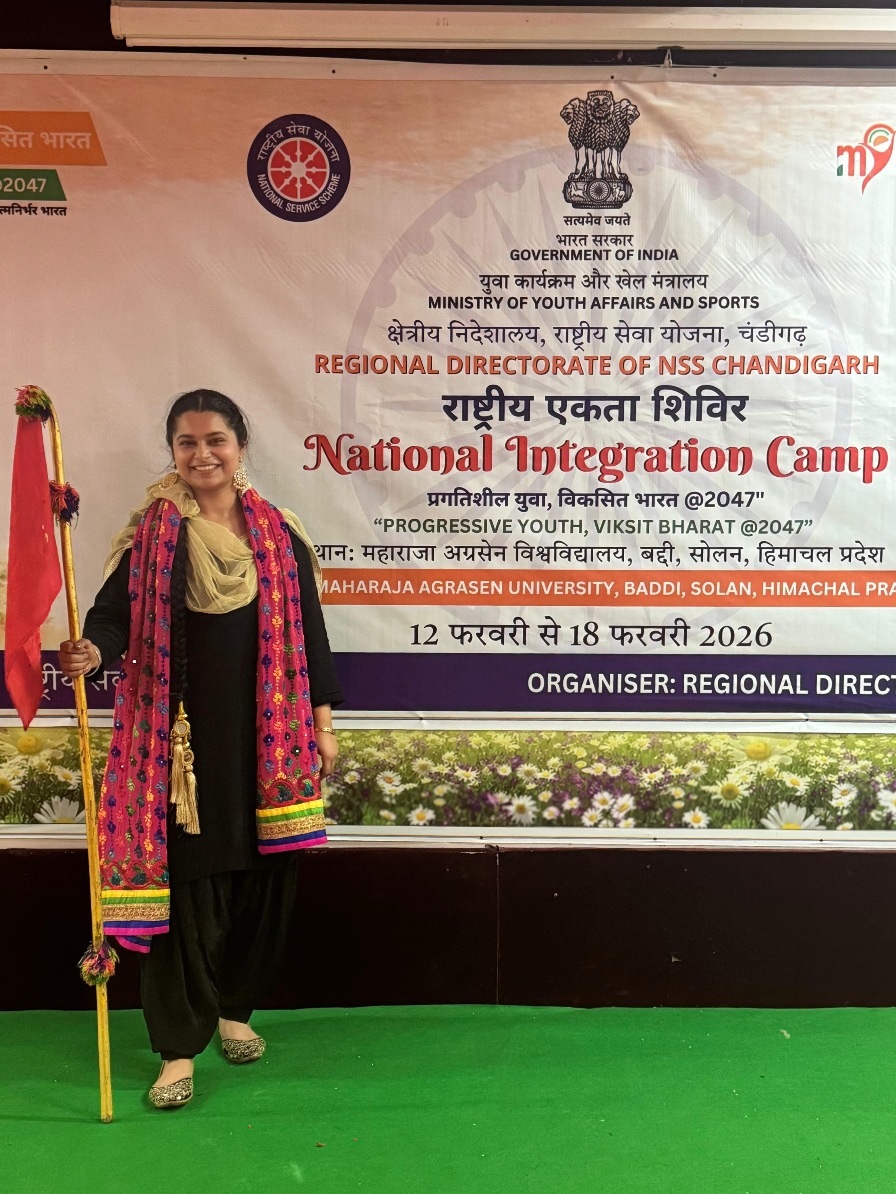 जालंधर (अरोड़ा) :- एपीजे कॉलेज ऑफ़ फाइन आर्ट्स जालंधर के विद्यार्थी अपने सर्वागींण विकास के लिए हमेशा प्रयासरत रहते हैं इसी श्रृंखला में NSS विंग की, BCA समैस्टर 6 की आसीस कौर और BA समैस्टर 4 की निशा, ने भारत सरकार के यूथ अफेयर्स और स्पोर्ट्स मिनिस्ट्री के 7 दिन के राष्ट्रीय एकता कैंप में शामिल होकर कॉलेज का प्रतिनिधित्व किया। यह कैंप 12-18 फरवरी 2026 तक हिमाचल प्रदेश के बद्दी में महाराजा अग्रसेन यूनिवर्सिटी में हुआ था। इस कैंप में भारत के 10 राज्यों के 200 NSS वॉलंटियर्स ने हिस्सा लिया। आसीस और निशा ने पंजाबी सांस्कृतिक गतिविधियों गिद्दा, जागो, शबद और दूसरे म्यूज़िकल परफॉर्मेंस के माध्यम से अपनी प्रतिभा का परिचय देते हुए पंजाब की समृद्ध विरासत को दर्शाया।