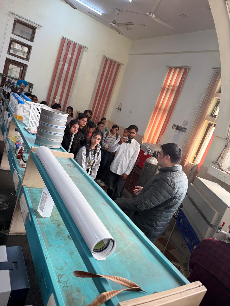जालंधर (अरोड़ा) :- एस. एस.भटनागर केमिकल सोसाइटी के अंतर्गत स्नातकोत्तर केमिस्ट्री डिपार्टमेंट ने सरदार स्वर्ण सिंह नेशनल इंस्टीट्यूट ऑफ़ बायो-एनर्जी, कपूरथला का डी.बी.टी.-स्पॉन्सर्ड एजुकेशनल ट्रिप ऑर्गनाइज़ किया। सरदार स्वर्ण सिंह इंस्टीट्यूट ऑफ़ बायो-एनर्जी के अपने विज़िट के दौरान, स्टूडेंट्स को रिन्यूएबल एनर्जी, बायोफ्यूल और सस्टेनेबल एग्रीकल्चरल प्रैक्टिस में इनोवेटिव टेक्नोलॉजी के बारे में कीमती जानकारी मिली। साइंटिस्ट, डॉ. संदीप कुमार (साइंटिस्ट-B), डॉ. अनिल कुमार सरमा (साइंटिस्ट-E), और डॉ. रावेल सिंह (साइंटिस्ट-D), और टेक्निकल एक्सपर्ट्स के साथ इंटरैक्टिव सेशन ने स्टूडेंट्स को क्लासरूम में मिली थ्योरेटिकल नॉलेज को रियल-वर्ल्ड एप्लीकेशन और चल रही रिसर्च इनिशिएटिव से जोड़ने में मदद की। स्टूडेंट्स को रिसर्च और एनालिसिस में इस्तेमाल होने वाले अलग-अलग एडवांस्ड साइंटिफिक इंस्ट्रूमेंट्स के डिटेल्ड डेमोंस्ट्रेशन और एक्सप्लेनेशन मिले। उन्हें केमिकल कंपाउंड्स को अलग करने और एनालिसिस करने के लिए हाई-परफॉर्मेंस लिक्विड क्रोमैटोग्राफी (HPLC) और गैस क्रोमैटोग्राफी (GC) सिस्टम जैसे एडवांस्ड इंस्ट्रूमेंट्स के फंक्शनिंग, वर्किंग प्रिंसिपल्स और एप्लीकेशन के बारे में डिटेल में बताया गया; कैरेक्टराइजेशन के लिए UV स्पेक्ट्रोमीटर; थर्मल स्टेबिलिटी की स्टडी के लिए थर्मोग्रैविमेट्रिक एनालाइज़र (TGA); फंक्शनल ग्रुप की पहचान के लिए FTIR स्पेक्ट्रोमीटर; सैंपल अलग करने के लिए सेंट्रीफ्यूज; और फ्रीज़-ड्राइंग प्रोसेस के लिए लाइओफिलाइज़र।