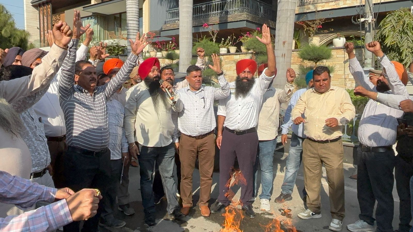 ਕੈਬਨਿਟ ਮੰਤਰੀ ਮਹਿੰਦਰ ਭਗਤ ਦੇ ਘਰ ਦੇ ਬਾਹਰ ਮੁਲਾਜ਼ਮਾਂ ਨੇ ਸਰਕਾਰ ਖਿਲਾਫ ਕੀਤੀ ਨਾਅਰੇਬਾਜ਼ੀ