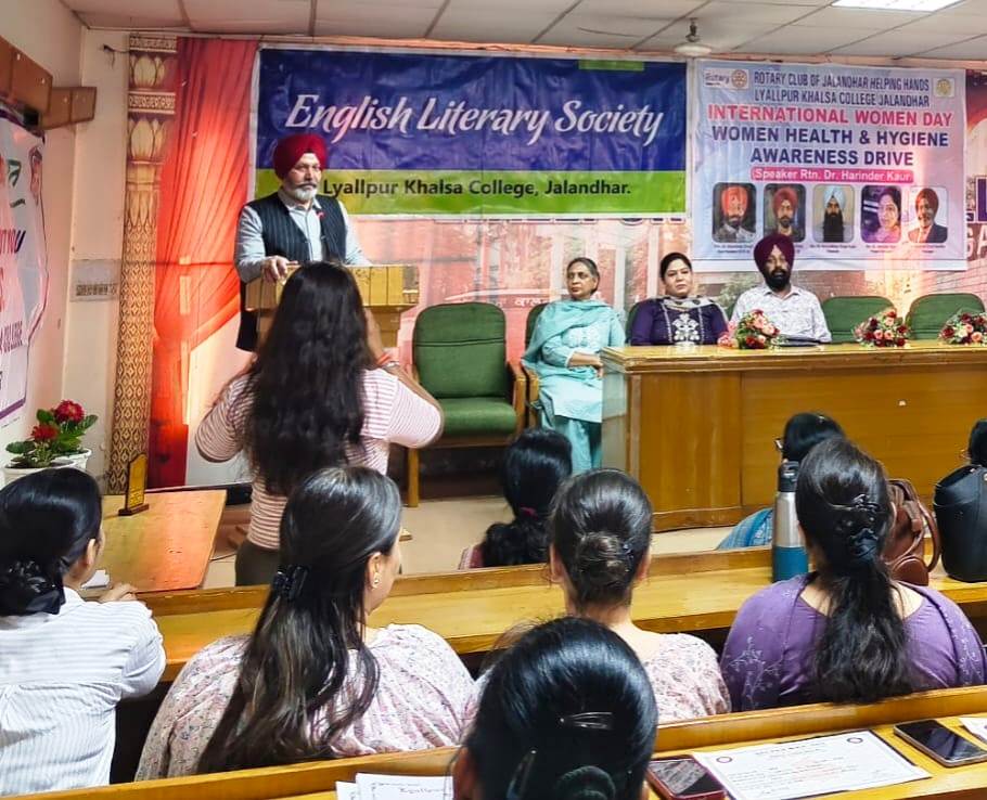 ਜਲੰਧਰ (ਅਰੋੜਾ) :- ਲਾਇਲਪੁਰ ਖਾਲਸਾ ਕਾਲਜ ਜਲੰਧਰ ਦੇ ਪੀ.ਜੀ. ਅੰਗਰੇਜ਼ੀ ਵਿਭਾਗ ਦੇ ਅੰਗਰੇਜ਼ੀ ਸਾਹਿਤਕ ਸੋਸਾਇਟੀ, ਐਨ.ਐਸ.ਐਸ. ਯੂਨਿਟ, ਰੈੱਡ ਰਿਬਨ ਕਲੱਬ ਅਤੇ ਆਈ.ਆਈ.ਸੀ. ਨੇ ਰੋਟਰੀ ਕਲੱਬ ਜਲੰਧਰ ਹੈਲਪਿੰਗ ਹੈਂਡਸ ਦੇ ਸਹਿਯੋਗ ਨਾਲ ਮਹਿਲਾ ਅਧਿਆਪਨ ਅਤੇ ਗੈਰ-ਅਧਿਆਪਨ ਸਟਾਫ਼ ਅਤੇ ਵਿਦਿਆਰਥੀਆਂ ਲਈ ਮਹਿਲਾ ਸਿਹਤ ਨਾਲ ਸਬੰਧਿਤ ਇੱਕ ਇੰਟਰਐਕਟਿਵ ਸੈਸ਼ਨ ਦਾ ਆਯੋਜਨ ਕੀਤਾ। ਇਸ ਸਮਾਗਮ ਵਿਚ ਡਾ. ਹਰਿੰਦਰ ਕੌਰ, ਜੋ ਇਨੋਸੈਂਟ ਹਾਰਟ ਹਸਪਤਾਲ, ਜਲੰਧਰ ਵਿਖੇ ਇੱਕ ਤਜਰਬੇਕਾਰ ਗਾਇਨੀਕੋਲੋਜਿਸਟ ਨੇ ਮੁੱਖ ਵਕਤਾ ਵਜੋਂ ਸ਼ਿਰਕਤ ਕੀਤੀ। ਪ੍ਰਿੰਸੀਪਲ ਡਾ. ਰਛਪਾਲ ਸਿੰਘ ਸੰਧੂ ਅਤੇ ਡਾ. ਬਲਰਾਜ ਕੌਰ, ਮੁਖੀ ਅੰਗਰੇਜ਼ੀ ਵਿਭਾਗ ਨੇ ਉਨ੍ਹਾਂ ਦਾ ਫੁੱਲਾਂ ਦੇ ਗੁਲਦਸਤੇ ਨਾਲ ਸਵਾਗਤ ਕੀਤਾ। ਡਾ. ਸੰਧੂ ਨੇ ਆਪਣੇ ਉਦਘਾਟਨੀ ਭਾਸ਼ਣ ਵਿੱਚ ਅੰਤਰਰਾਸ਼ਟਰੀ ਮਹਿਲਾ ਦਿਵਸ ਮਨਾਉਣ ਦੀ ਮਹੱਤਤਾ ਬਾਰੇ ਦੱਸਿਆ। ਉਨ੍ਹਾਂ ਨੇ ਔਰਤਾਂ ਲਈ ਬਰਾਬਰ ਮੌਕੇ ਦੀ ਵਕਾਲਤ ਕੀਤੀ ਅਤੇ ਰਾਜ ਅਤੇ ਰਾਸ਼ਟਰੀ ਪੱਧਰ ‘ਤੇ ਸ਼ਾਨਦਾਰ ਪ੍ਰਾਪਤੀਆਂ ਪ੍ਰਾਪਤ ਕਰਨ ਵਾਲੀਆਂ ਵਿਦਿਆਰਥਣਾਂ ਅਤੇ ਸਟਾਫ ਮੈਂਬਰਾਂ ਦੀ ਸ਼ਲਾਘਾ ਕੀਤੀ। ਡਾ. ਹਰਿੰਦਰ ਕੌਰ ਨੇ ਆਪਣੇ ਸੰਬੋਧਨ ਵਿੱਚ ਔਰਤਾਂ ਦੀ ਸਿਹਤ ਬਾਰੇ ਚਰਚਾ ਕੀਤੀ।