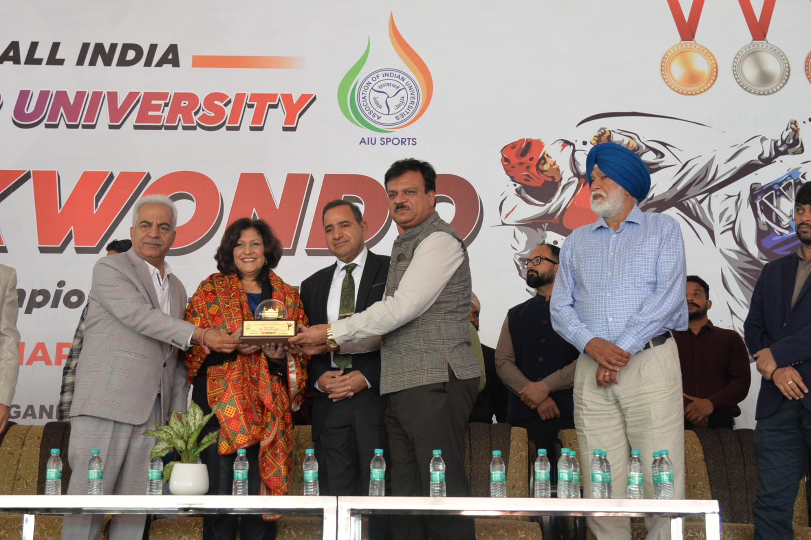 जालंधर (अरोड़ा) :-डी.ए.वी. यूनिवर्सिटी, जालंधर में बड़े उत्साह और जोश के साथ ऑल इंडिया इंटर-यूनिवर्सिटी ताइक्वांडो (पुरुष) चैंपियनशिप 2025–26 का उद्घाटन किया गया। यह आयोजन खेल भावना, अनुशासन और राष्ट्रीय एकता का शानदार उदाहरण है। इस चैंपियनशिप में देशभर की विभिन्न विश्वविद्यालयों से 207 टीमों ने भाग लिया, जो युवाओं में खेलों के बढ़ते महत्व और प्रतिस्पर्धा की भावना को दर्शाता है। उद्घाटन समारोह में कई प्रमुख अतिथि शामिल हुए। मुख्य अतिथि नीना टांगरी, सदस्य, प्रांतीय संसद, ओंटारियो, कनाडा, थीं। गेस्ट ऑफ ऑनर के रूप में अर्पित शुक्ला, आई.पी.एस. (स्पेशल डीजीपी, लॉ एंड ऑर्डर, पंजाब) और अध्यक्ष, पंजाब ताइक्वांडो एसोसिएशन उपस्थित रहे। इसके साथ ही विशिष्ट अतिथियों में प्रो. (डॉ.) देवेंद्र अरोड़ा, अध्यक्ष, स्पोर्ट्स अकादमी एसोसिएशन ऑफ इंडिया, सज्जन सिंह चीमा, अर्जुन अवार्डी और पूर्व भारतीय बास्केटबॉल कप्तान, डॉ. बाबू लाल,ऑब्जर्वर, ए.आई.यू., डॉ. चेन्नप्पा दुराई, शिव कुमार, टूर्नामेंट डायरेक्टर, ए.आई.यू., प्रो. संजीव कुमार अरोड़ा, रजिस्ट्रार, डी.ए.वी. यूनिवर्सिटी, जालंधर और अश्विनी टांगरी शामिल थे।