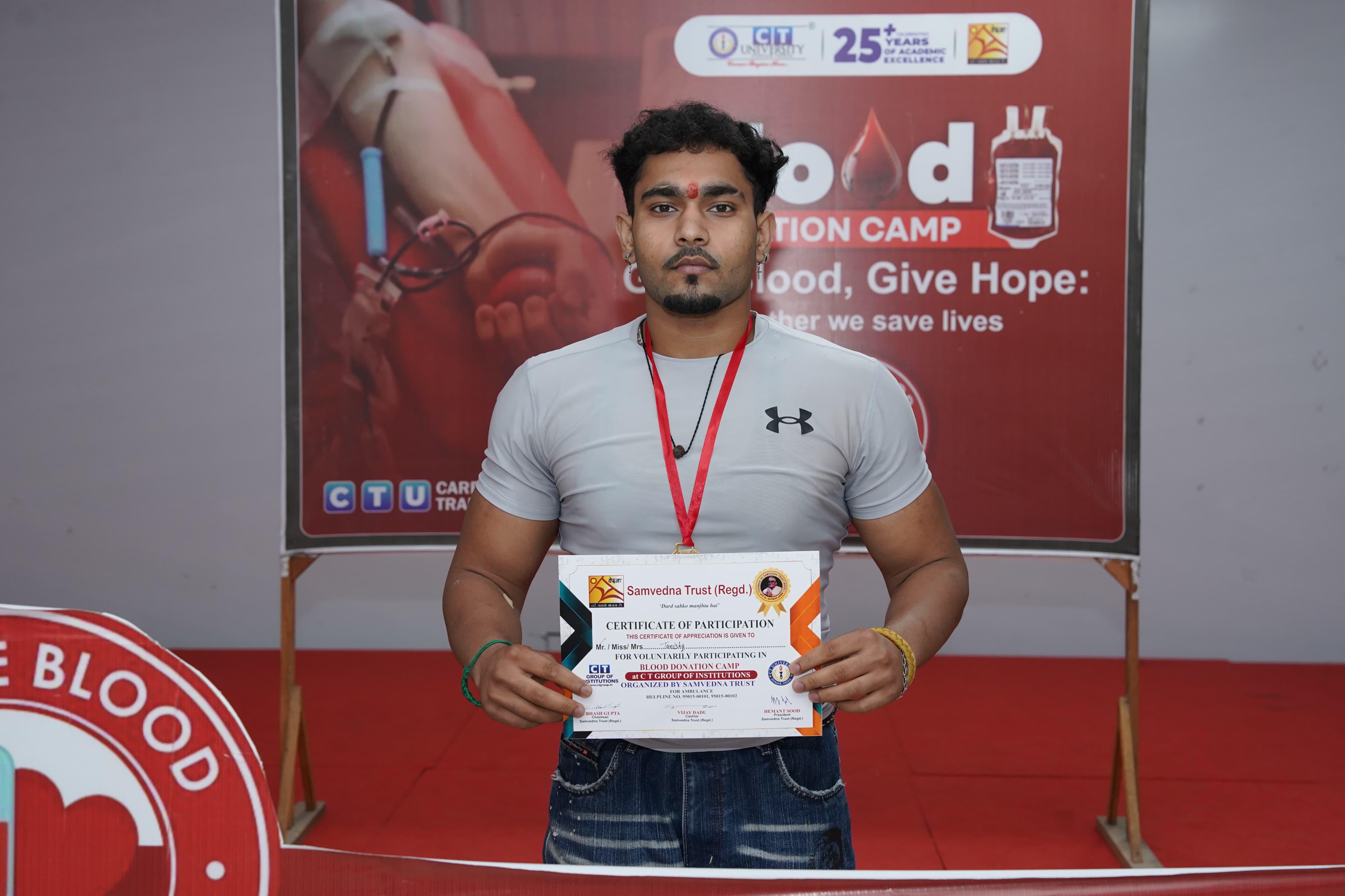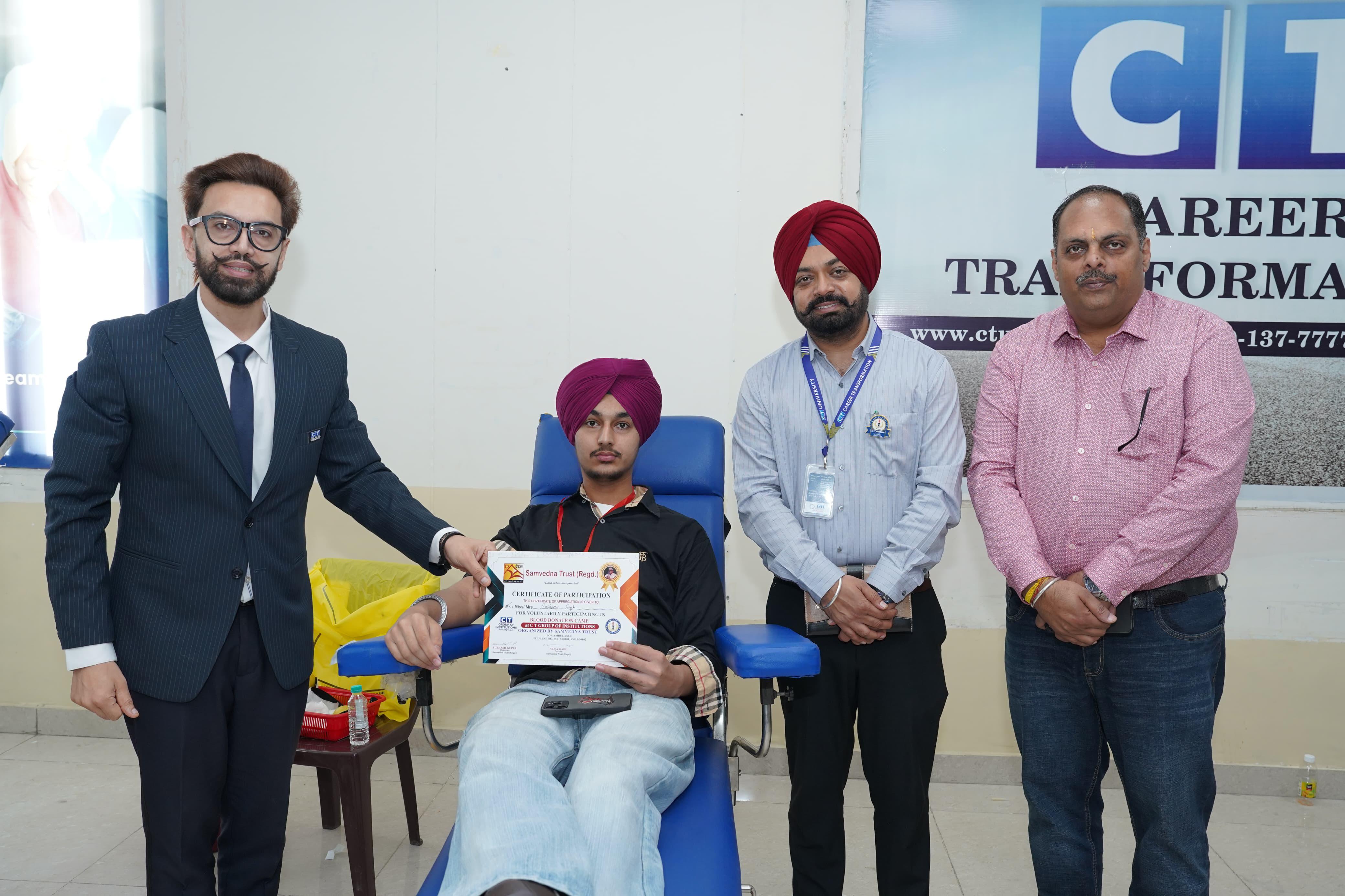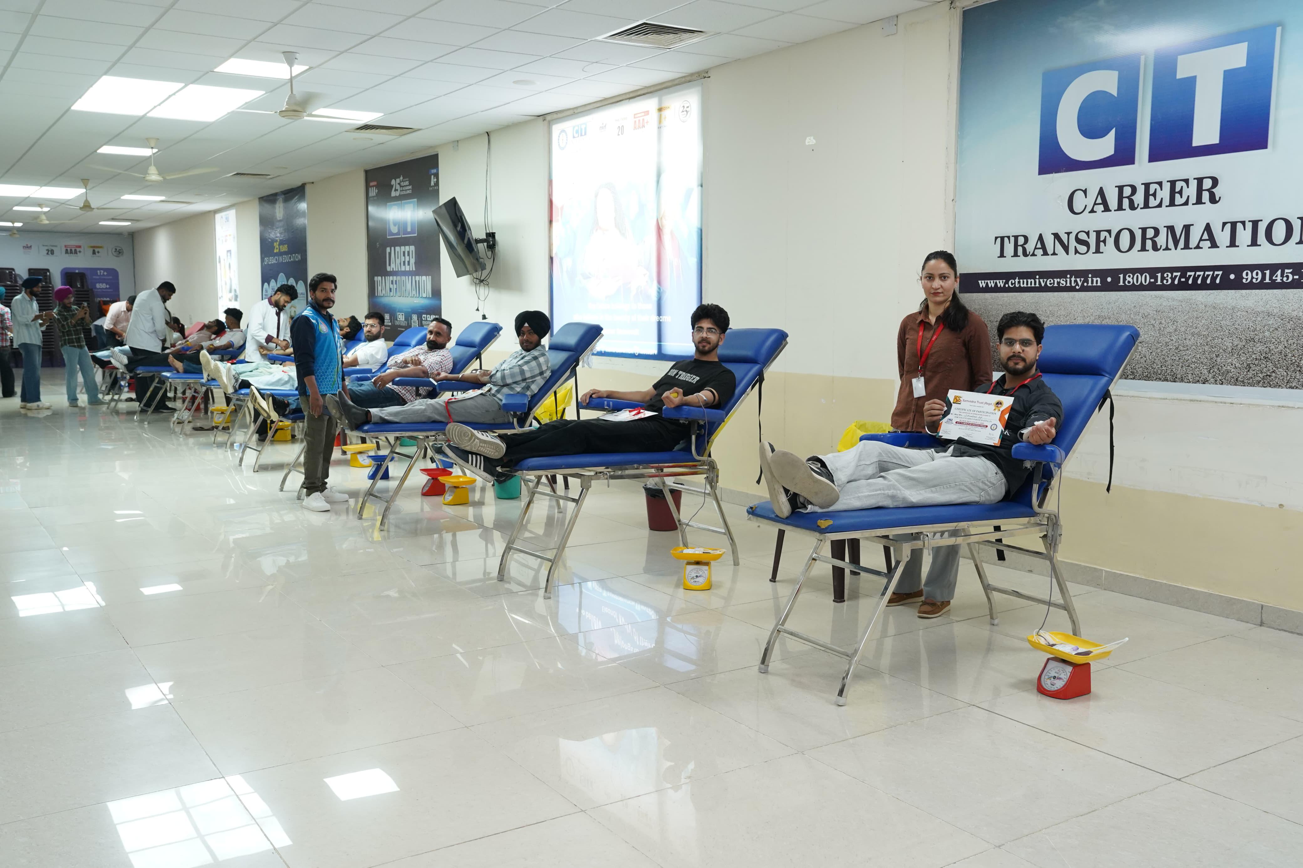 ‘सम्वेदना ट्रस्ट लुधियाना’, ‘सत्यम अस्पताल’, ‘ऑर्थोनोवा अस्पताल’ और ‘भगत सिंह विवेकानंद विचार मंच’ के सहयोग से आयोजित इस शिविर में विद्यार्थियों और स्टाफ ने बढ़-चढ़कर भाग लिया और 152 यूनिट रक्त दान किया। इस मौके पर सीटी ग्रुप के चेयरमैन सरदार चरणजीत सिंह चन्नी ने कहा कि रक्तदान मानवता की सबसे बड़ी सेवा है, जो अनमोल जीवन बचाने में सहायक है। उन्होंने युवाओं से ऐसे सामाजिक कार्यों में बढ़-चढ़कर भाग लेने का आह्वान किया।