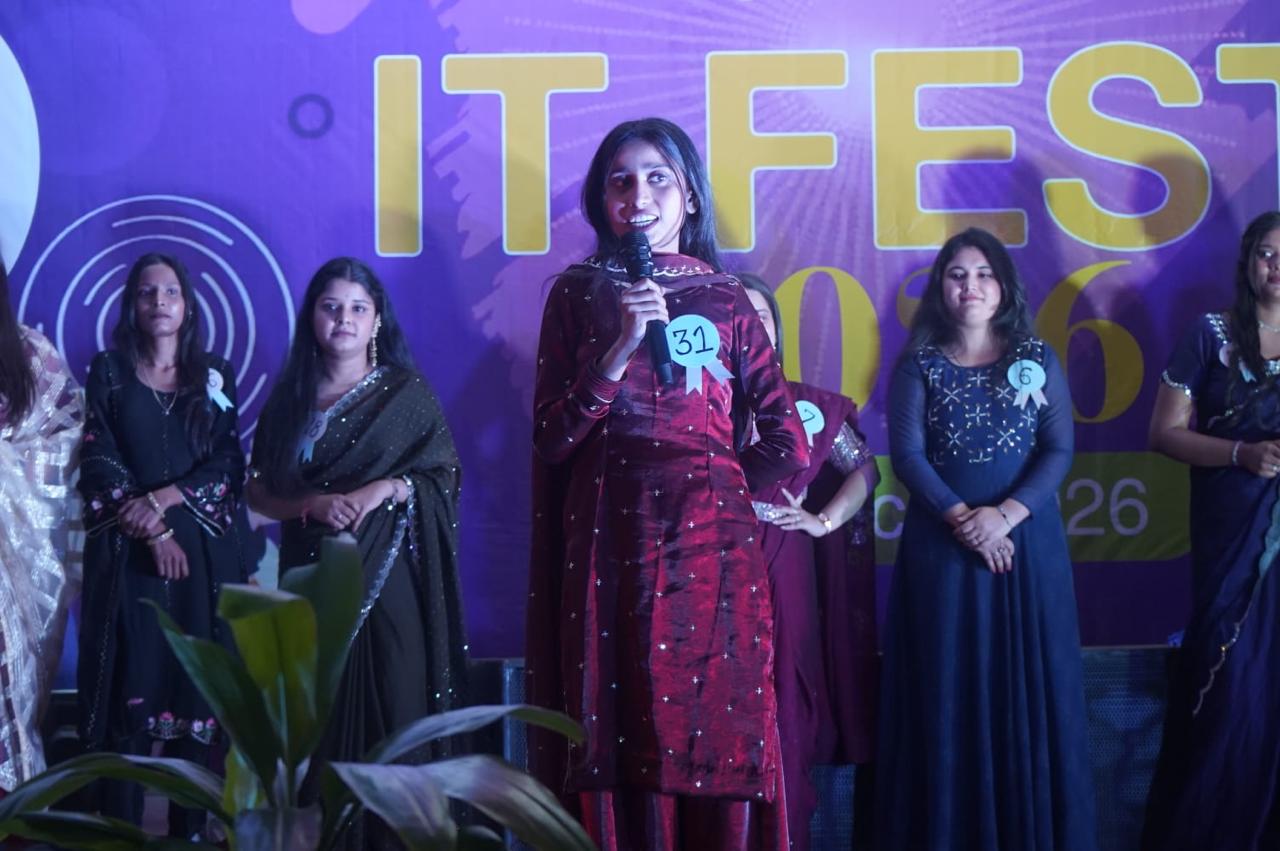 दोपहरोत्तर सत्र में राष्ट्रीय प्रौद्योगिकी संस्थान, जालंधर के कंप्यूटर साइंस विभाग के प्राध्यापक डॉ. हर्ष वर्मा ने मुख्य अतिथि के रूप में उपस्थिति दर्ज कराई तथा ऐसे आयोजनों की सराहना की, जो विद्यार्थियों में तकनीकी दक्षता एवं सृजनात्मकता का विकास करते हैं। उन्होंने विद्यार्थियों को अध्ययन के साथ-साथ सह-पाठ्यक्रम गतिविधियों में सक्रिय सहभागिता हेतु भी प्रोत्साहित किया। उत्सव के समापन दिवस पर सजीव सांस्कृतिक एवं मॉडलिंग प्रतियोगिताओं की शृंखला आयोजित की गई, जिसने विद्यार्थियों को अपनी प्रतिभा, आत्मविश्वास एवं सृजनात्मकता प्रदर्शित करने का सशक्त मंच प्रदान किया। मॉडलिंग वर्ग में वरिंदर ‘मिस्टर फ्रेशर’ तथा सिमरन ‘मिस फ्रेशर’ चयनित हुए। अजय को ‘मिस्टर आईटी’ तथा मानसावी को ‘मिस आईटी’ का खिताब प्रदान किया गया। अन्य उपाधियों में नेहा ‘मिस एलिगेंट’, मुक्ता ‘मिस गॉर्जियस’ तथा नामित ‘मिस्टर हैंडसम’ चुने गए। ‘श्रेष्ठ परिधान (पुरुष)’ का पुरस्कार अर्शदीप को तथा ‘श्रेष्ठ परिधान (महिला)’ का पुरस्कार हिमांशी को प्राप्त हुआ।