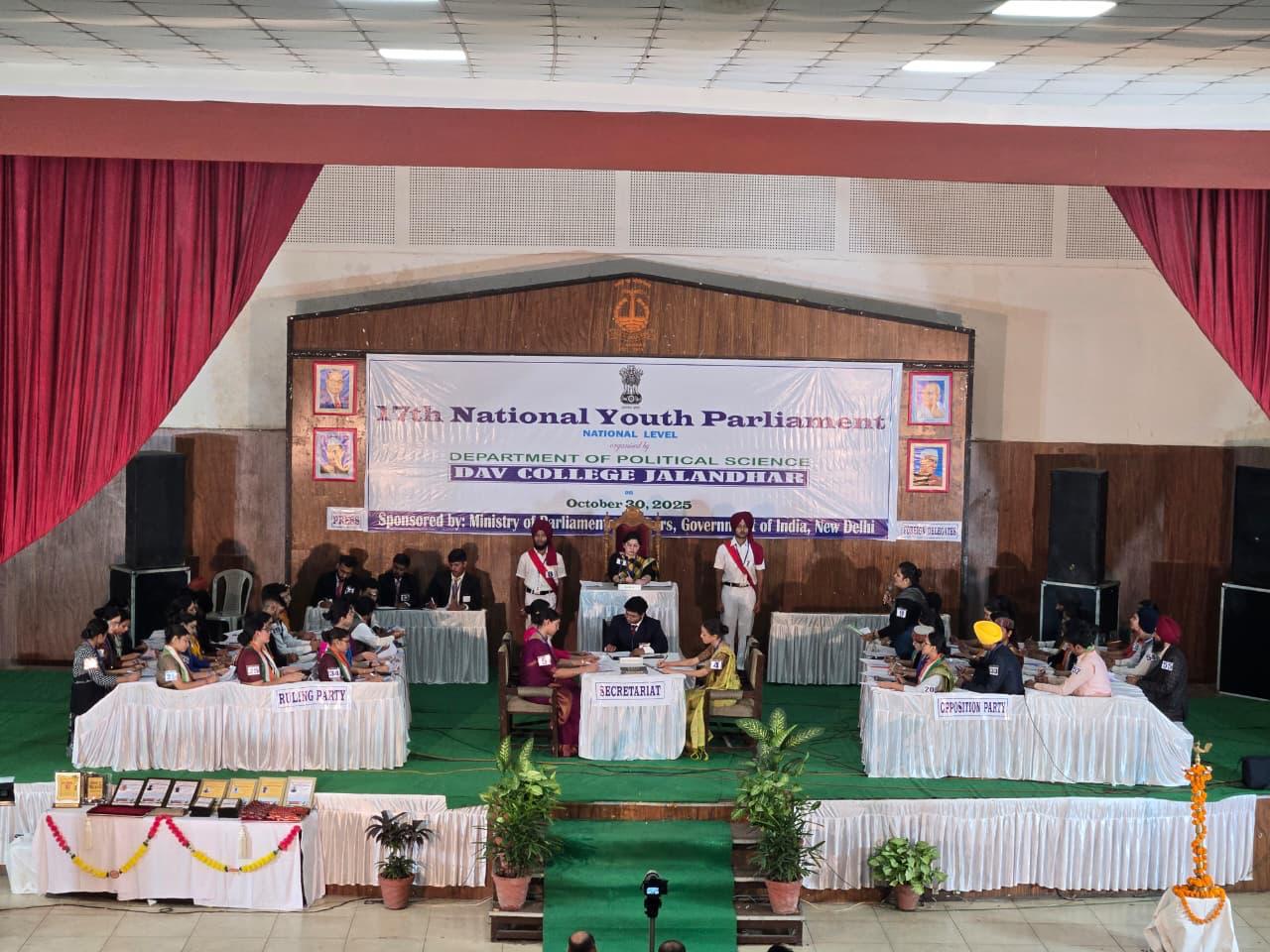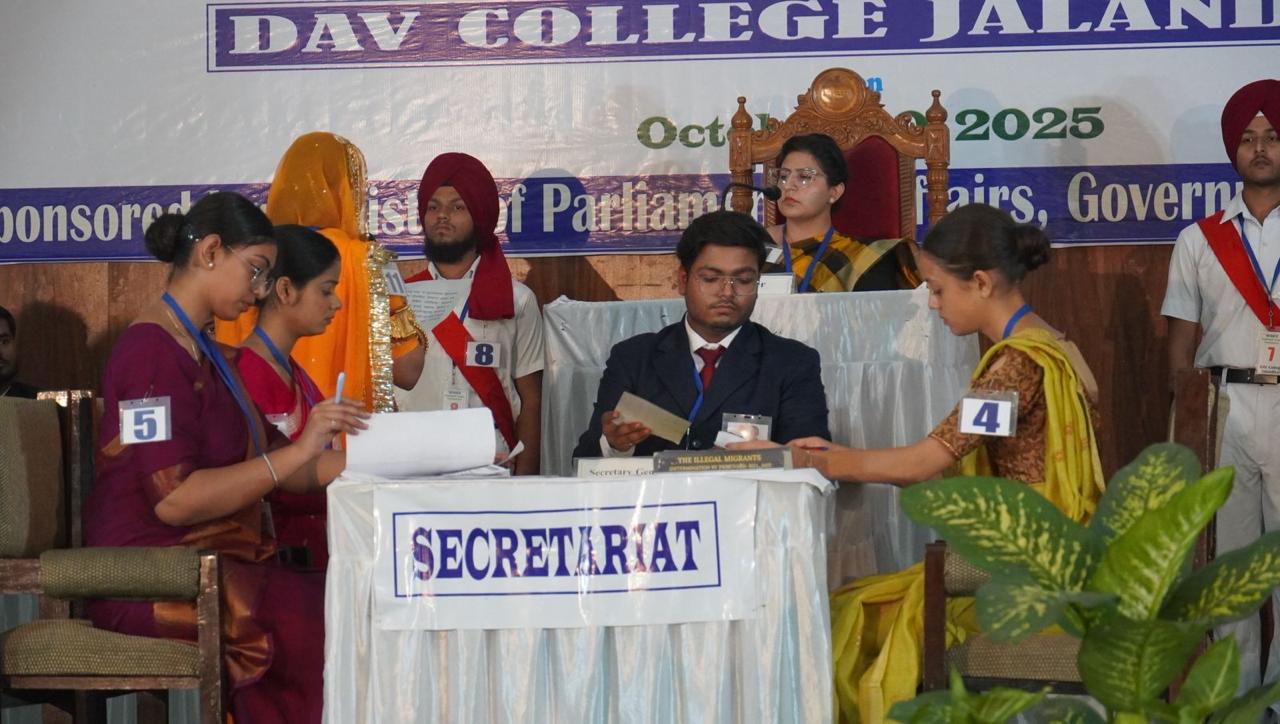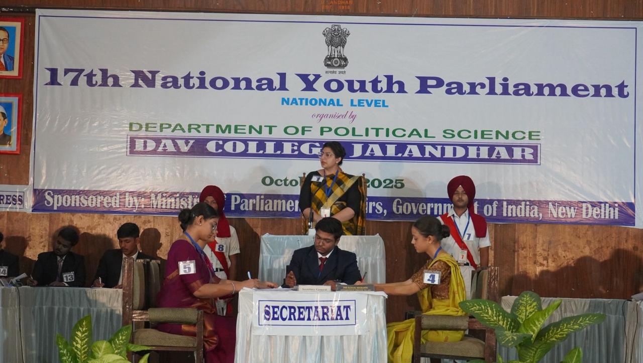 जालंधर (अरोड़ा) :- डी०ए०वी० कॉलेज, जालंधर ने राष्ट्रीय स्तर पर आयोजित 17वीं राष्ट्रीय युवा संसद प्रतियोगिता में प्रथम उपविजेता स्थान प्राप्त कर एक गौरवपूर्ण उपलब्धि अर्जित की है। यह प्रतियोगिता नई दिल्ली स्थित संसदीय कार्य मंत्रालय द्वारा आयोजित की गई, जिसका उद्देश्य देशभर के विश्वविद्यालयों एवं महाविद्यालयों में युवा संसद गतिविधियों को प्रोत्साहित करना है।