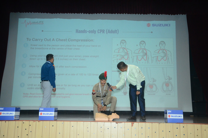 कार्यक्रम के दौरान वैल्यू लाइफ फाउंडेशन और सुज़ुकी मोटरसाइकिल इंडिया प्राइवेट लिमिटेड के प्रतिनिधियों श्री राकेश पटेल और श्री विख्यात सिंह ने विशेष जानकारीपूर्ण सत्र लिए। छात्रों को सी.पी.आर. और अन्य जीवन बचाने वाली इमरजेंसी तकनीकों का प्रैक्टिकल प्रदर्शन भी दिखाया गया, जिससे वे आपात स्थिति में सही तरीके से काम कर सकें। इसके अलावा, सुरक्षित ब्रेक लगाने के तरीके और दुर्घटना से बचाव की तकनीकों के बारे में भी जानकारी दी गई।