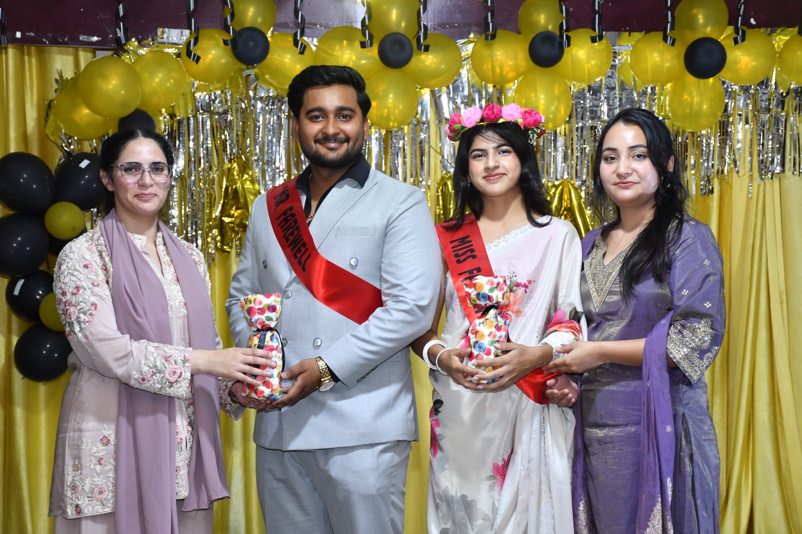 विभिन्न मज़ेदार खेल और इंटरैक्टिव गतिविधियाँ भी आयोजित की गईं, जिससे वहाँ उपस्थित सभी लोगों के लिए एक जीवंत और आकर्षक माहौल बन गया। इस कार्यक्रम का मुख्य आकर्षण टाइटल वितरण समारोह था। समग्र व्यक्तित्व, आत्मविश्वास और भागीदारी के आधार पर, मिस्टर फेयरवेल का खिताब शिवम पांडे को दिया गया, जबकि मिस फेयरवेल का खिताब वरिंदर को मिला; ये दोनों ही चौथे वर्ष के छात्र हैं। उनकी शालीनता, आकर्षण और उत्साह ने उन्हें इन खिताबों का हकदार बनाया। कार्यक्रम का समापन एक भावुक पल के साथ हुआ, जब जूनियर छात्रों ने अपने सीनियर छात्रों के उज्ज्वल और सफल भविष्य के लिए उनके प्रति आभार और शुभकामनाएँ व्यक्त कीं।