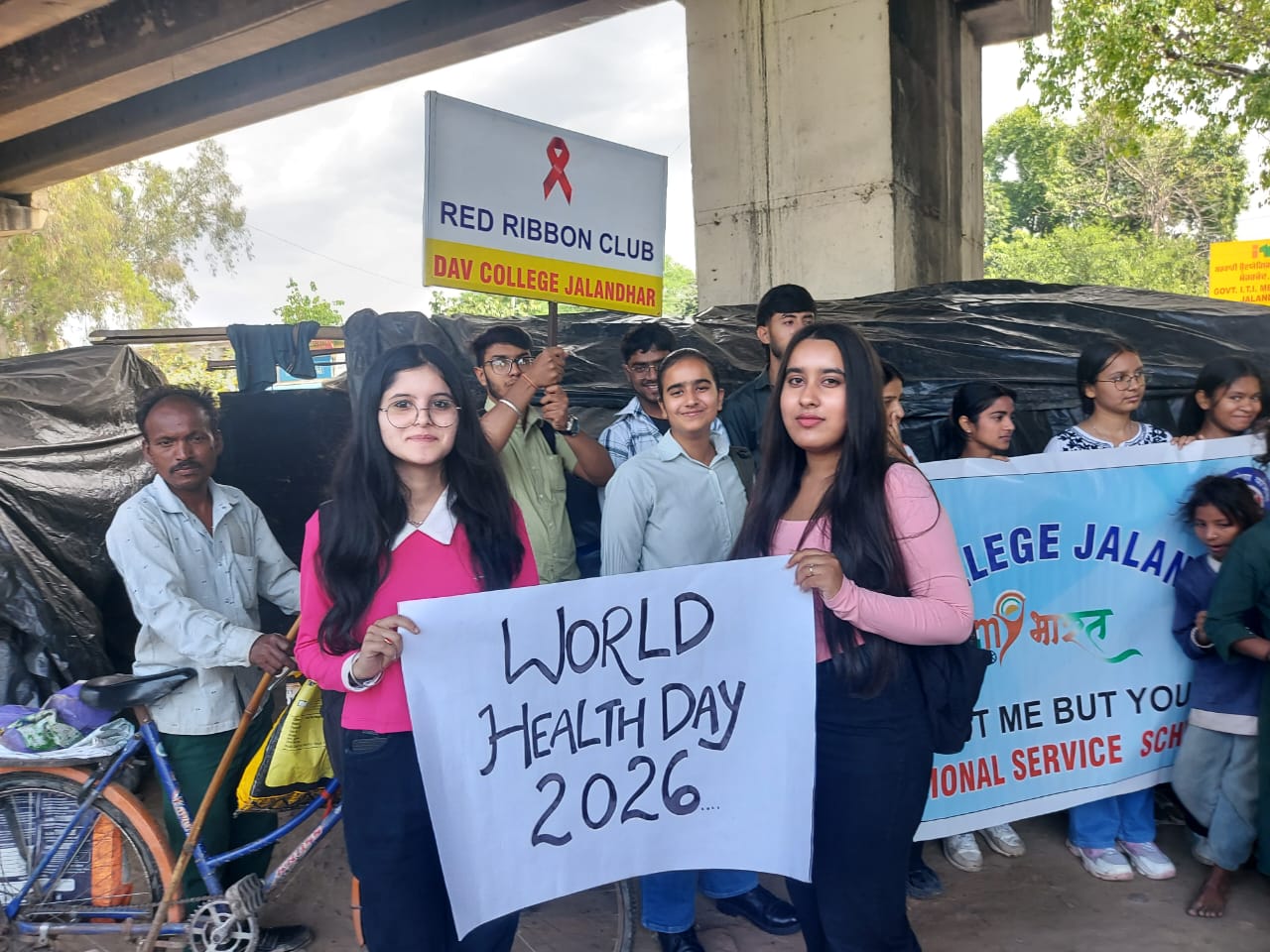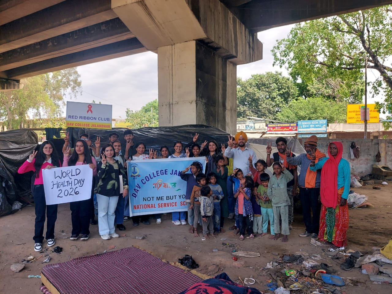 जालंधर (अरोड़ा) :- डी.ए.वी. कॉलेज, जालंधर की एन.एस.एस. इकाई तथा रेड रिबन क्लब द्वारा विश्व स्वास्थ्य दिवस के अवसर पर एक सार्थक सामुदायिक जागरूकता अभियान आयोजित किया गया। छात्र स्वयंसेवकों ने स्वास्थ्य एवं कल्याण के प्रति जागरूकता फैलाने हेतु निकटवर्ती झुग्गी-बस्ती का भ्रमण किया। यह पहल महाविद्यालय के प्राचार्य डॉ. अनूप कुमार के मार्गदर्शन में संपन्न हुई, जो निरंतर विद्यार्थियों को व्यापक समाज से जुड़ने के लिए प्रेरित करते रहे हैं।