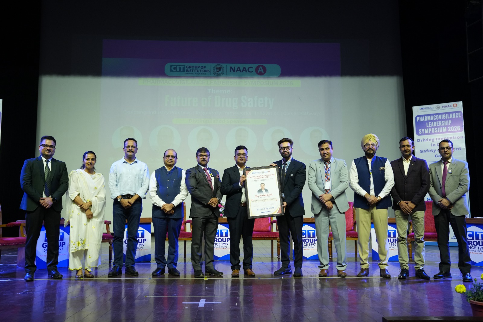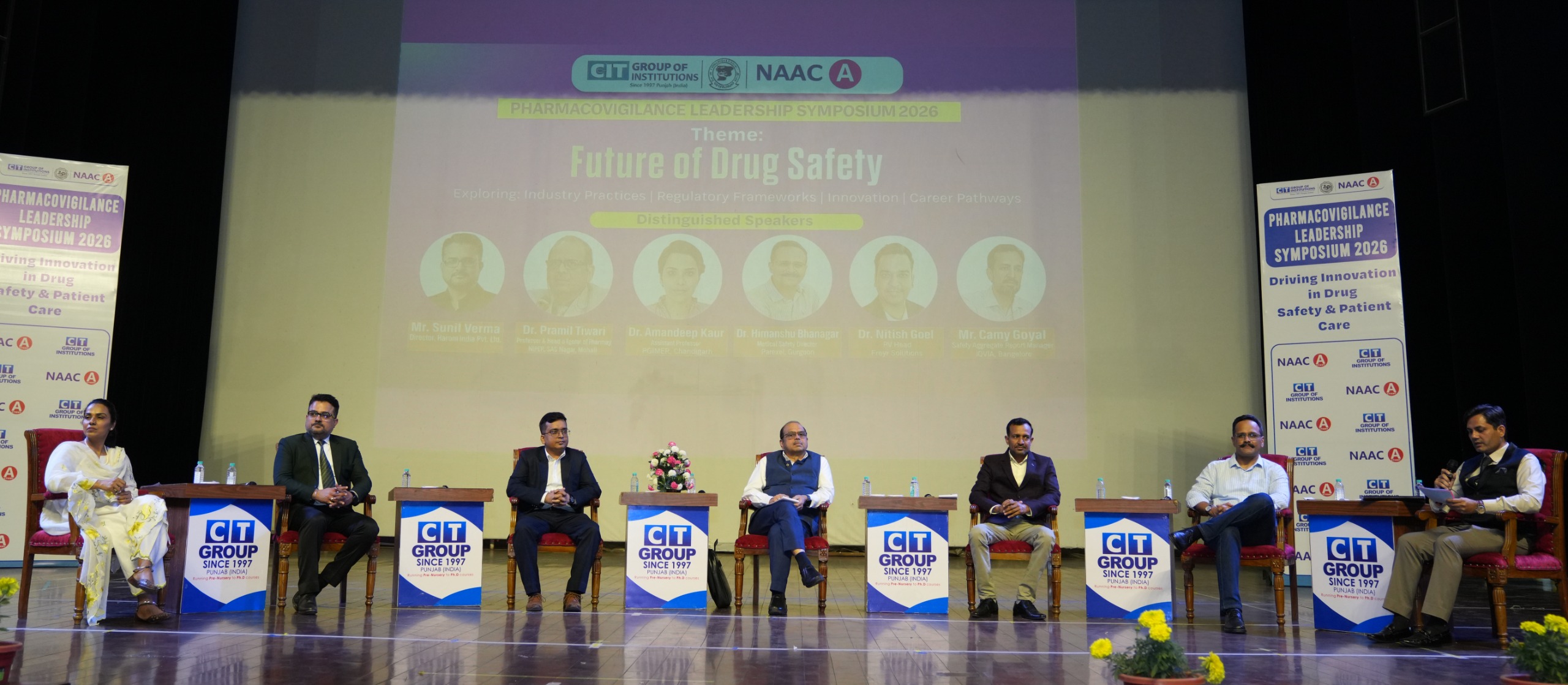 जालंधर (अरोड़ा) :- सीटी ग्रुप ऑफ इंस्टीट्यूशंस, शाहपुर कैंपस में सरदारनी मनजीत कौर ऑडिटोरियम में “फार्माकोविजिलेंस लीडरशिप संगोष्ठी 2026” का भव्य आयोजन किया गया। “दवा सुरक्षा का भविष्य: इंडस्ट्री प्रैक्टिसेज, रेगुलेशन्स, इनोवेशन एवं करियर पाथवे” विषय पर आधारित इस संगोष्ठी में अकादमिक जगत और फार्मा उद्योग के प्रमुख विशेषज्ञों ने भाग लेते हुए दवा सुरक्षा और फार्माकोविजिलेंस के नवीनतम रुझानों व सर्वोत्तम प्रथाओं पर गहन विचार-विमर्श किया। इस अवसर पर 1000 से अधिक प्रतिभागियों, 100 से अधिक पोस्टर प्रस्तुतकर्ताओं तथा 50 बाहरी प्रतिनिधियों की उत्साहपूर्ण भागीदारी ने कार्यक्रम को ज्ञान-विनिमय, शैक्षणिक संवाद और पेशेवर नेटवर्किंग का सशक्त मंच बना दिया। संगोष्ठी में प्रतिष्ठित संस्थानों एवं अग्रणी फार्मास्यूटिकल संगठनों से आए विशेषज्ञ वक्ताओं ने अपने विचार साझा किए। इनमें डॉ. प्रमिल तिवारी (प्रोफेसर एवं विभागाध्यक्ष, एनआईपीईआर, एसएएस नगर), डॉ. नितिश गोयल (पीवी हेड, फ्रेयर सॉल्यूशंस), डॉ. हिमांशु भटनागर (मेडिकल सेफ्टी डायरेक्टर, पारेक्सेल इंटरनेशनल), सुनील वर्मा (डायरेक्टर, हारोम इंडिया प्राइवेट लि., मोहाली), कैमी गोयल (सेफ्टी एग्रीगेट रिपोर्ट मैनेजर, आईक्यूवीआईए, बंगलौर) तथा डॉ. अमनदीप कौर (एसोसिएट डायरेक्टर, कॉग्निजेंट टेक्नोलॉजी सॉल्यूशंस, चंडीगढ़) शामिल रहे। कार्यक्रम में फार्माकोविजिलेंस के विकसित होते ढांचे, नियामक प्रगति, उद्योग की कार्यप्रणालियों और दवा सुरक्षा क्षेत्र में करियर संभावनाओं पर विशेष रूप से प्रकाश डाला गया।